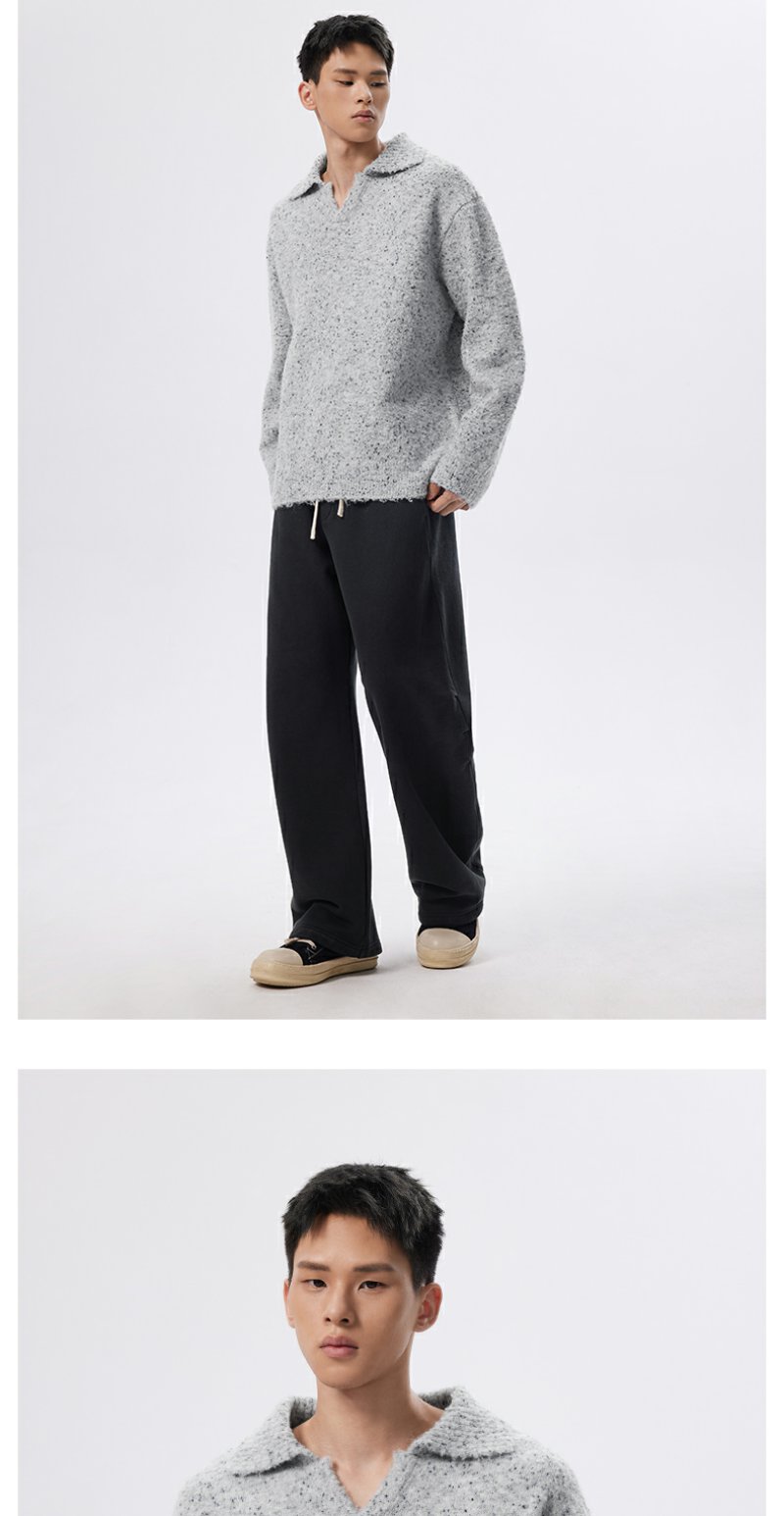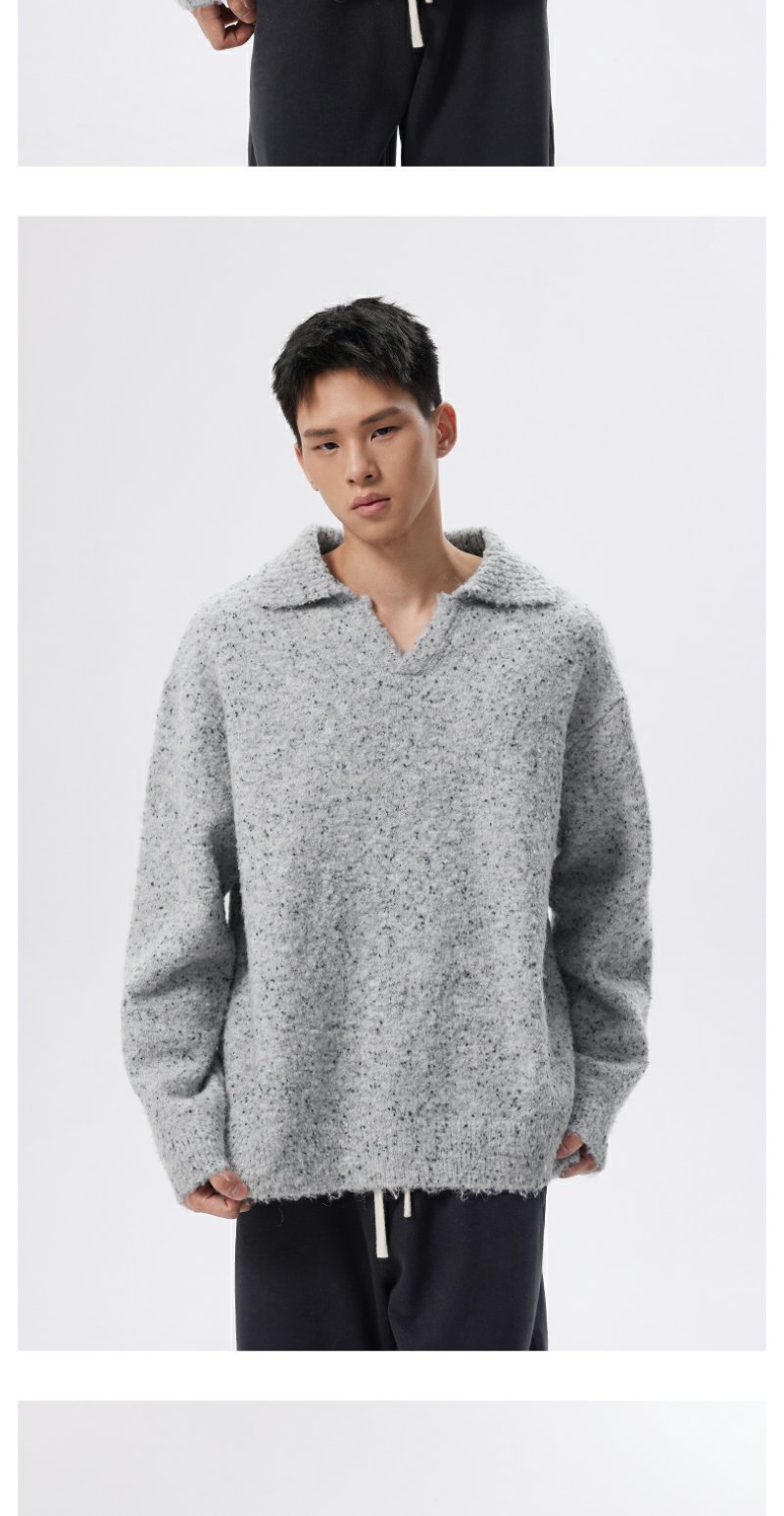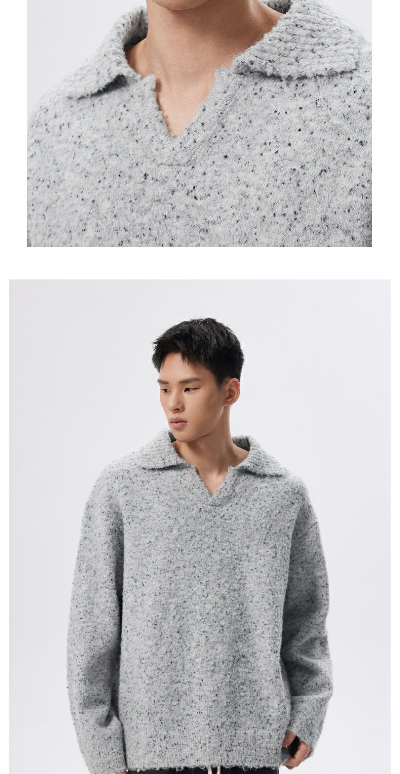 CHINISM折扣季 绵羊毛混纺polo领毛衣男冬季男士浅灰色针织衫帽衫