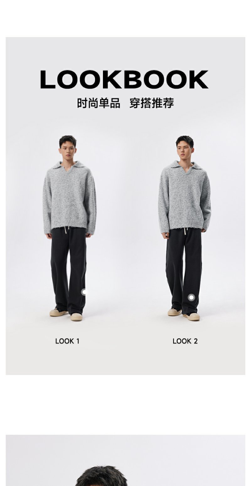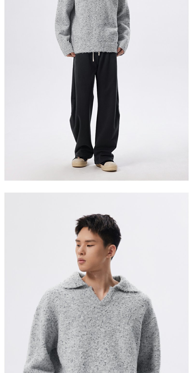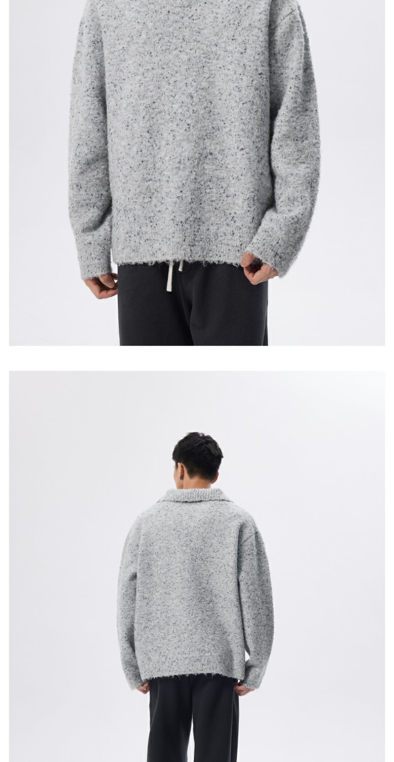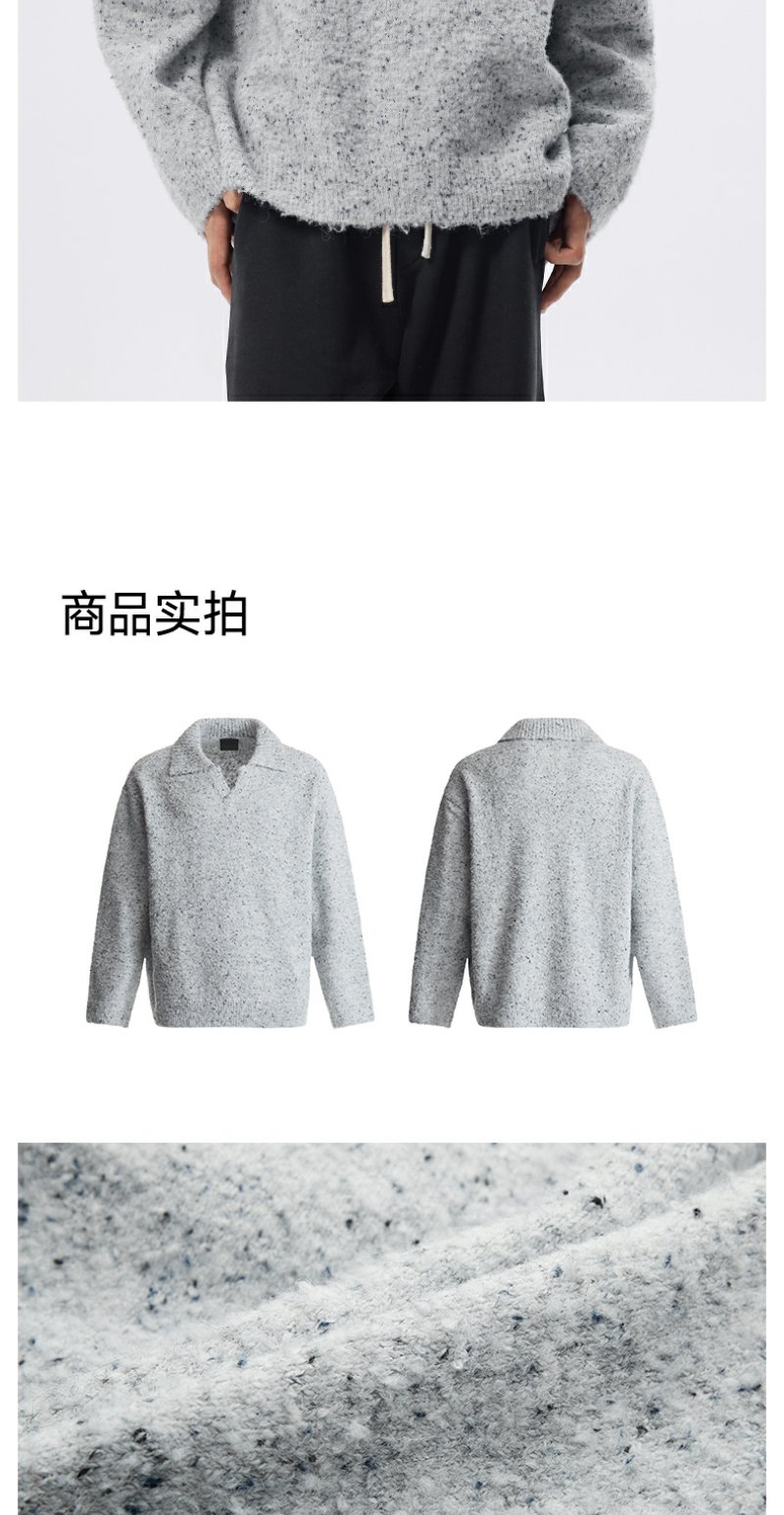 CHINISM折扣季 绵羊毛混纺polo领毛衣男冬季男士浅灰色针织衫帽衫