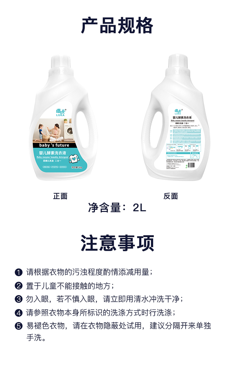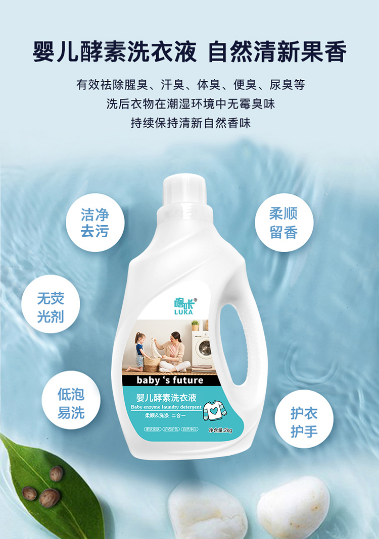(秒杀)噜咔婴儿洗衣液酵素强效去污洗衣液母婴专用2kg/桶包邮