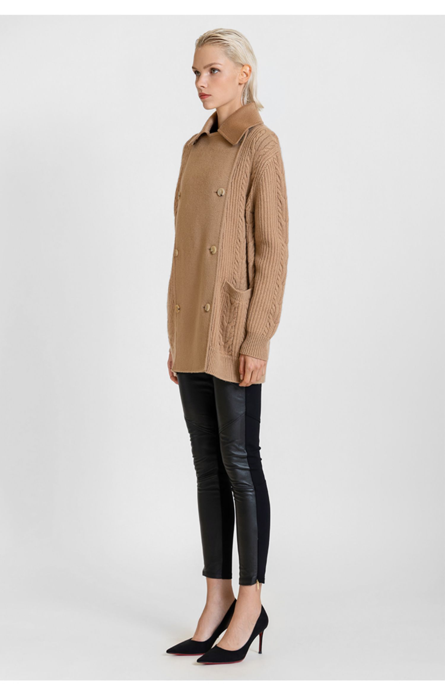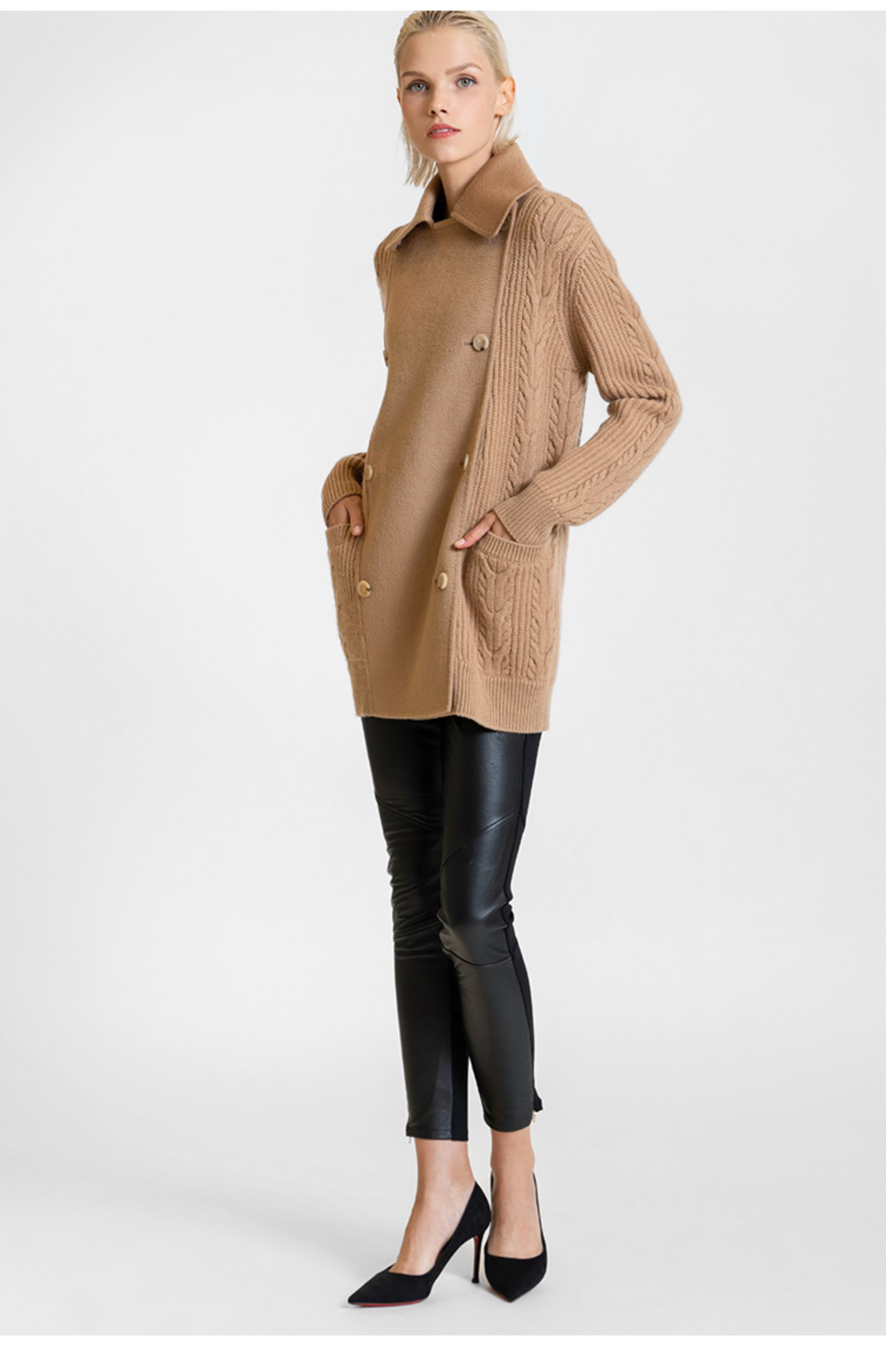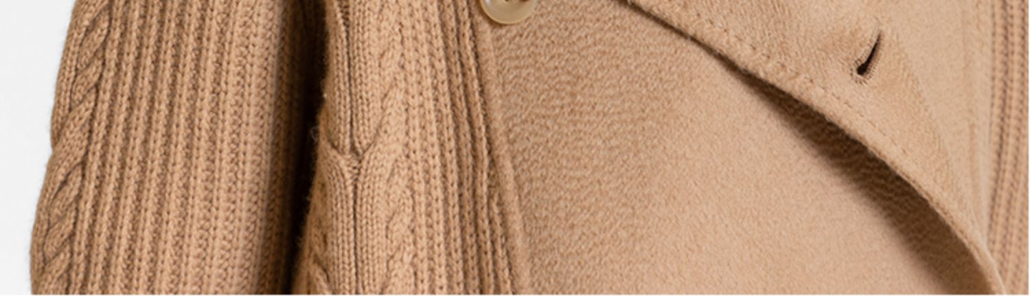 LIZZY 休闲山羊绒美丽诺绵羊毛混纺拼接双排扣短外套7667