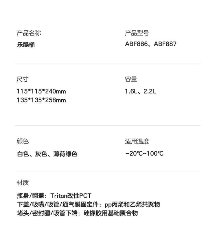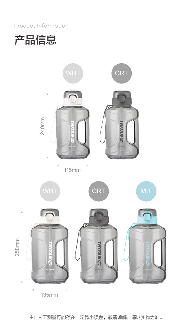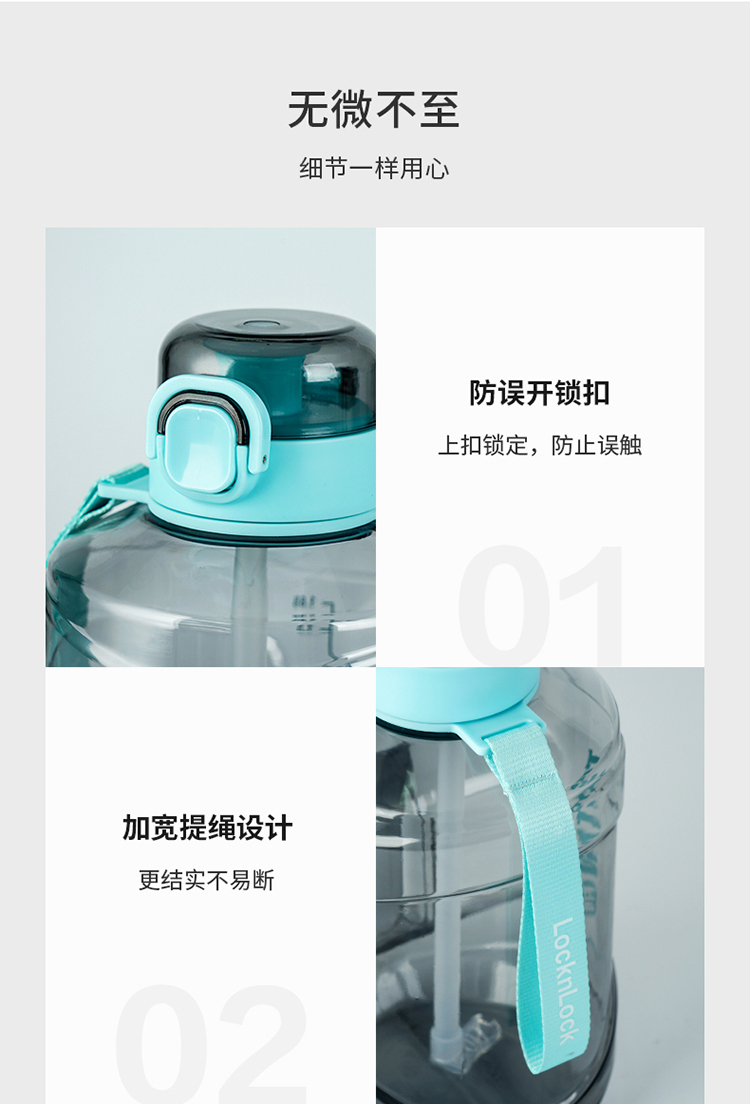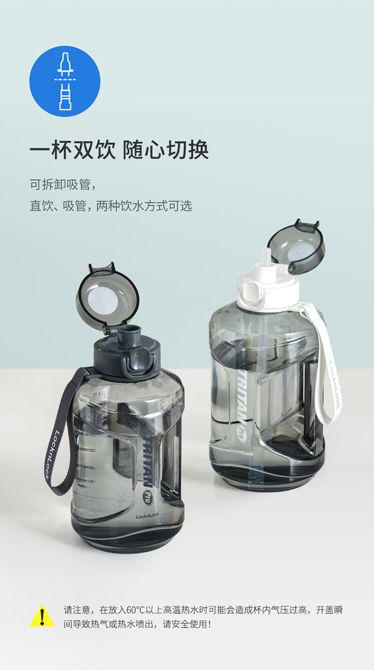 乐扣乐扣小水库水杯男大容量吨吨桶吸管塑料Tritan运动健身水壶女 ABF886/ABF887