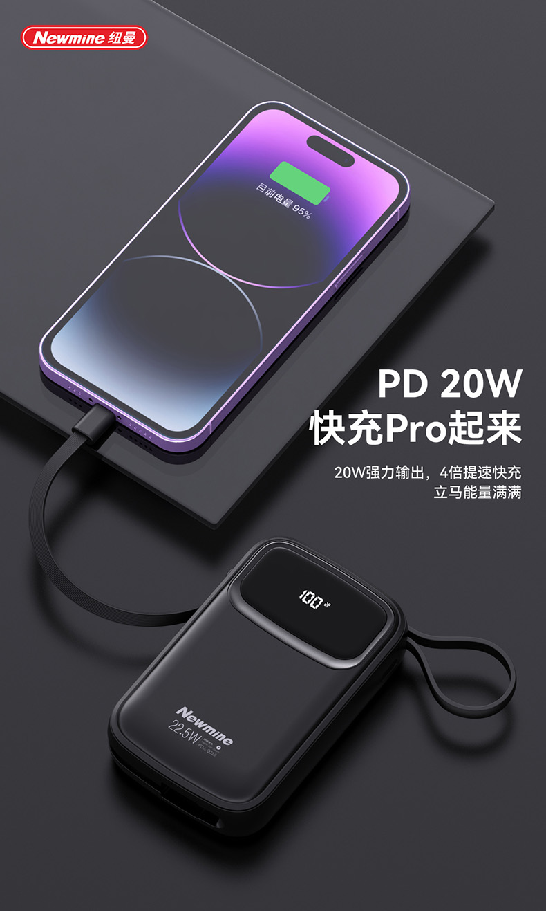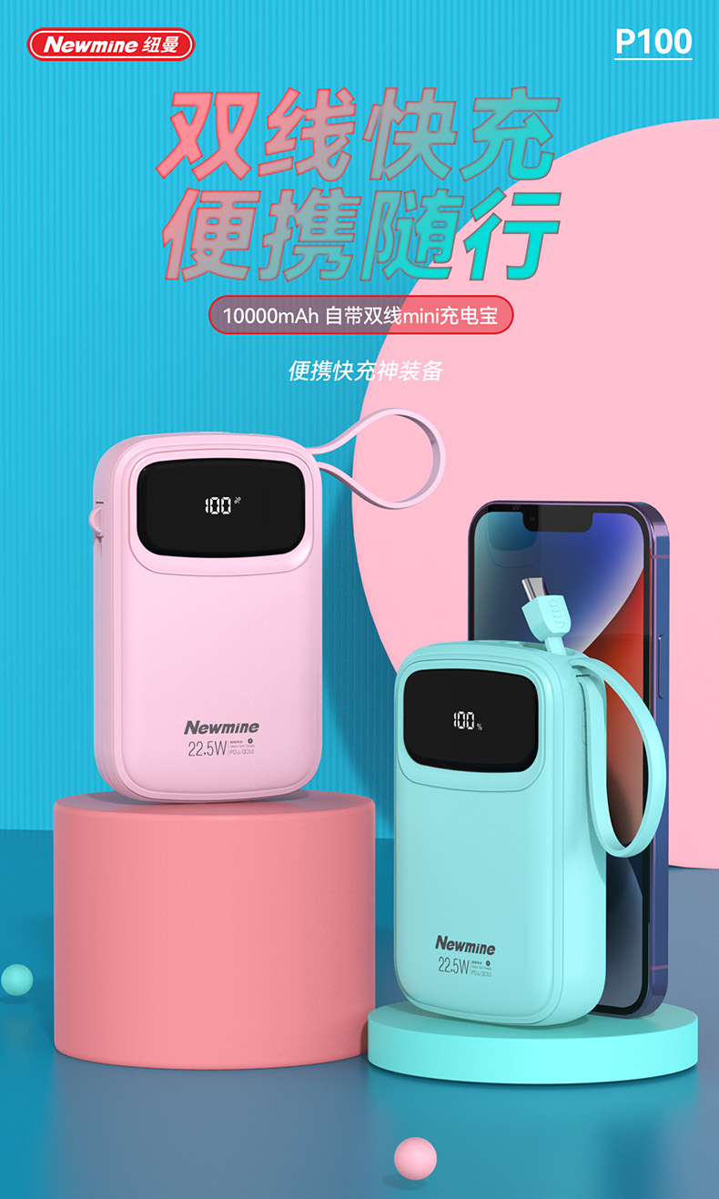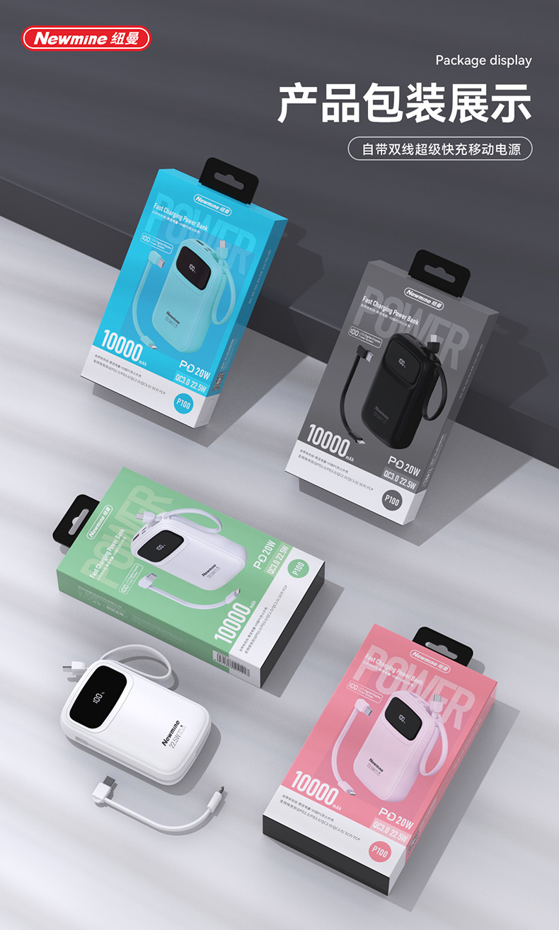 纽曼带线快充移动电源P100