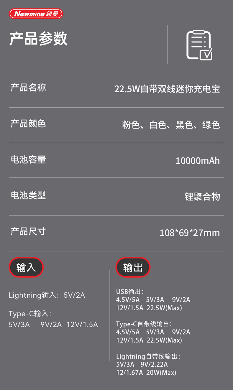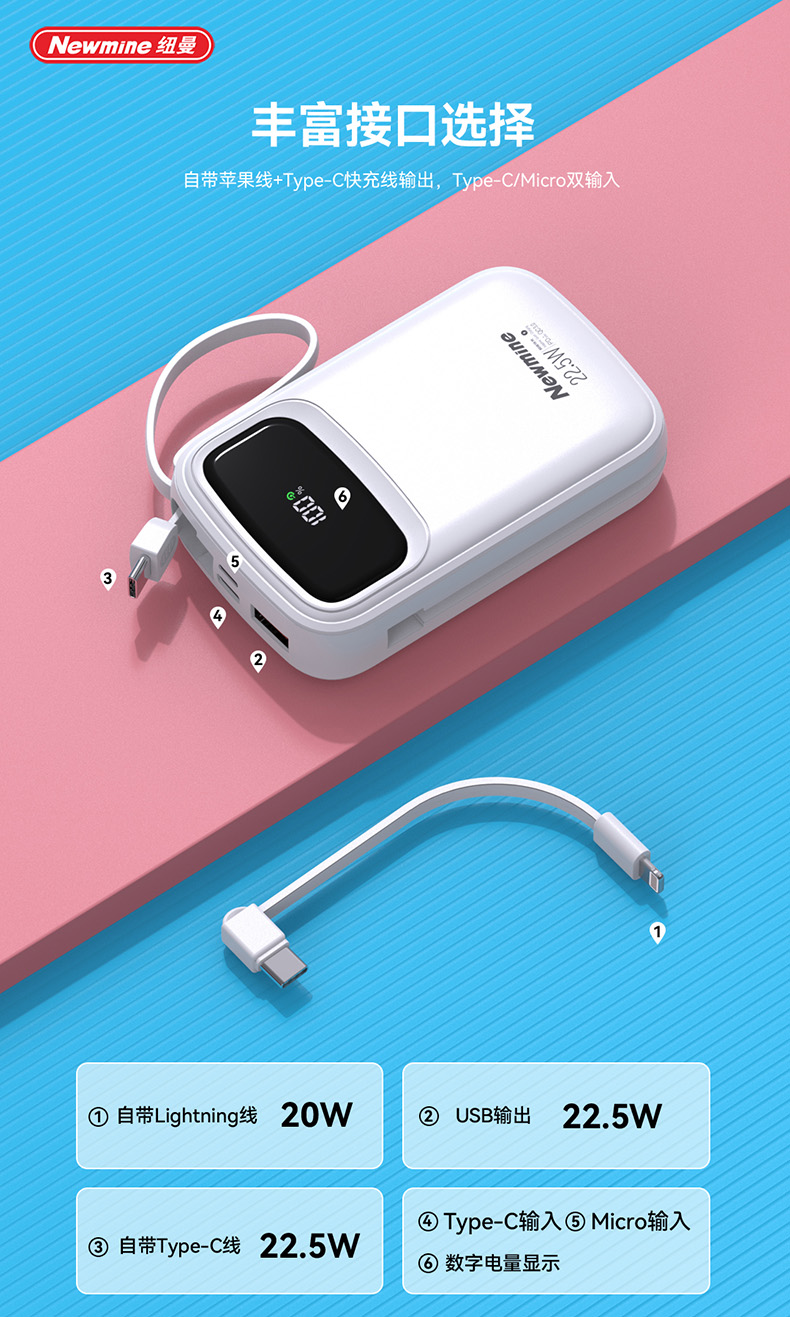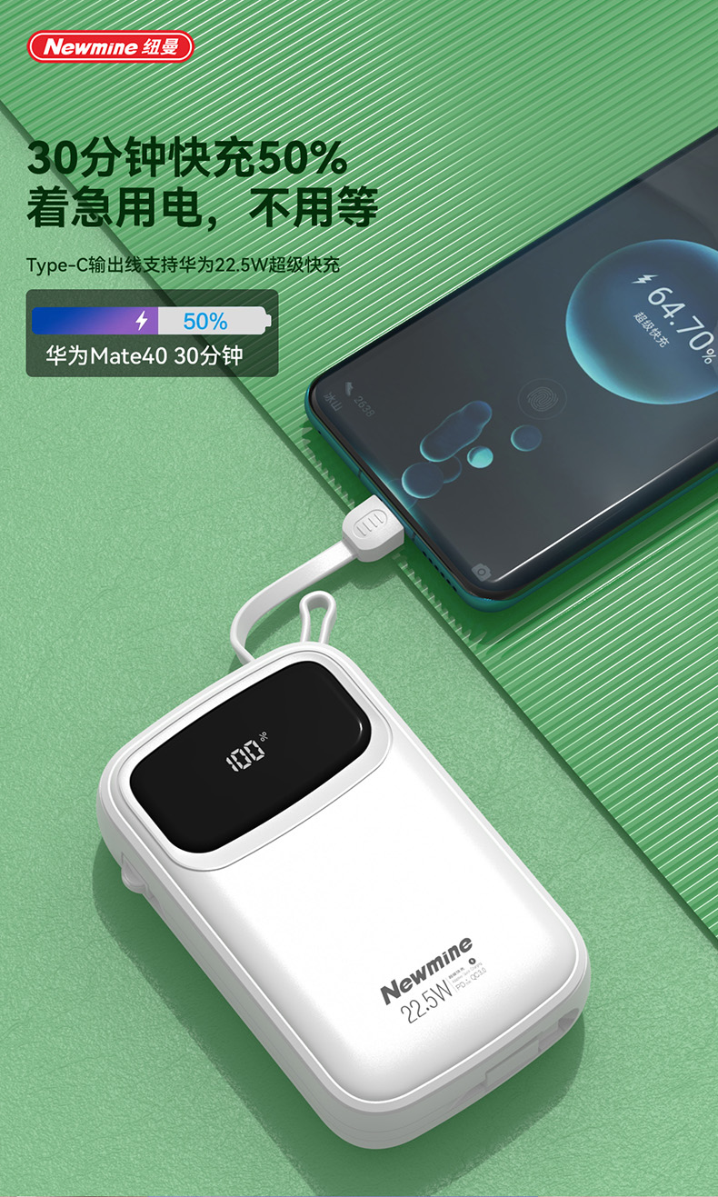 纽曼带线快充移动电源P100