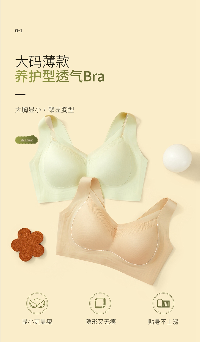 大胸显小软支撑无痕性感蕾丝超大码薄款调整型上托收副乳文胸
