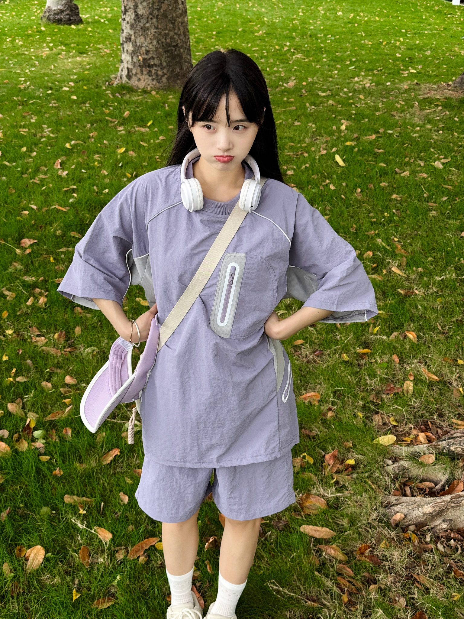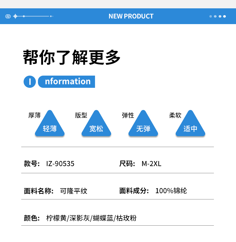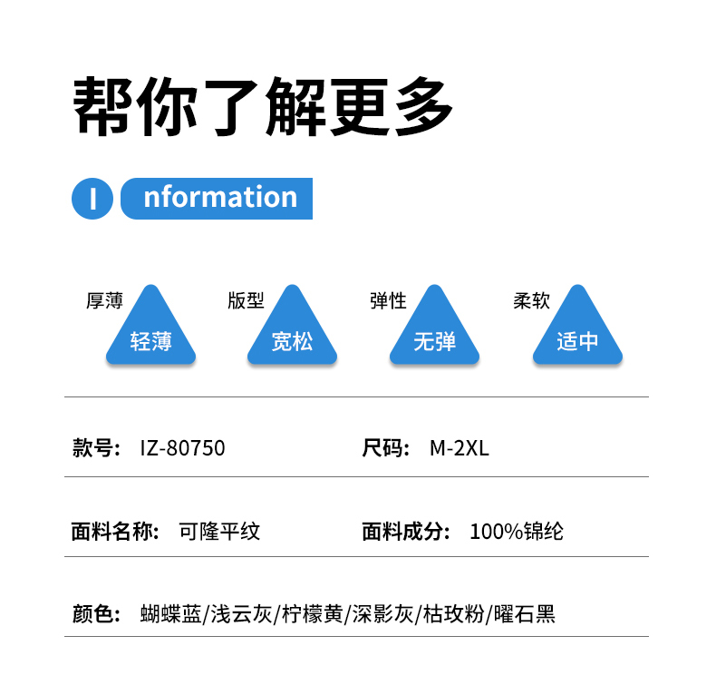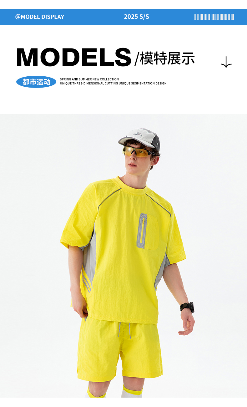 颜色:衣服(柠檬黄、蝴蝶蓝、枯玫粉、深影灰),裤子(浅云灰、深影灰、曜石黑、柠檬黄、蝴蝶蓝、枯玫粉)