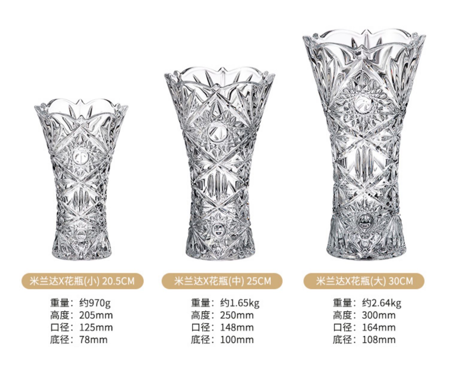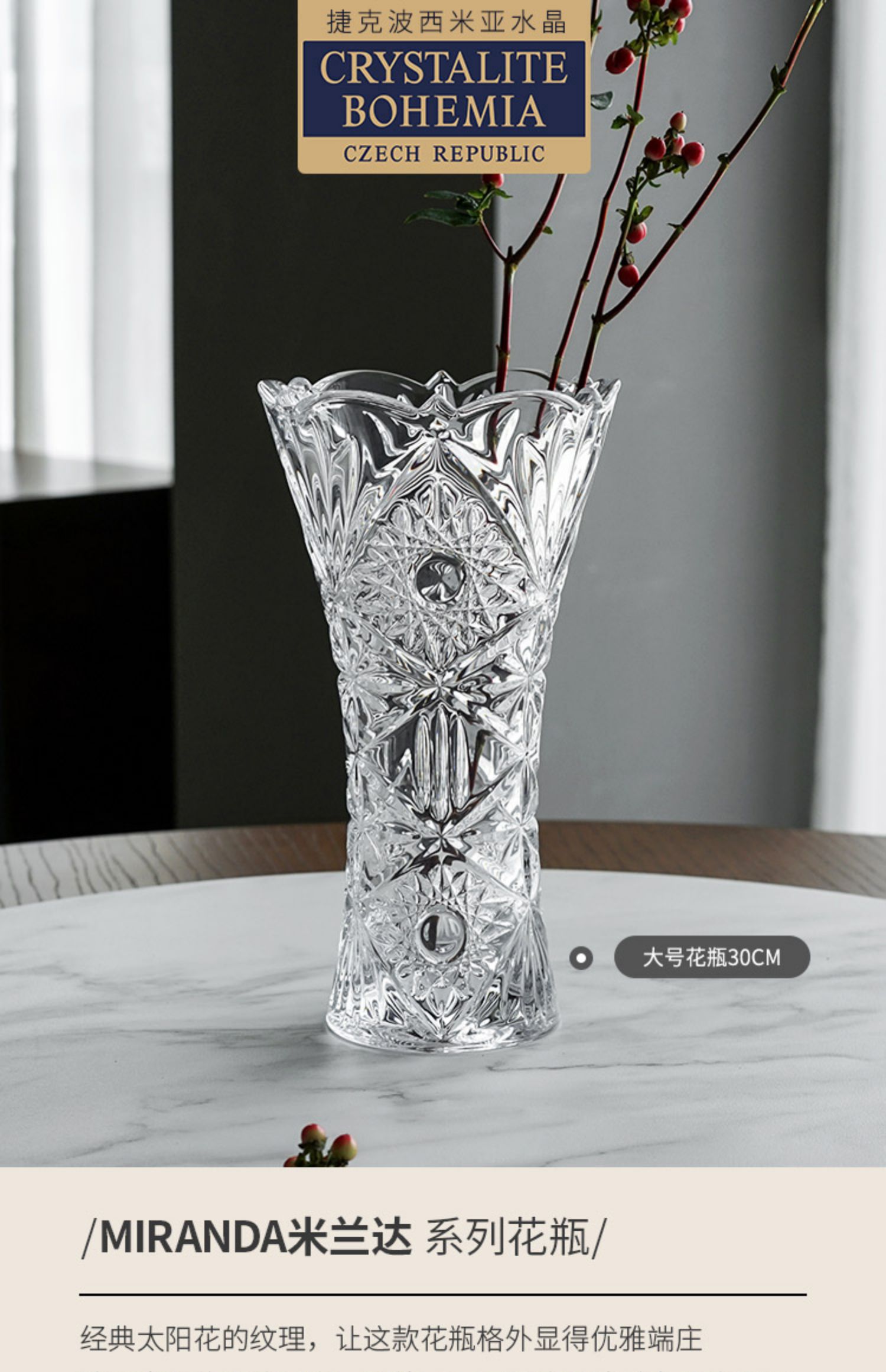 捷克进口BOHEMIA波西米亚水晶玻璃米兰达花瓶30cm