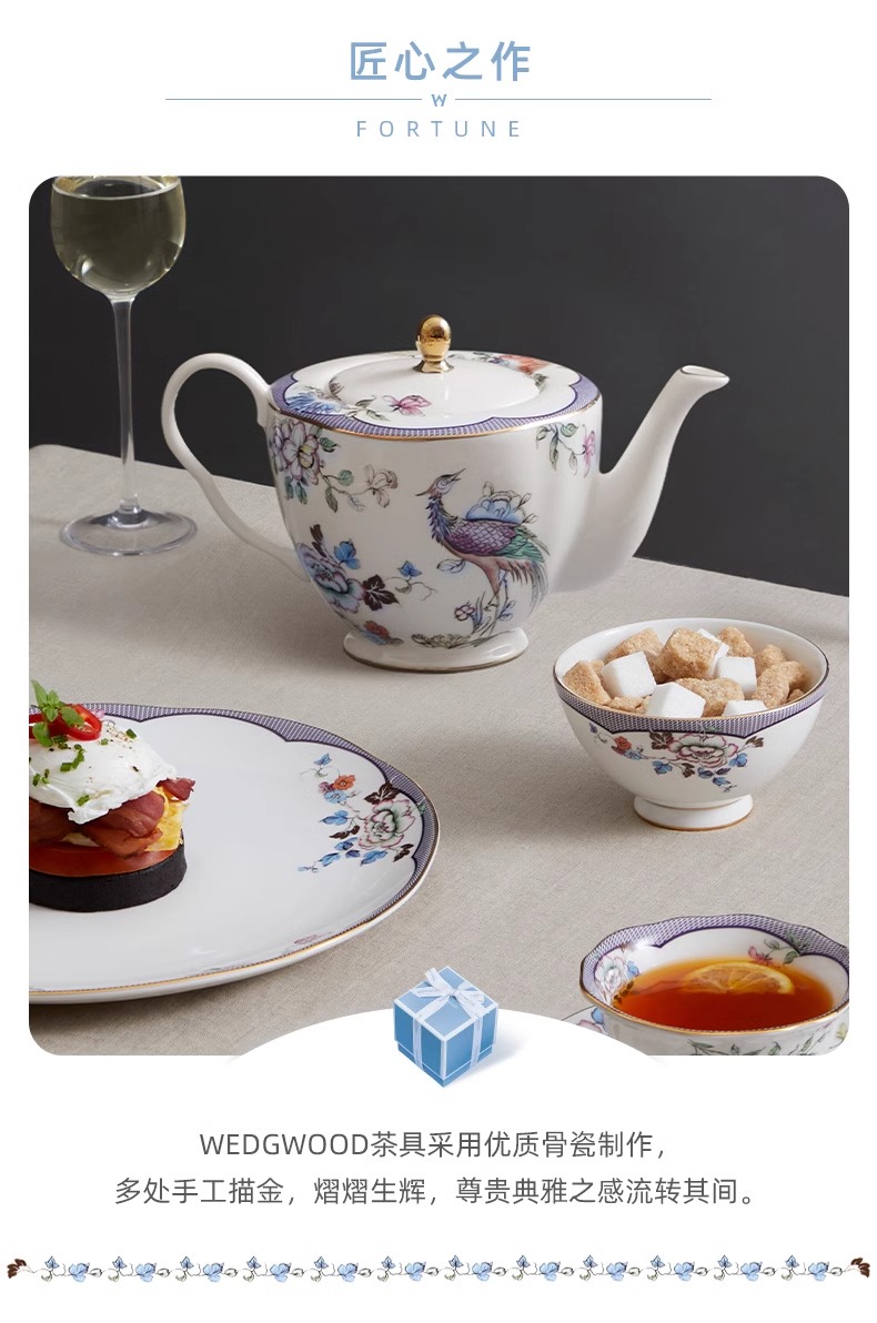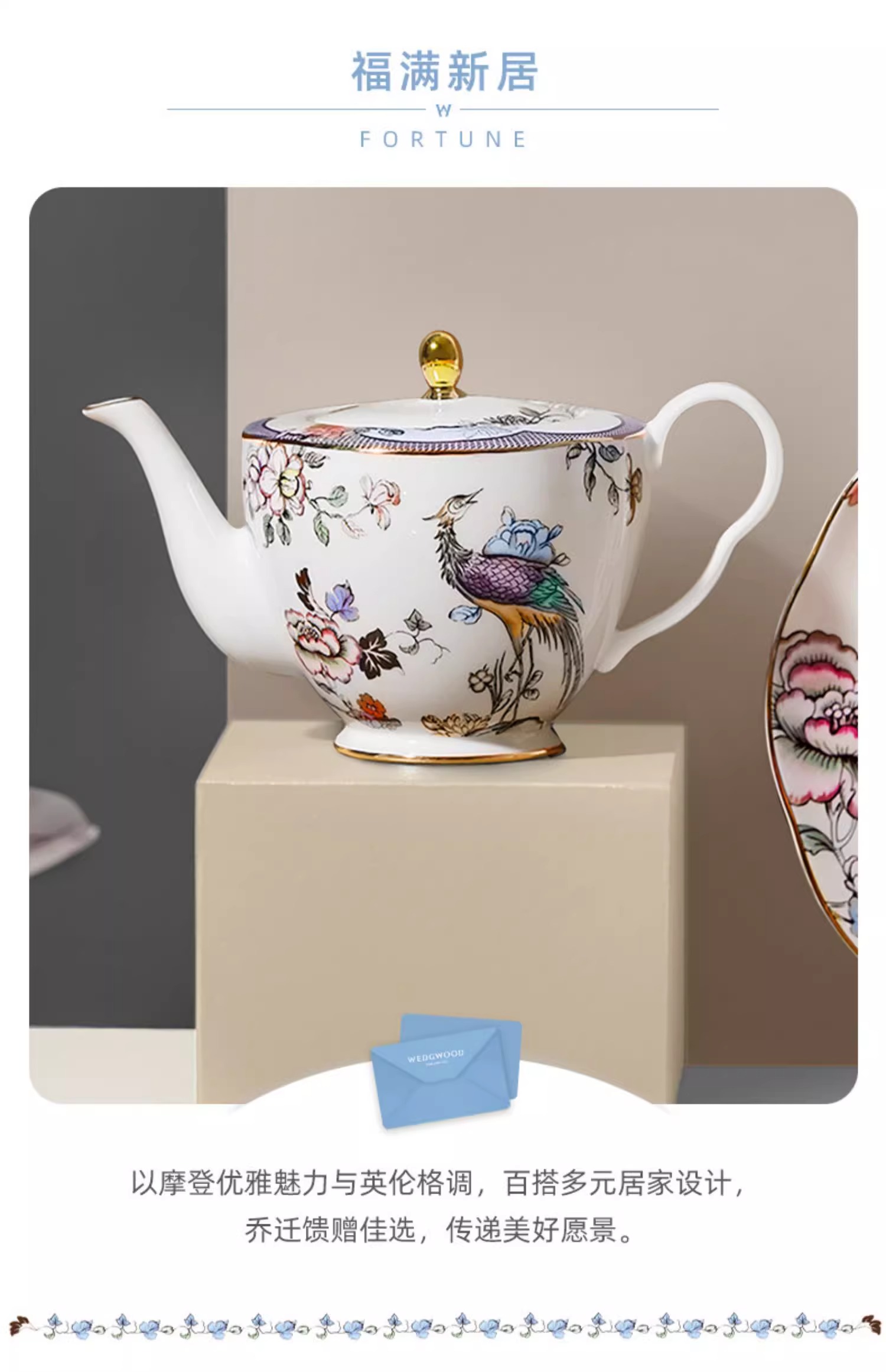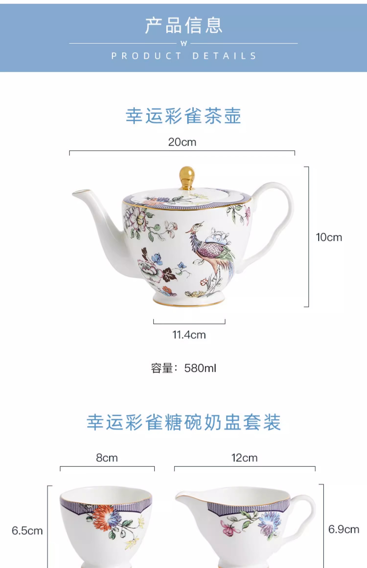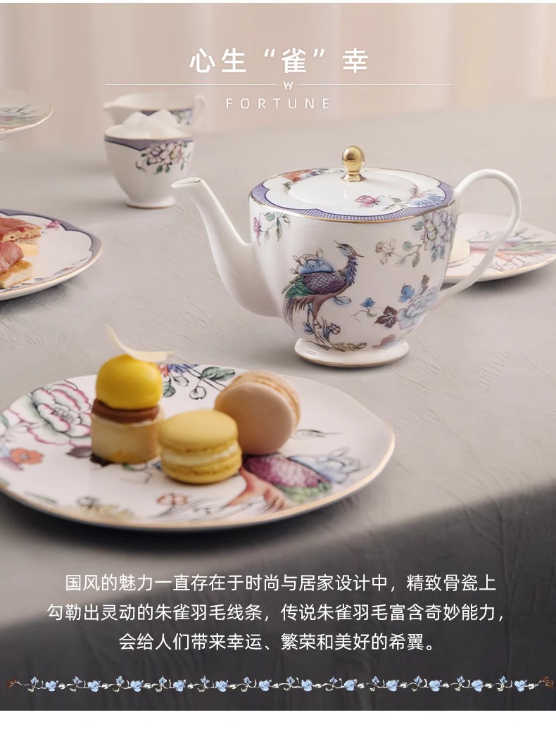 【样品特惠4.5折,仅1个,无货退款】WEDGWOOD威基伍德幸运彩雀骨瓷茶壶370家用咖啡壶欧式