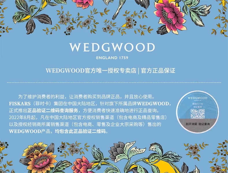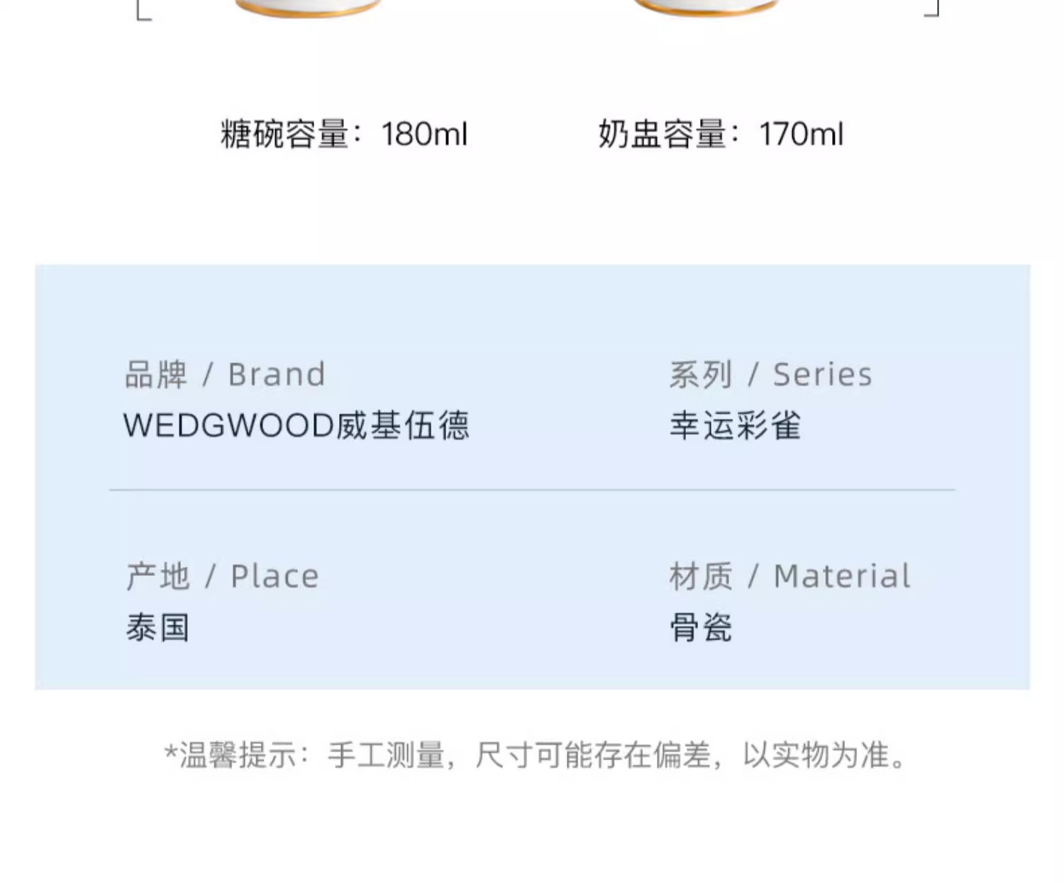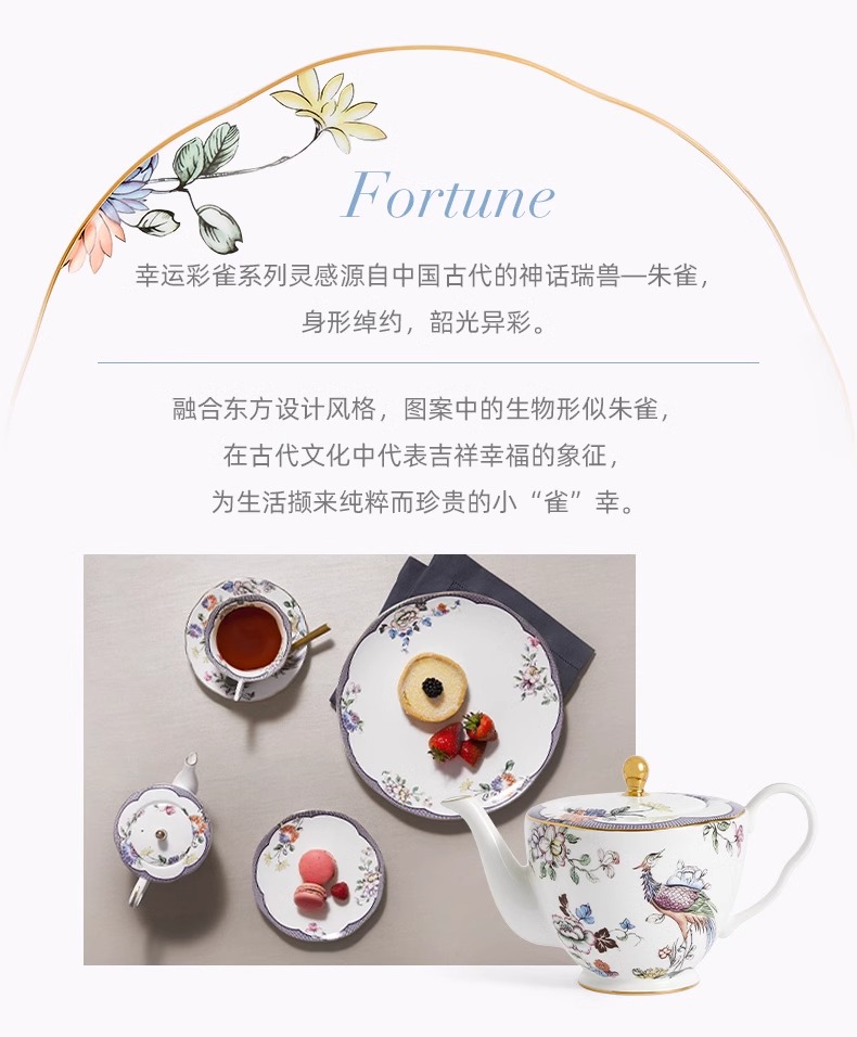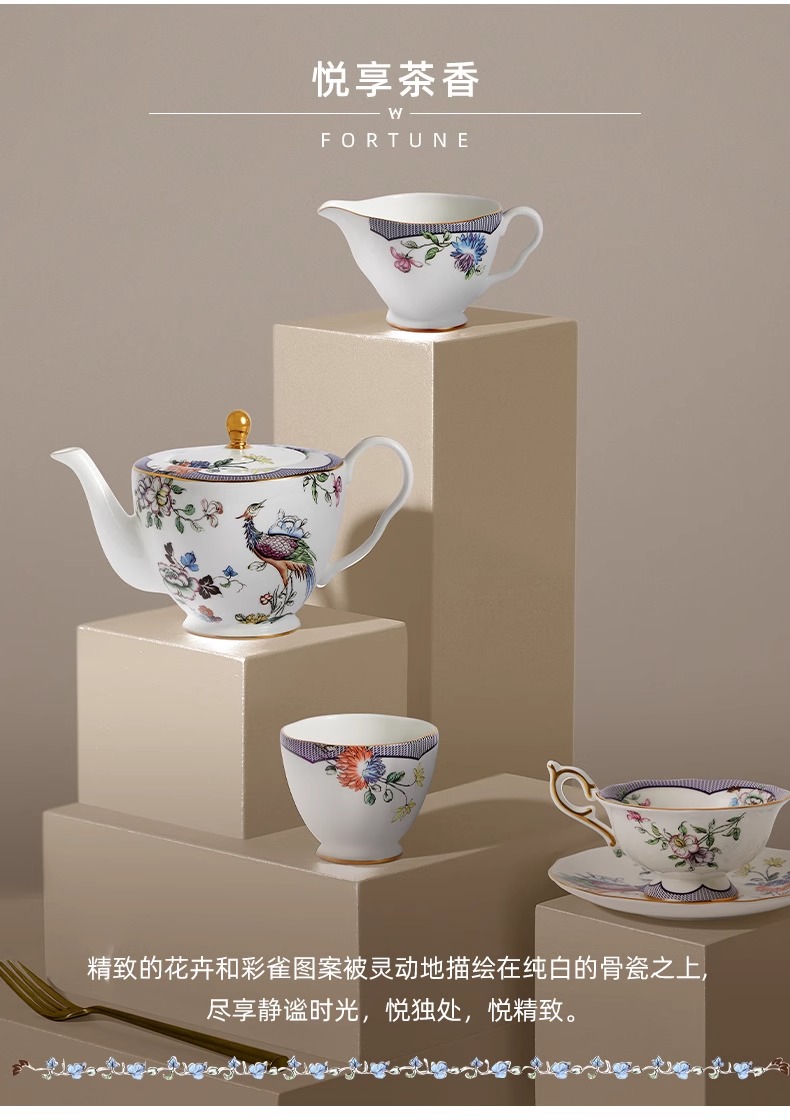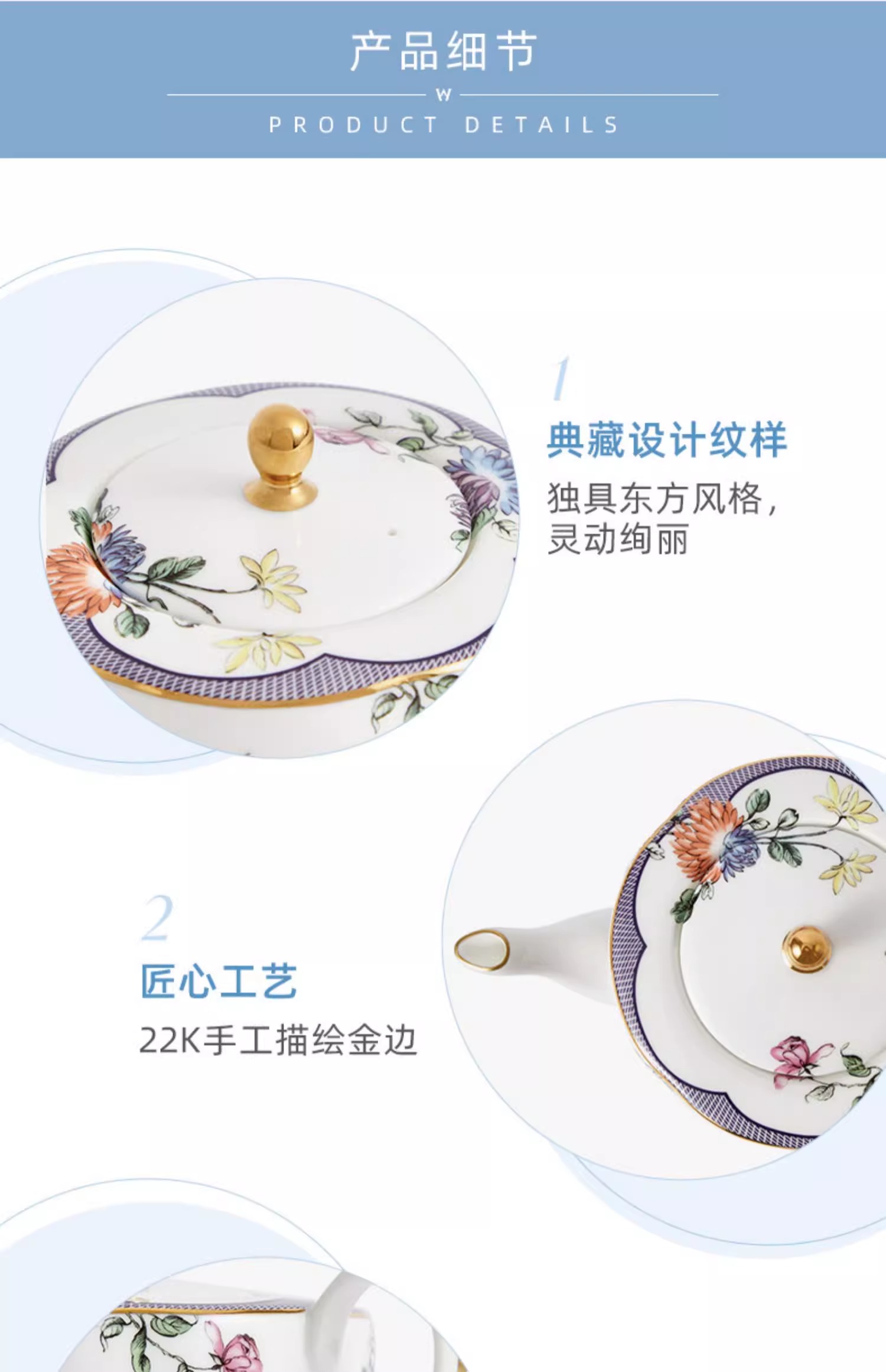 【样品特惠4.5折,仅1个,无货退款】WEDGWOOD威基伍德幸运彩雀骨瓷茶壶370家用咖啡壶欧式