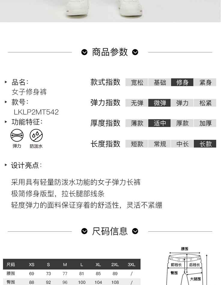 KOLONSPORT可隆裤子女款户外休闲裤修身裤防泼水长裤弹力运动裤 LKLP2MT542