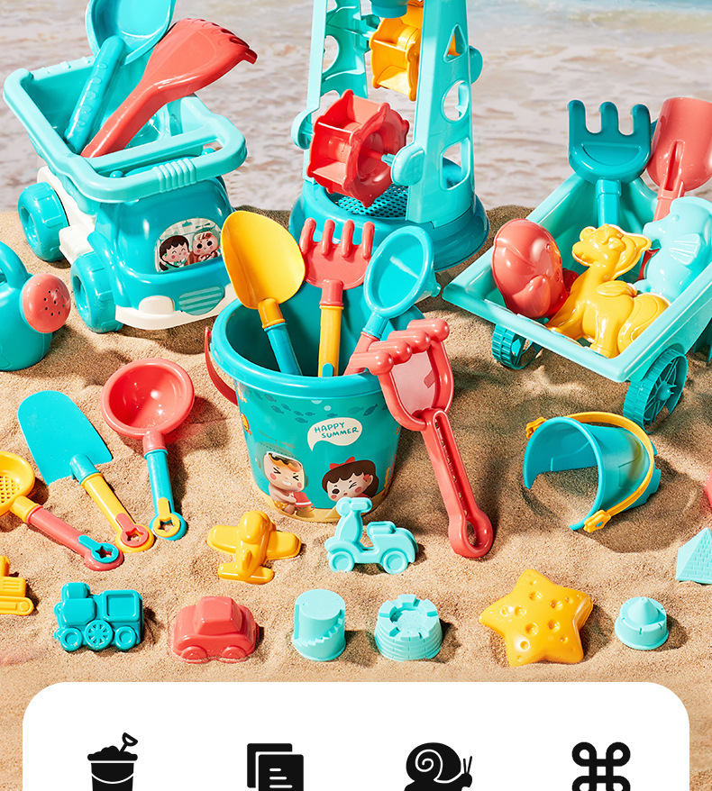 【宝宝的沙滩派对🎉】环保安全无异味!24件升级套装,玩沙挖土建城堡,一套搞定🌈快来解锁夏日玩沙新乐趣⛱️高质感 沙滩玩具套装桶 海边儿童玩水工具车 挖沙子的铲子 户外玩沙全套
