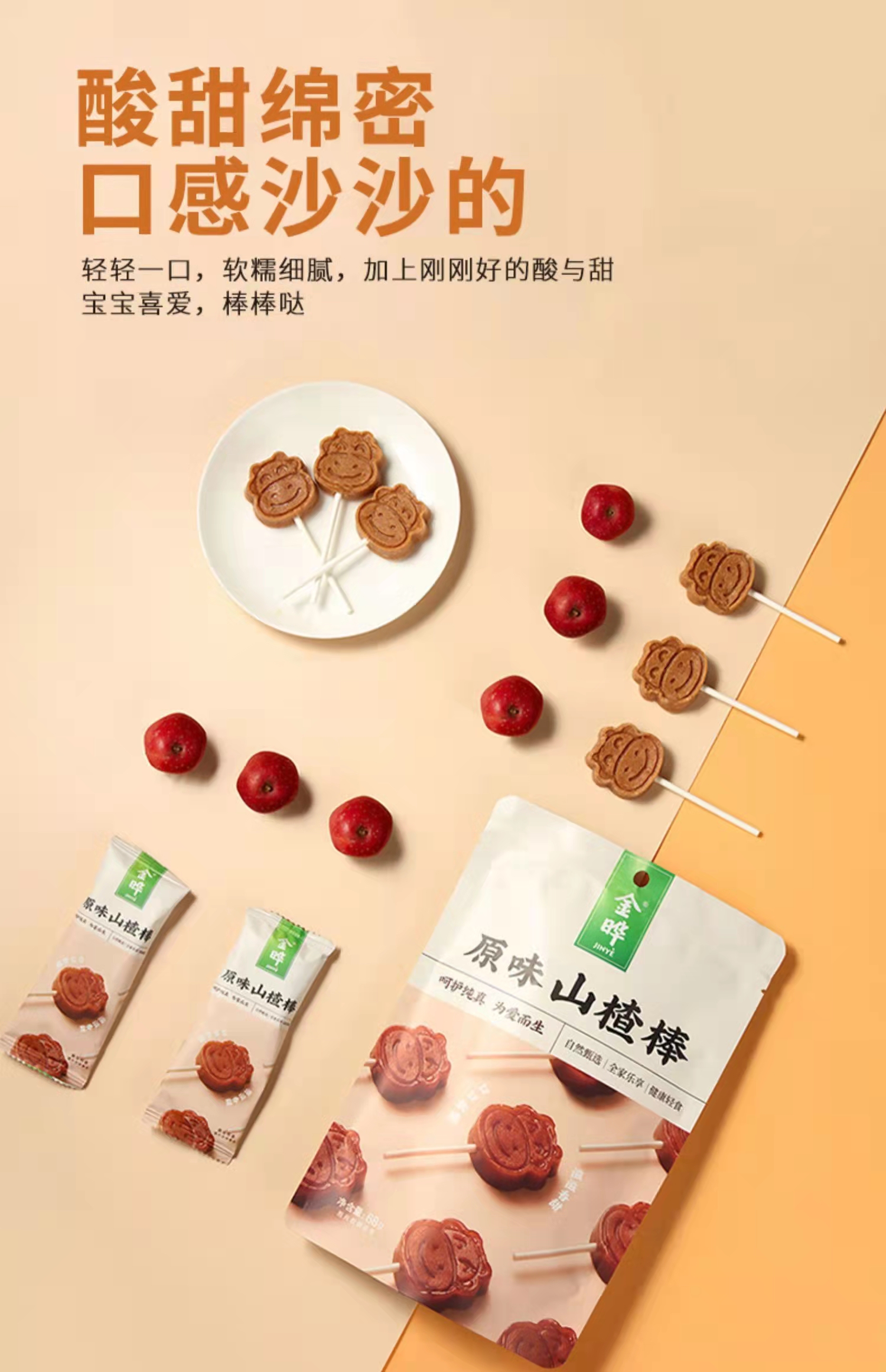 金晔山楂抱抱原味山楂棒棒糖休闲零食小包装128g