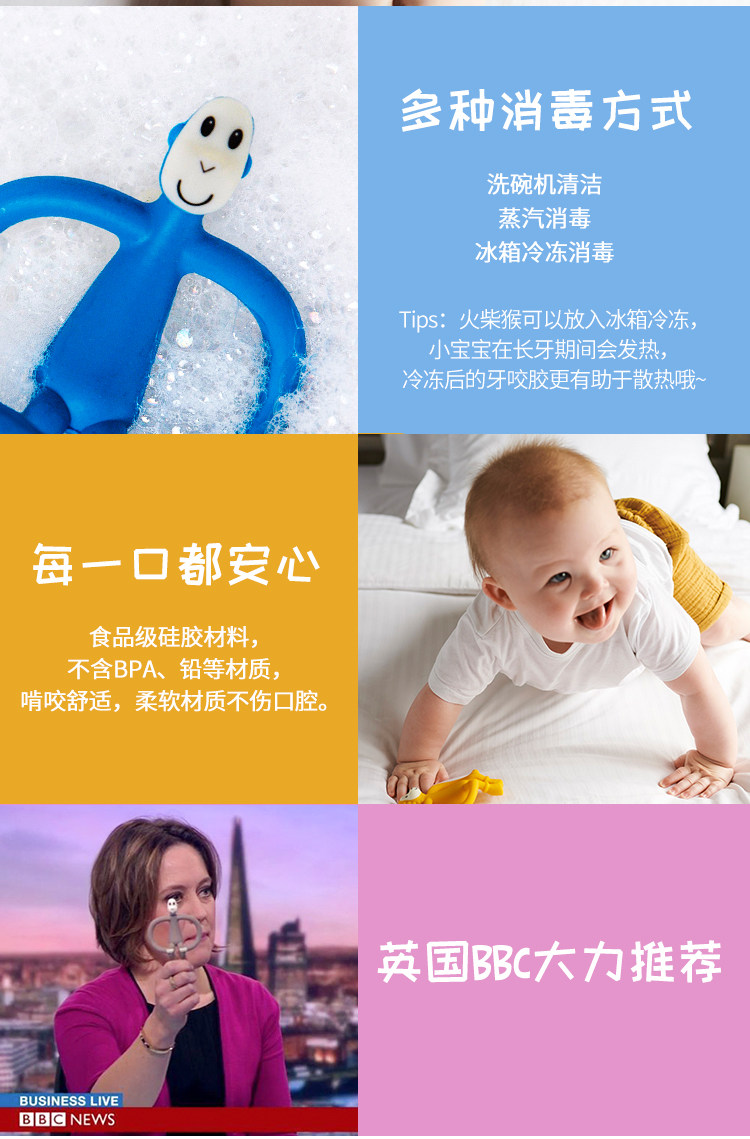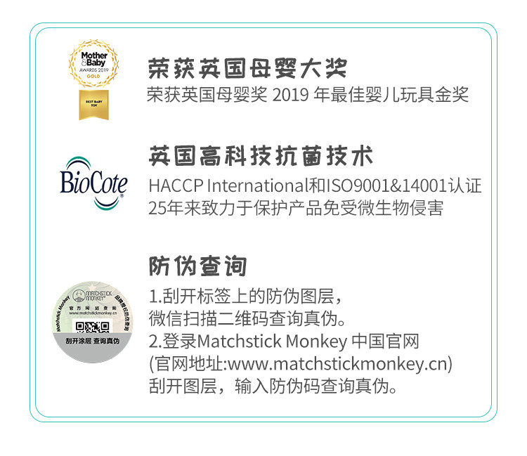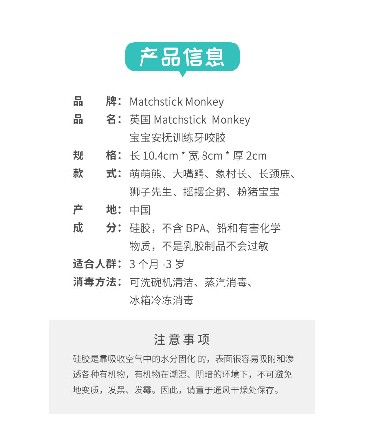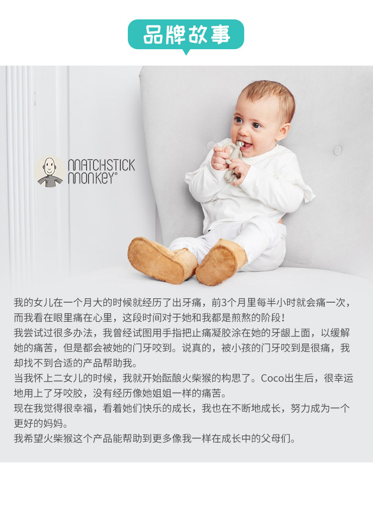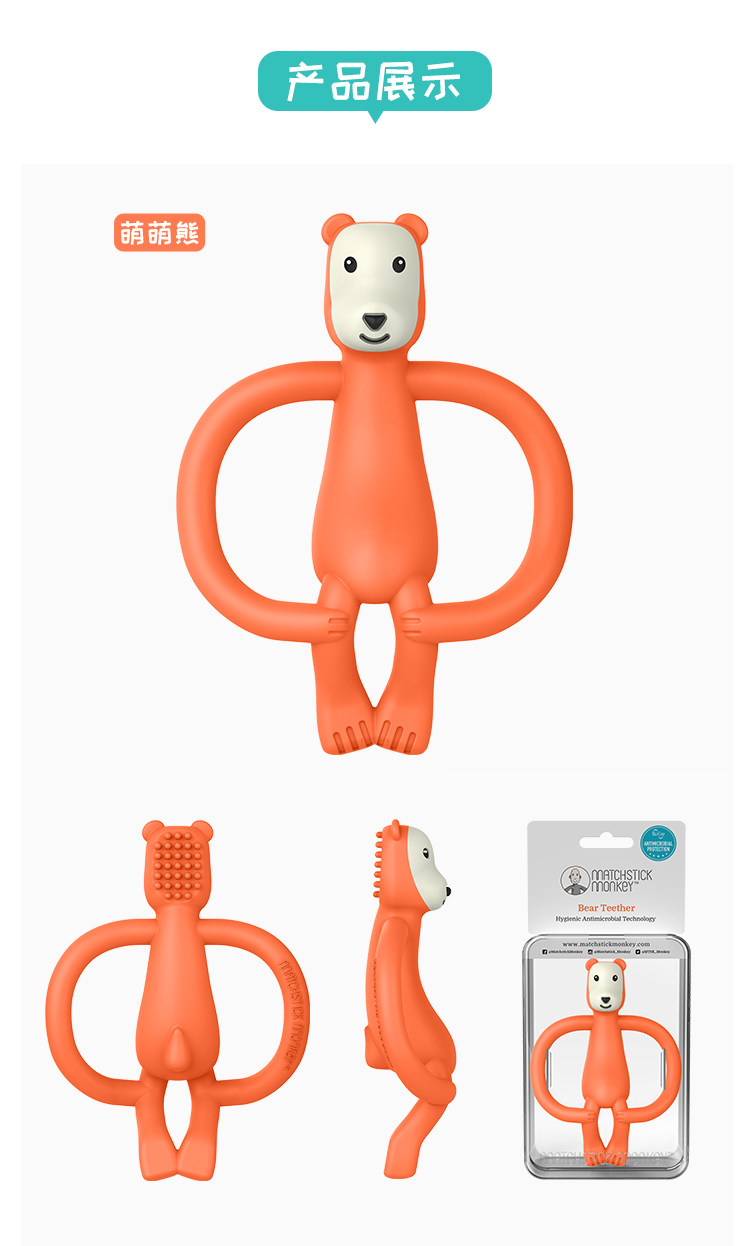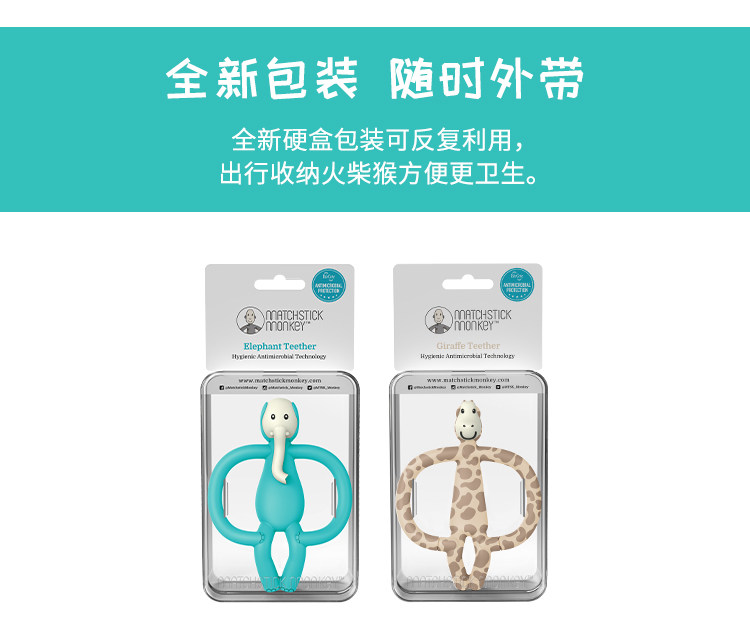 英国Matchstick Monkey火柴猴牙胶宝宝婴儿咬咬安抚磨牙棒动物款
