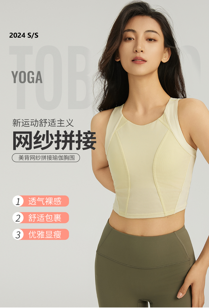【双旦秒】elina一恋2024新款美背网纱拼接瑜伽普拉提胸围QC2806(特价产品,收货7天内支持调换、不退款)
