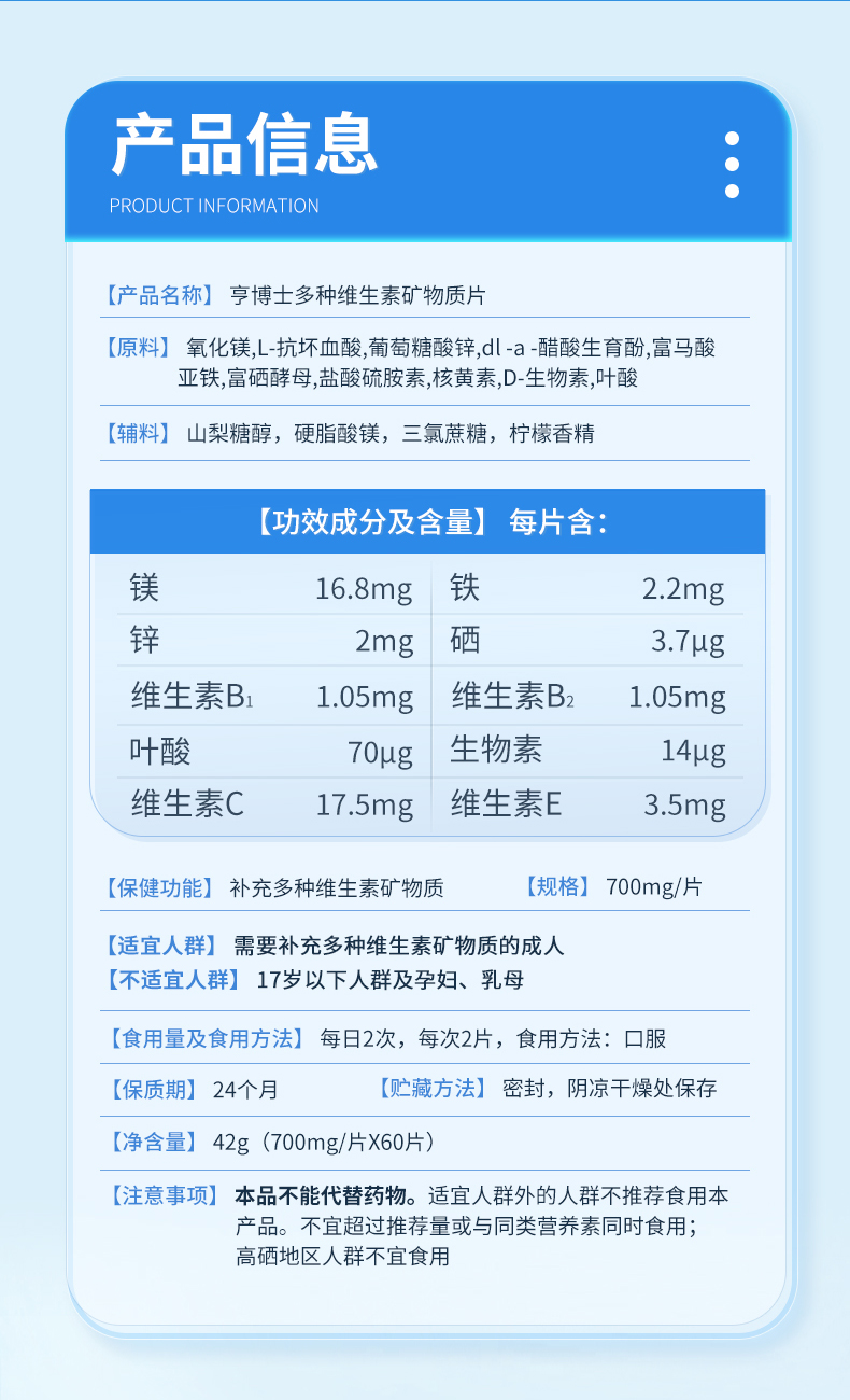 华喜达亨博士多种维生素矿物质片营养素补充剂补充多种矿物质