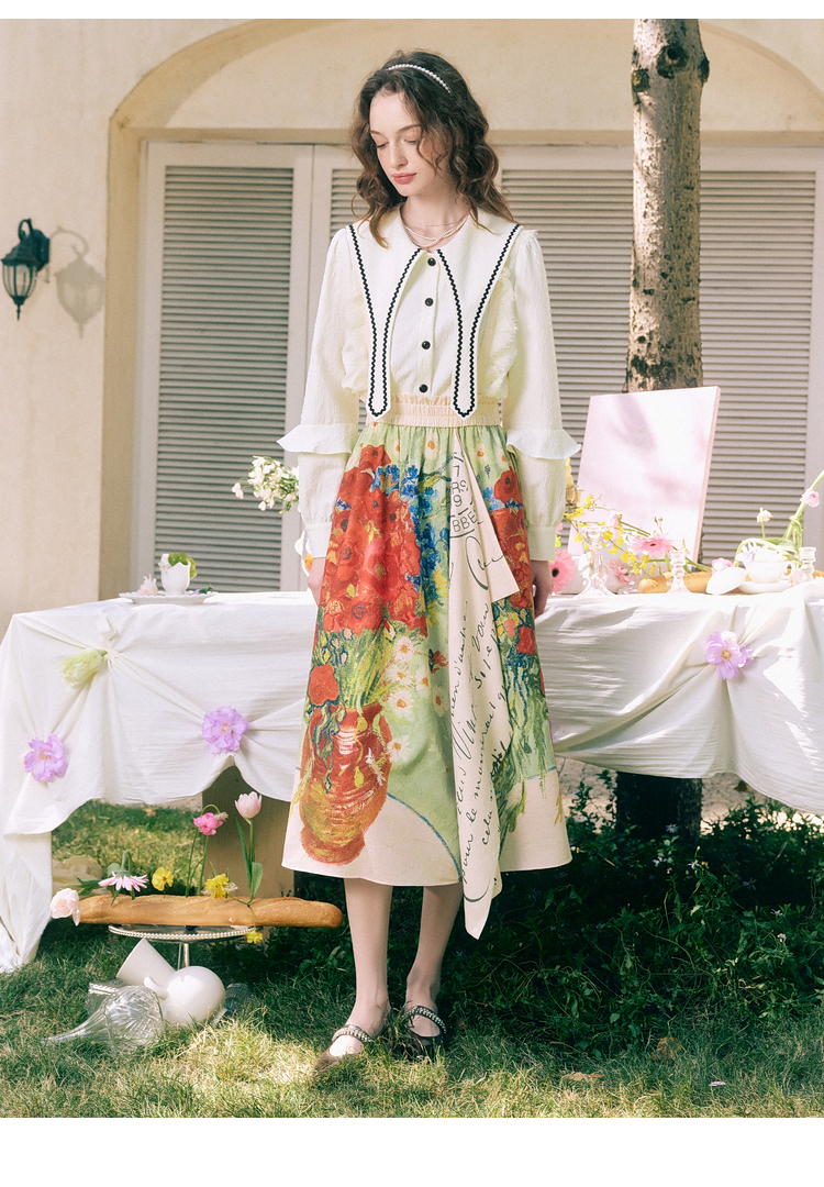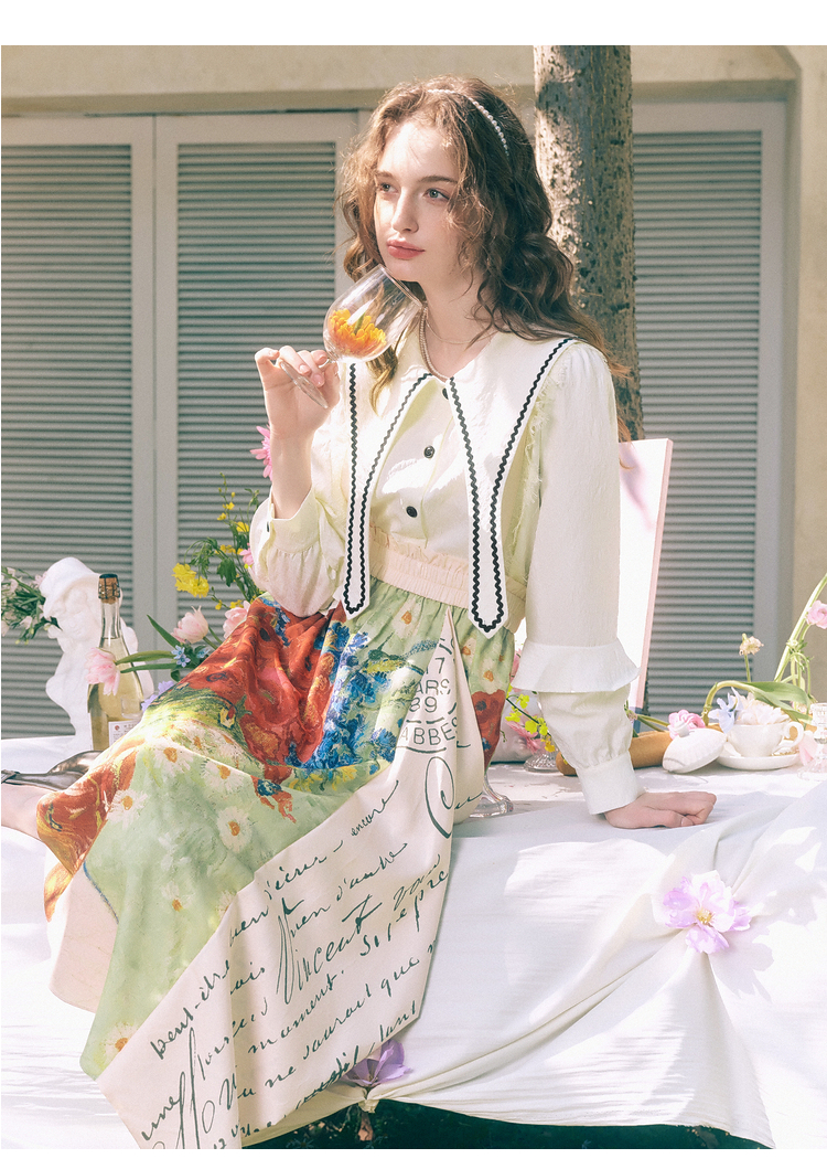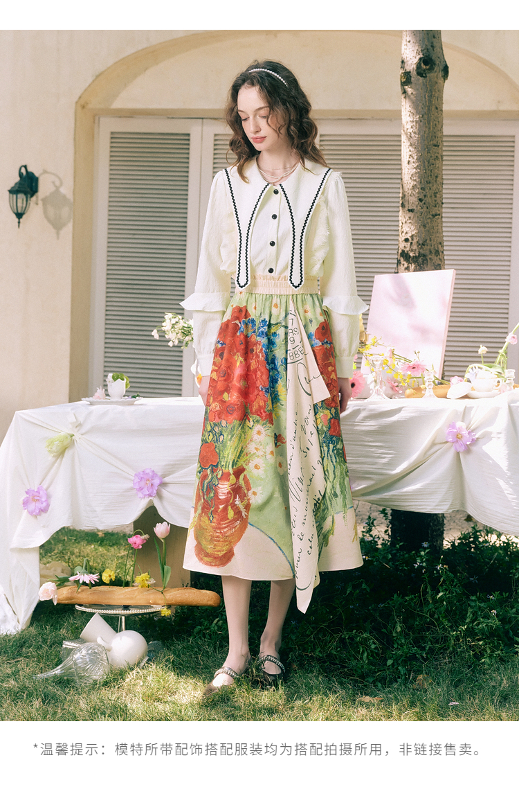 两三事梵高艺术闺房秘话 夏新款优雅油画印花无袖背心裙连衣裙