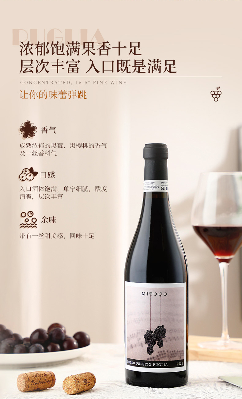 【普利亚产区的精品之作】意大利米多克风干红葡萄酒 意大利进口 16.5%vol