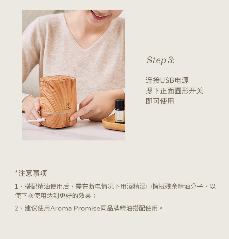 Aroma Promise沐光晨曦(日本柚子精油5ml+木纹香薰机)