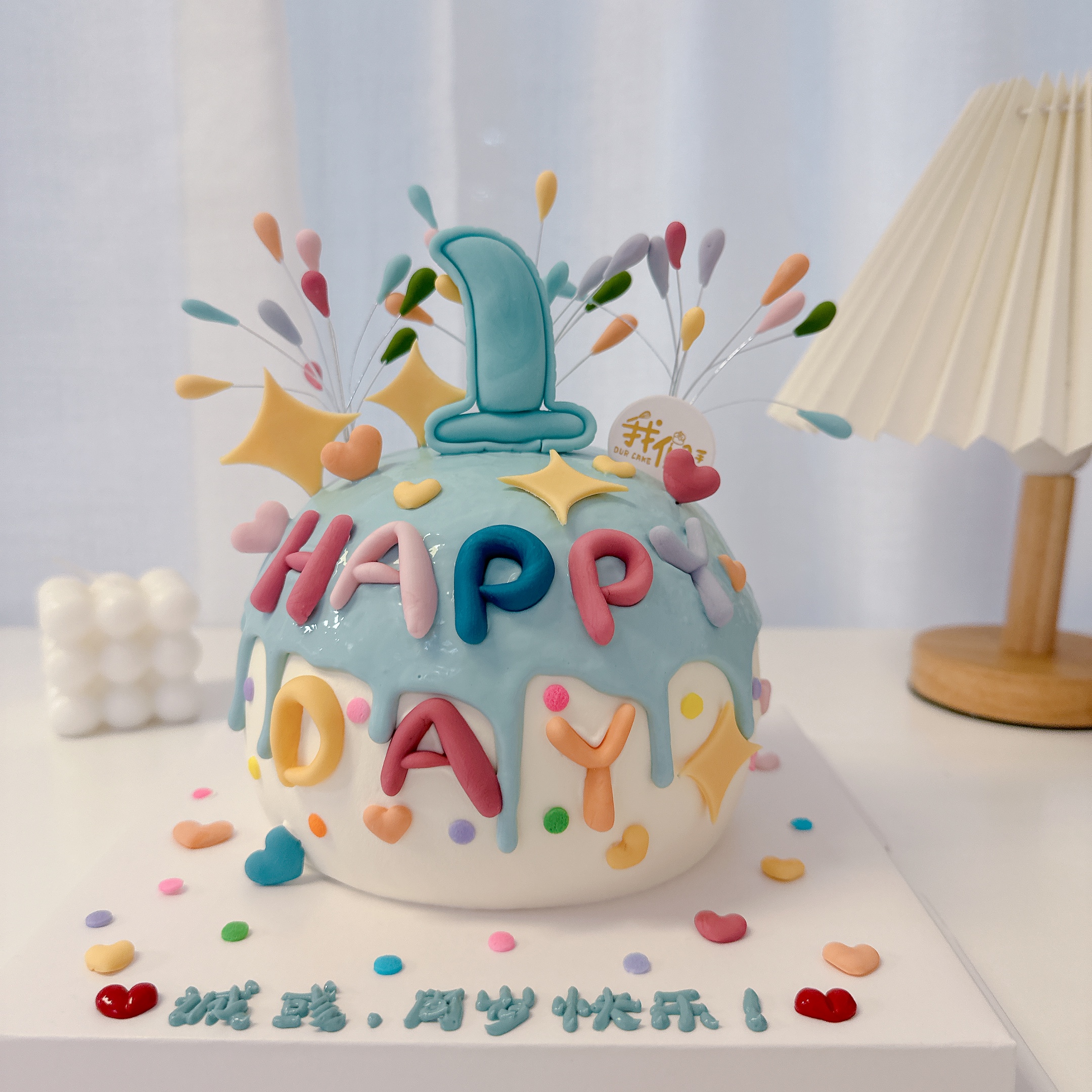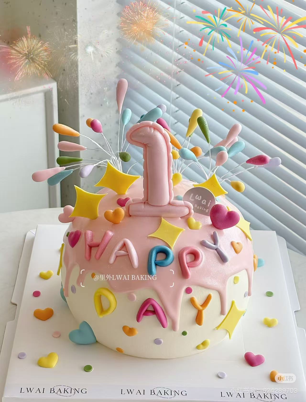 多款式~彩色烟花HAPPY卡通蛋糕(下单备注要改的数字)-低糖处理无添加