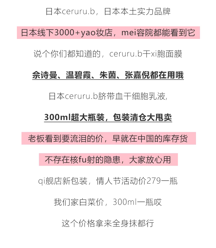 【商品名称】日本ceruru.b脐带血干xi胞乳液300ml