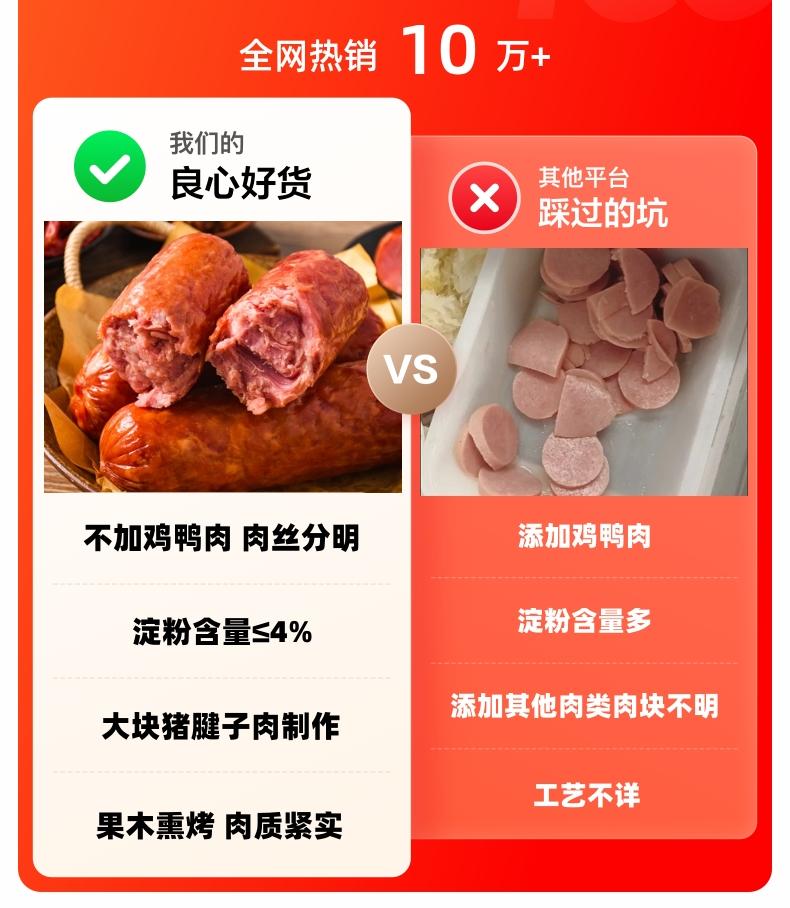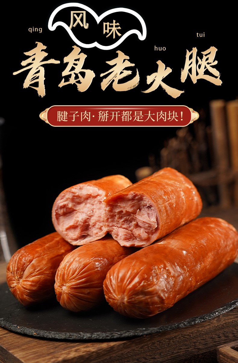 青岛风味老火腿传统手工特产猪腱子肉果木卤熏烤老式香肠正宗香肠300g/根