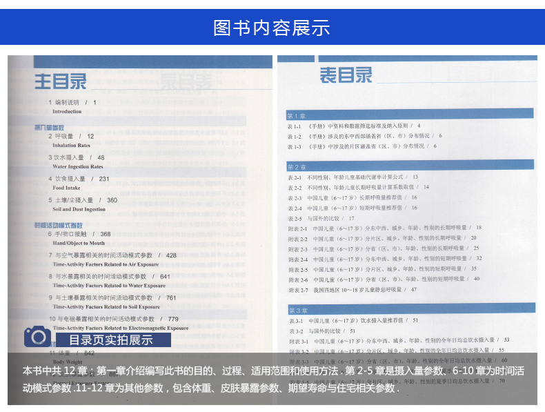 暴露参数是用来描述人体暴露环境介质特征和行为的基本参数,是决定环境健康风险评价准确性的重要因素。根据《国家环境保护“十二五”环境与健康工作规划》,2013-2014年,环境保护部科技标准司委托中国环境科学研究院,针对我国0-17岁儿童开展了“中国儿童环境暴露行为模式研究”,并在此基础上,综合国内其他相关调查、研究及统计信息,形成了《中国人群暴露参数手册(儿童卷:0-5岁)》和《中国人群暴露参数手册(儿童卷:6-17岁)》。