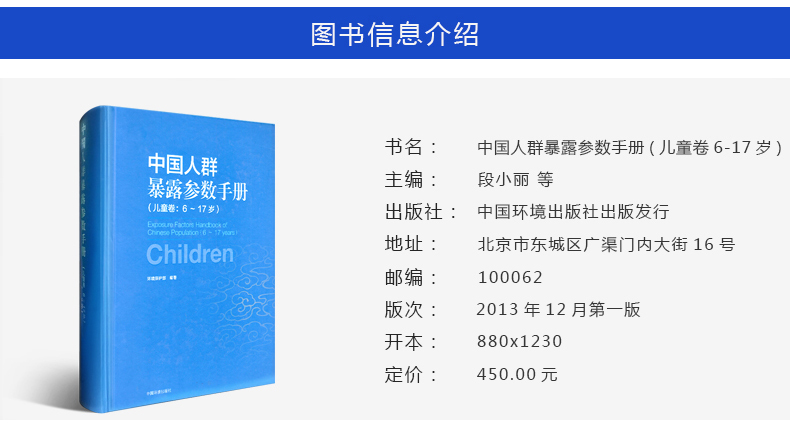 中国人群暴露参数手册(儿童卷:6-17岁) 环境保护部 环境科普 环境监测 中国环境出版集团 9787511127617