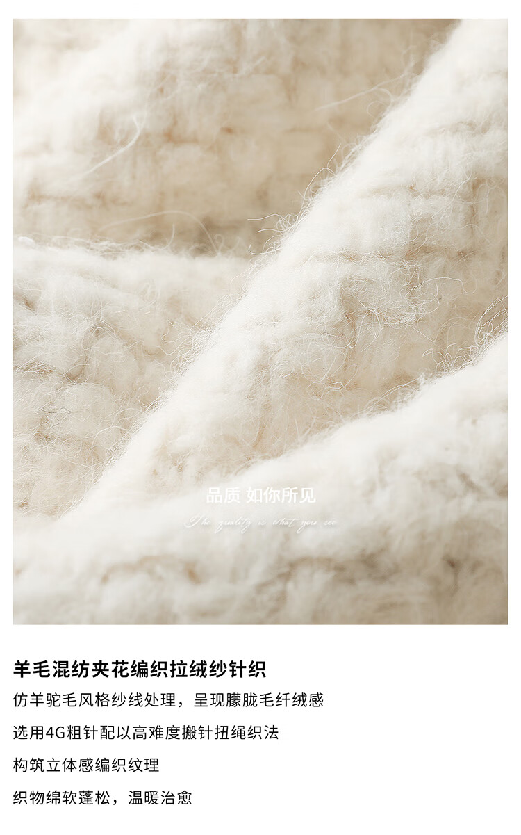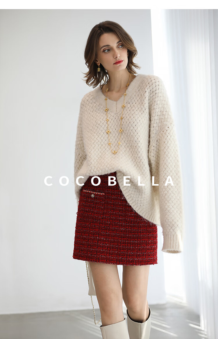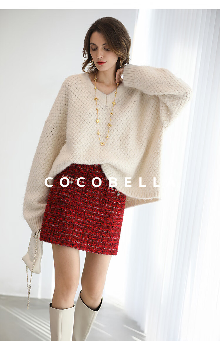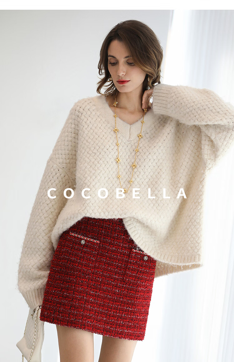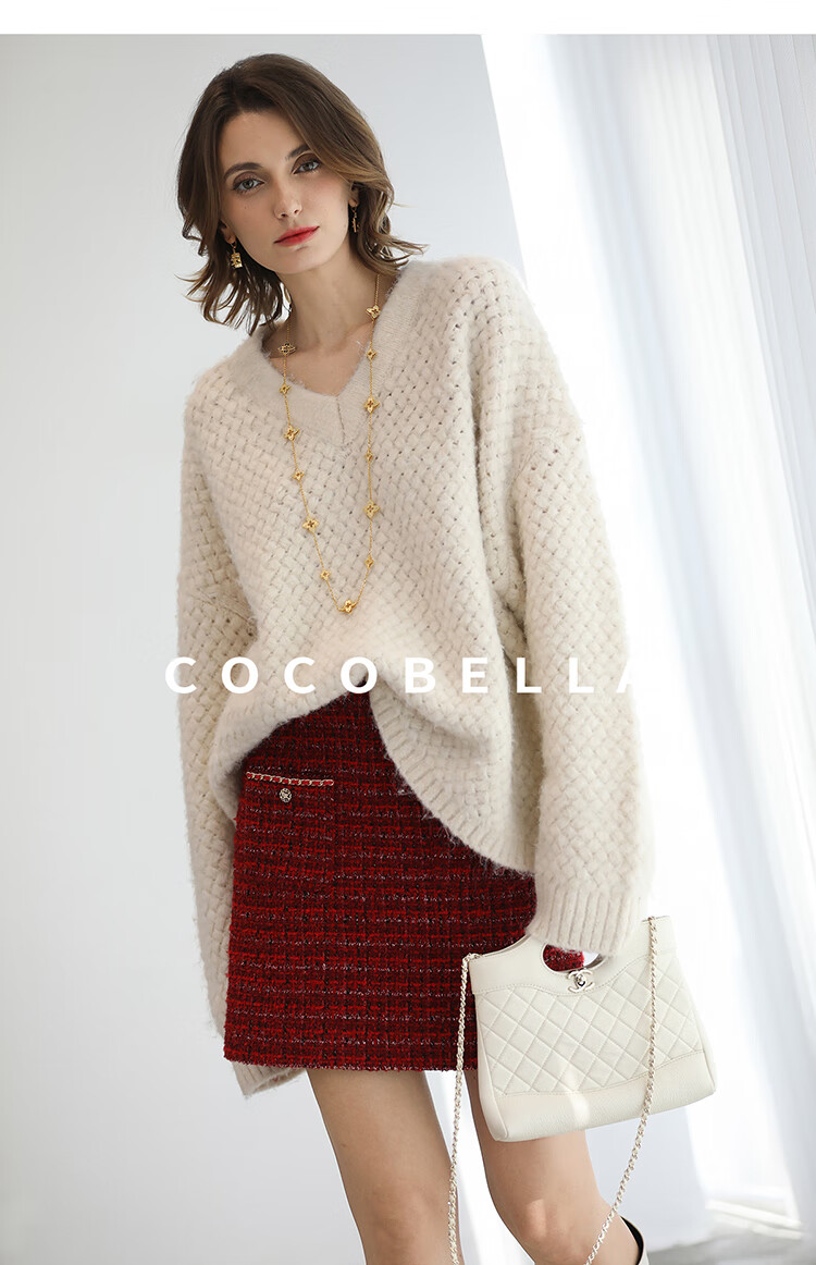 COCOBELLA设计感编织风白色V领毛衣女25秋冬气质针织衫MZ3248