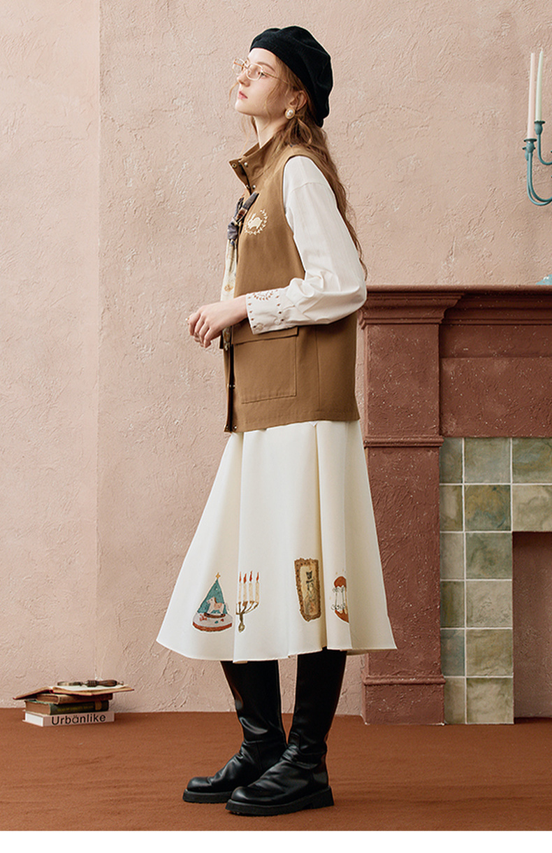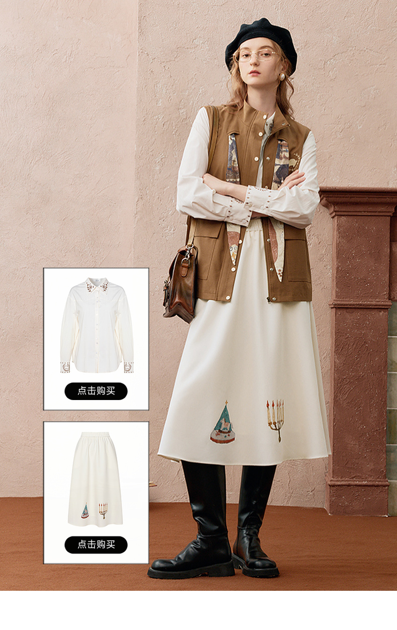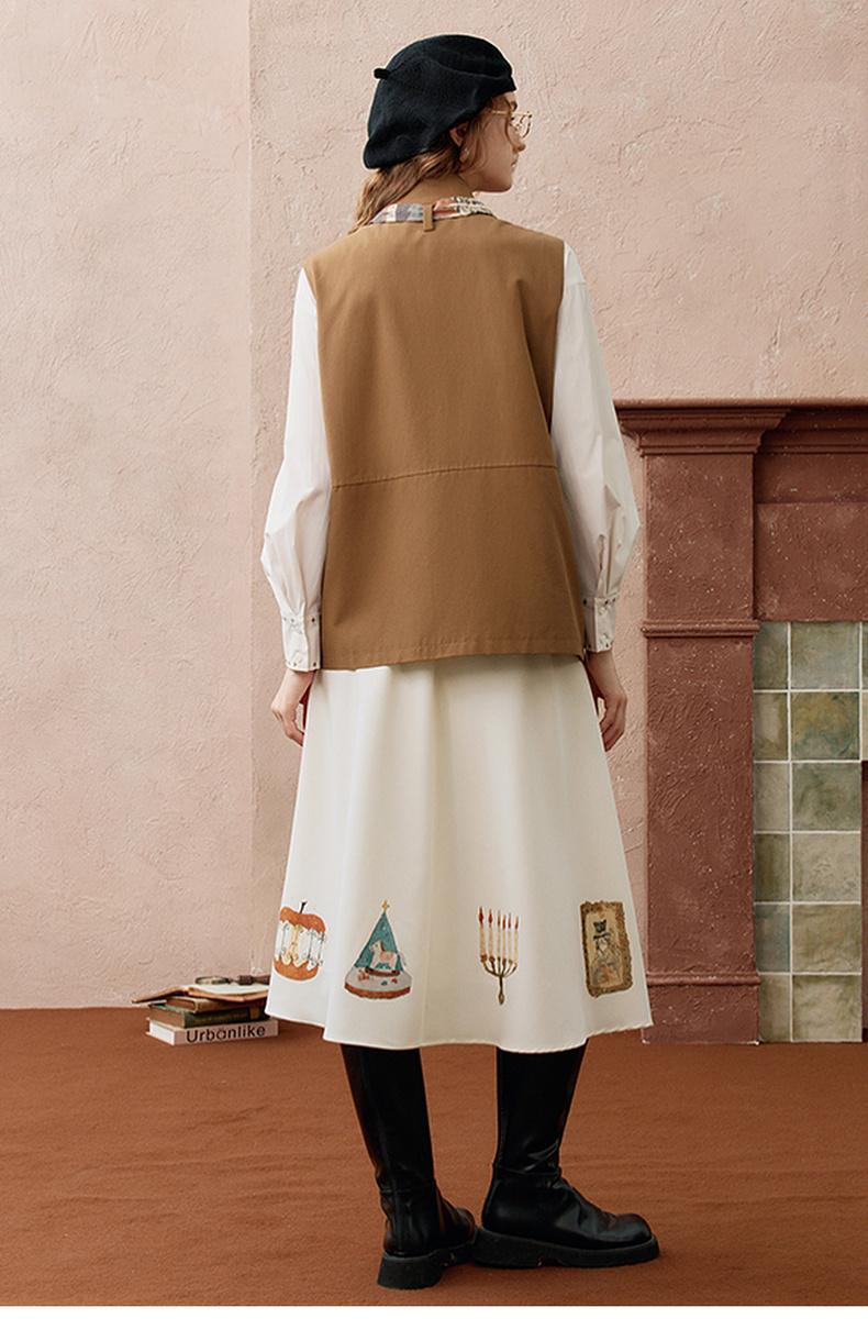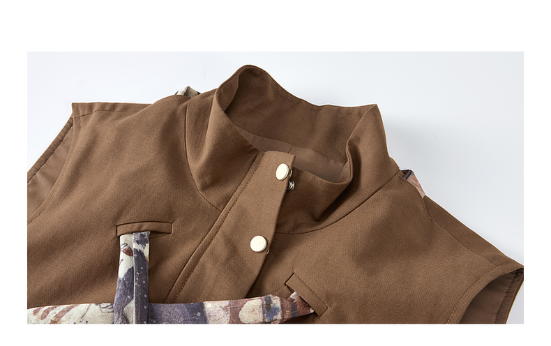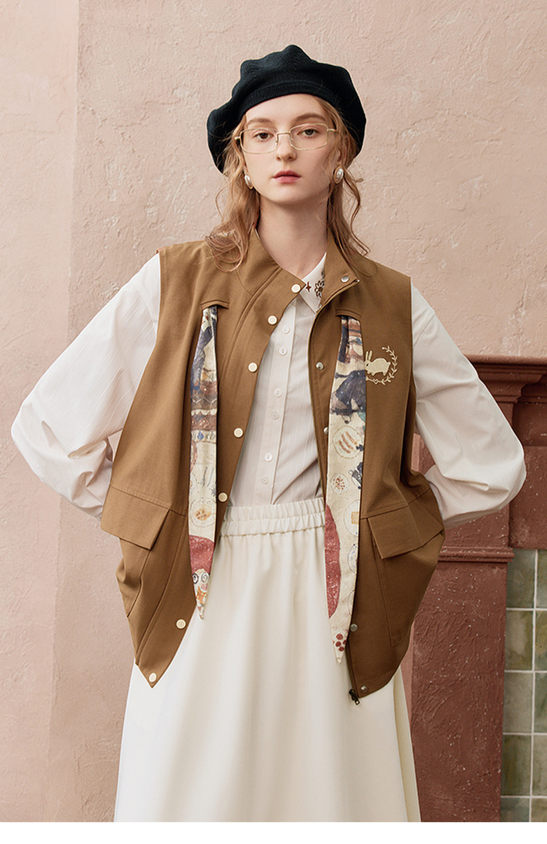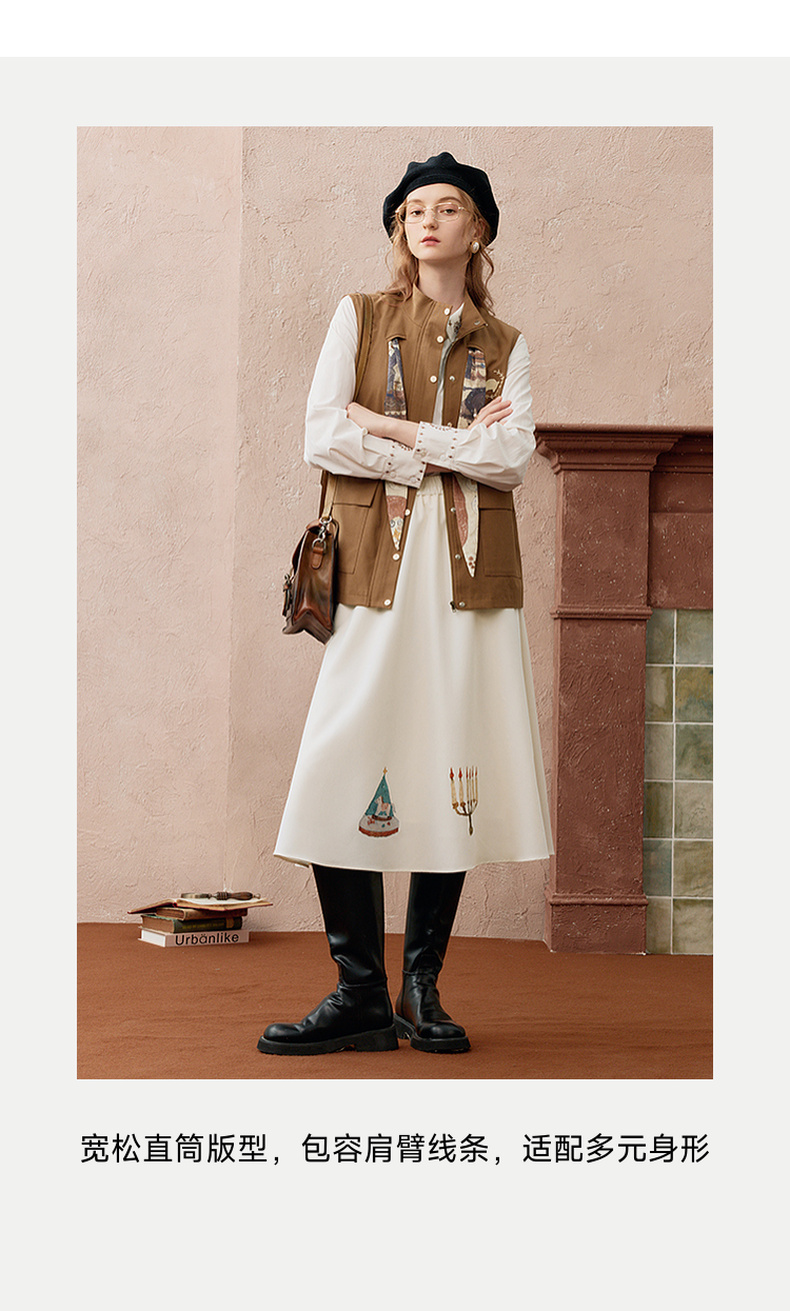 两三事秋帧漫游2025秋季新款可拆印花丝巾工装马甲外套女宽松马夹