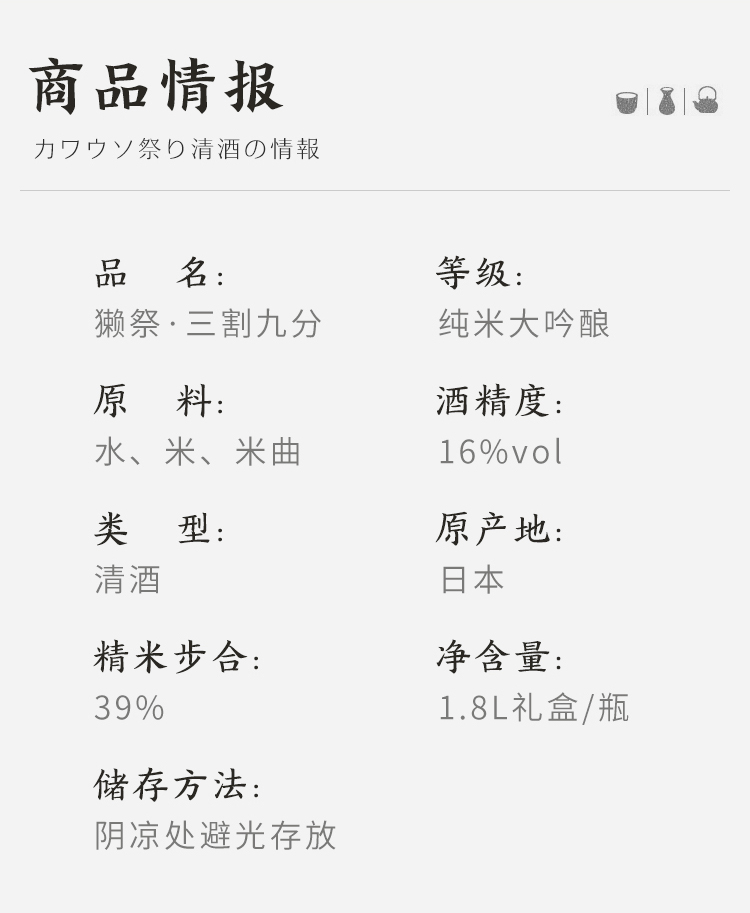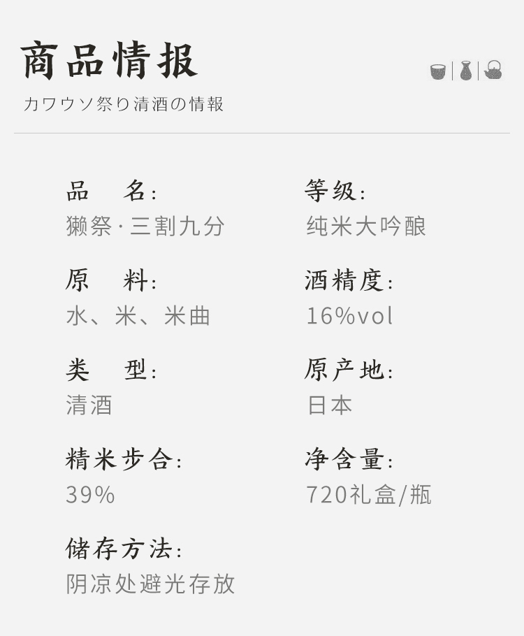 獭祭 纯米大吟酿三割九分720ml