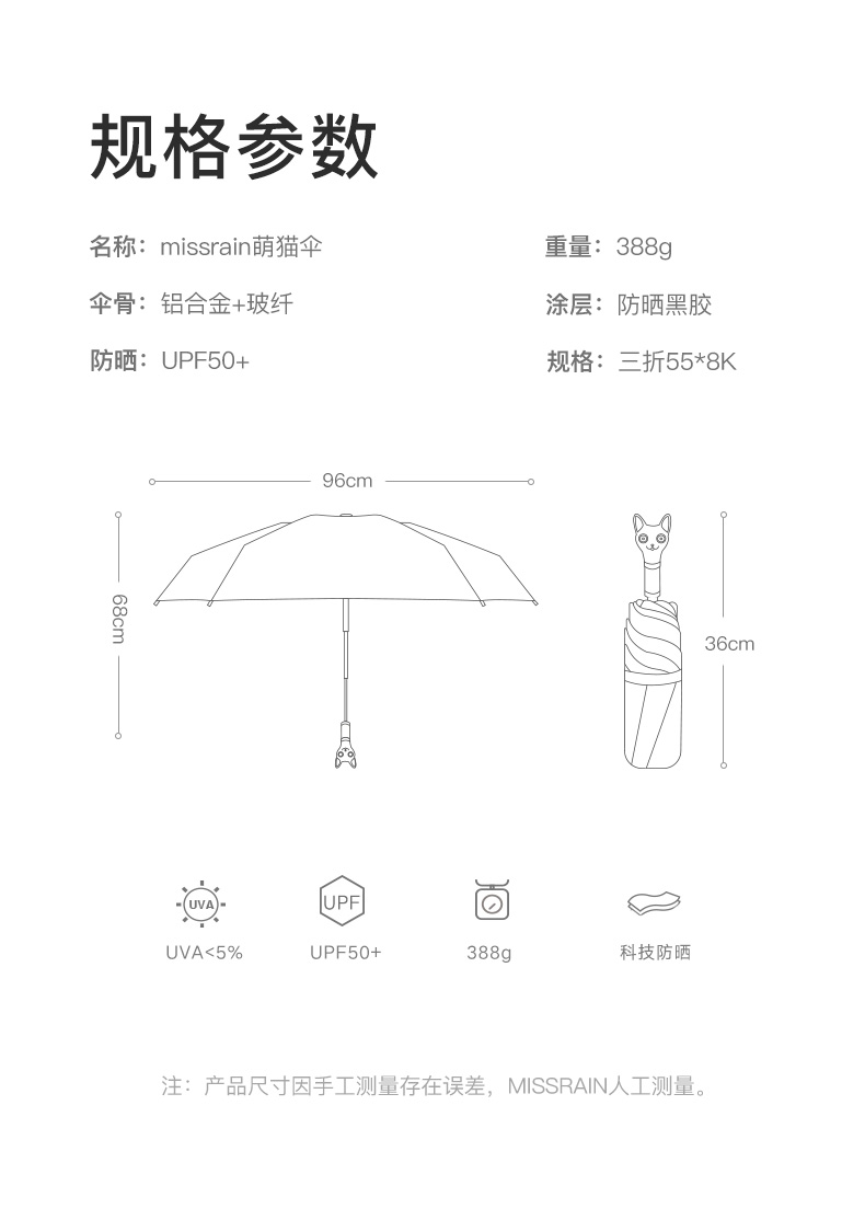 预售 | MISSRAIN猫头雨伞女晴雨两用太阳伞遮阳伞防晒防紫外可爱轻奢雨伞 [福利品]