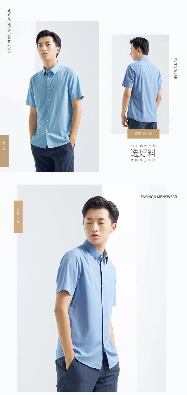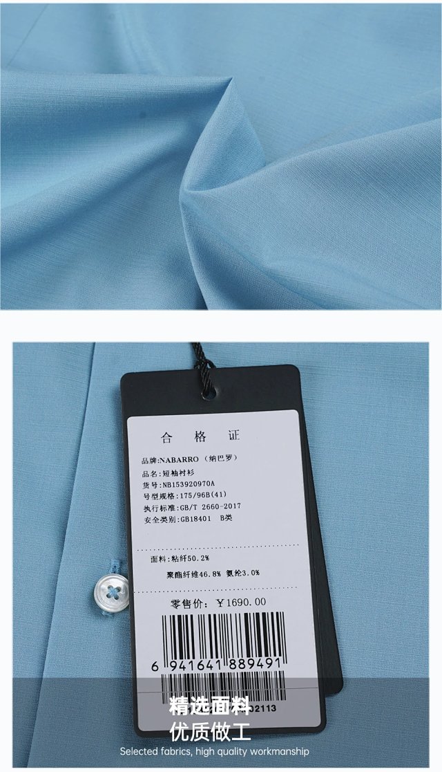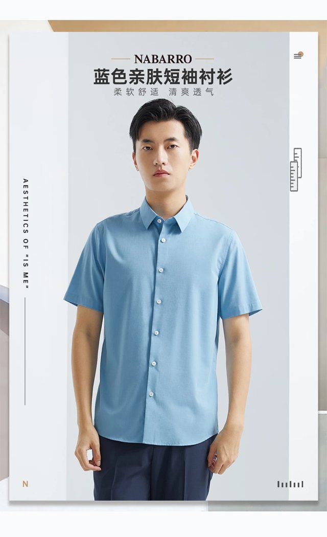 纳巴罗亲肤柔软商务休闲翻领短袖衬衫NB153920970A