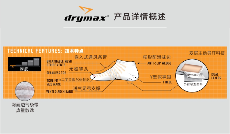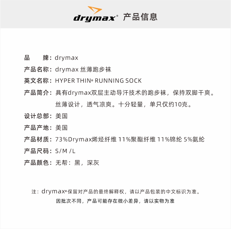 Drymax 丝薄无帮跑步袜