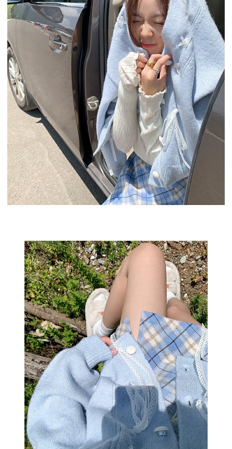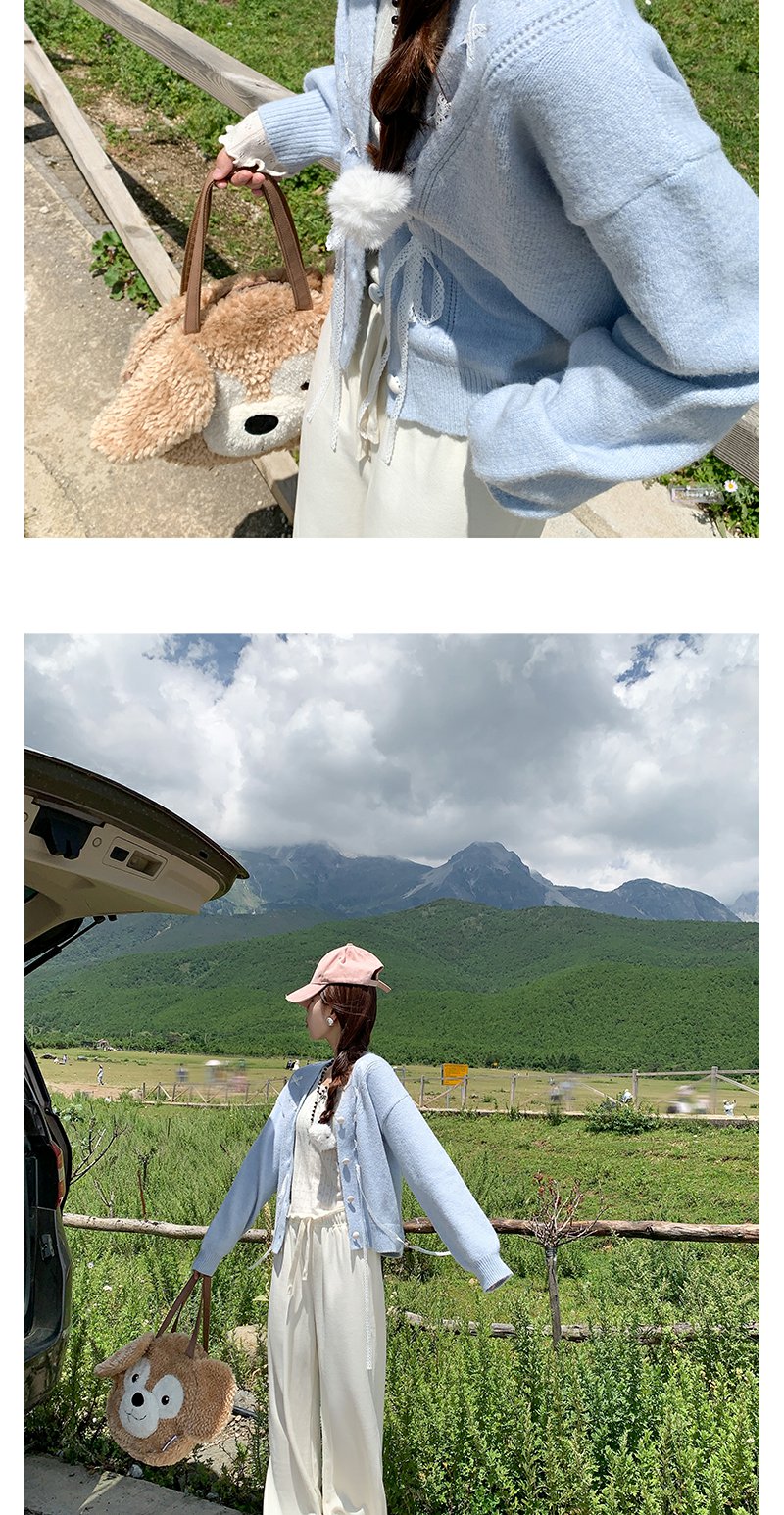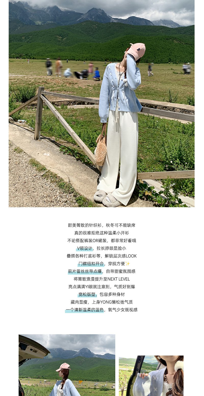 <曾小咸推荐>甜美温柔风丝带设计宽松毛衣开衫