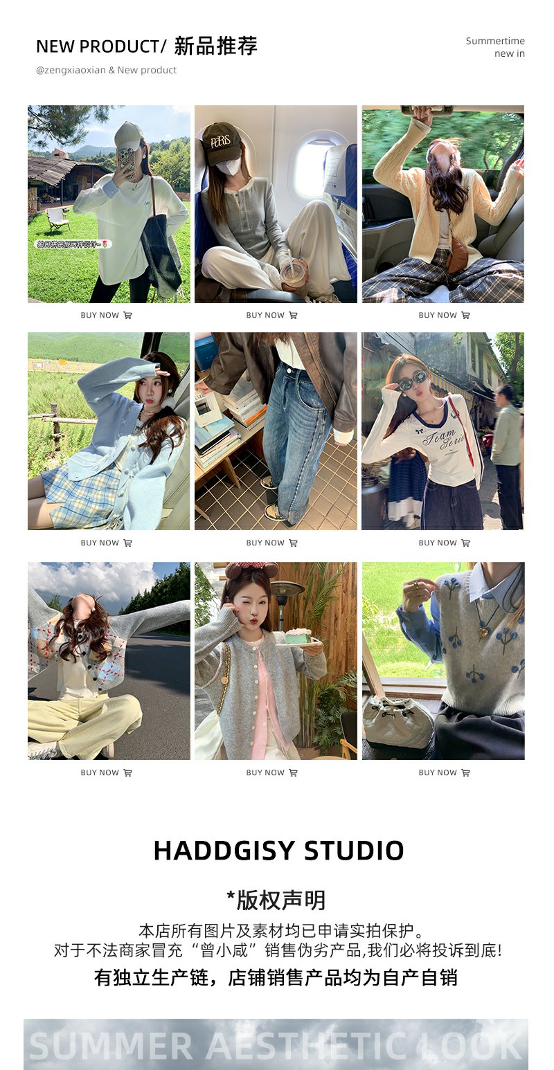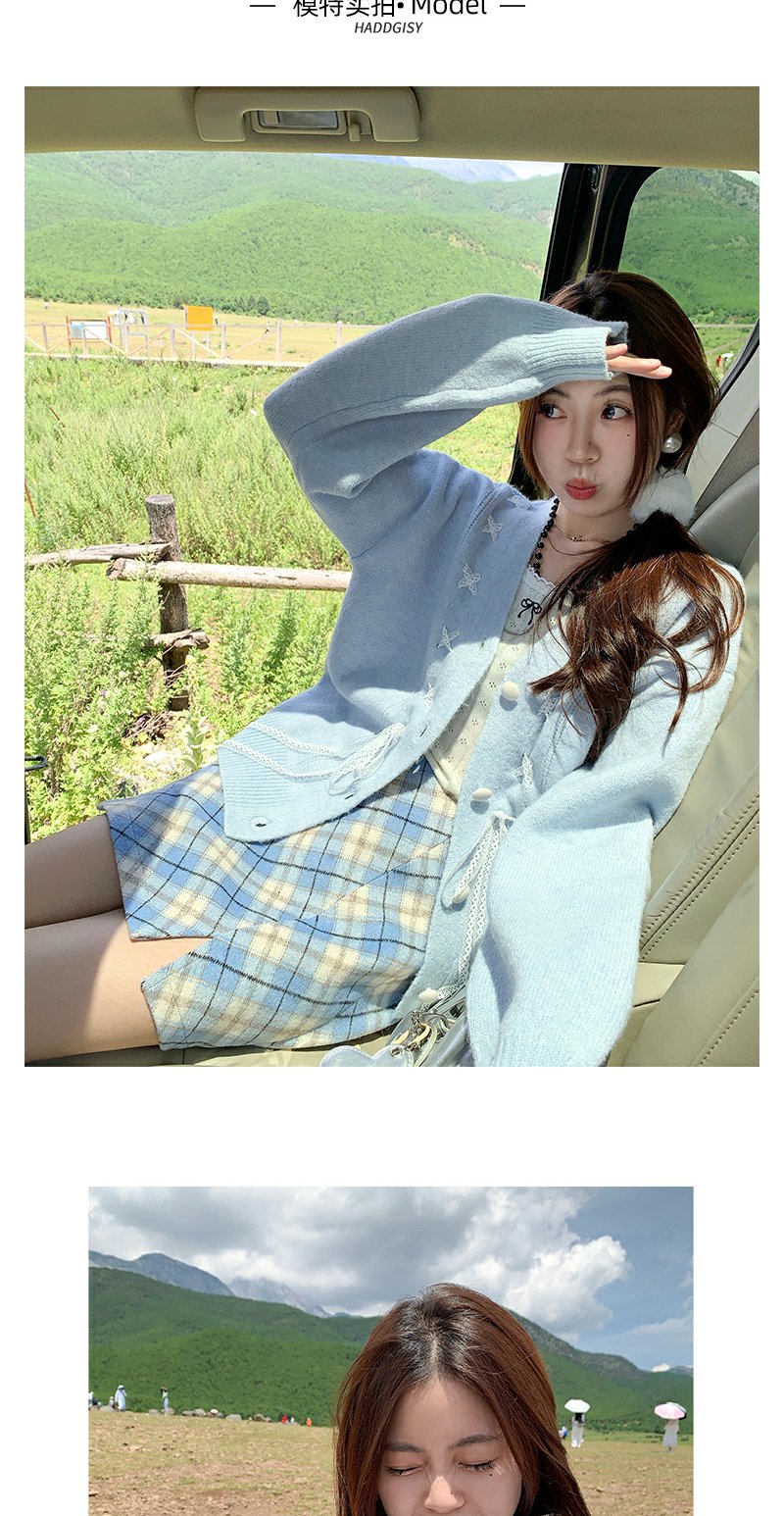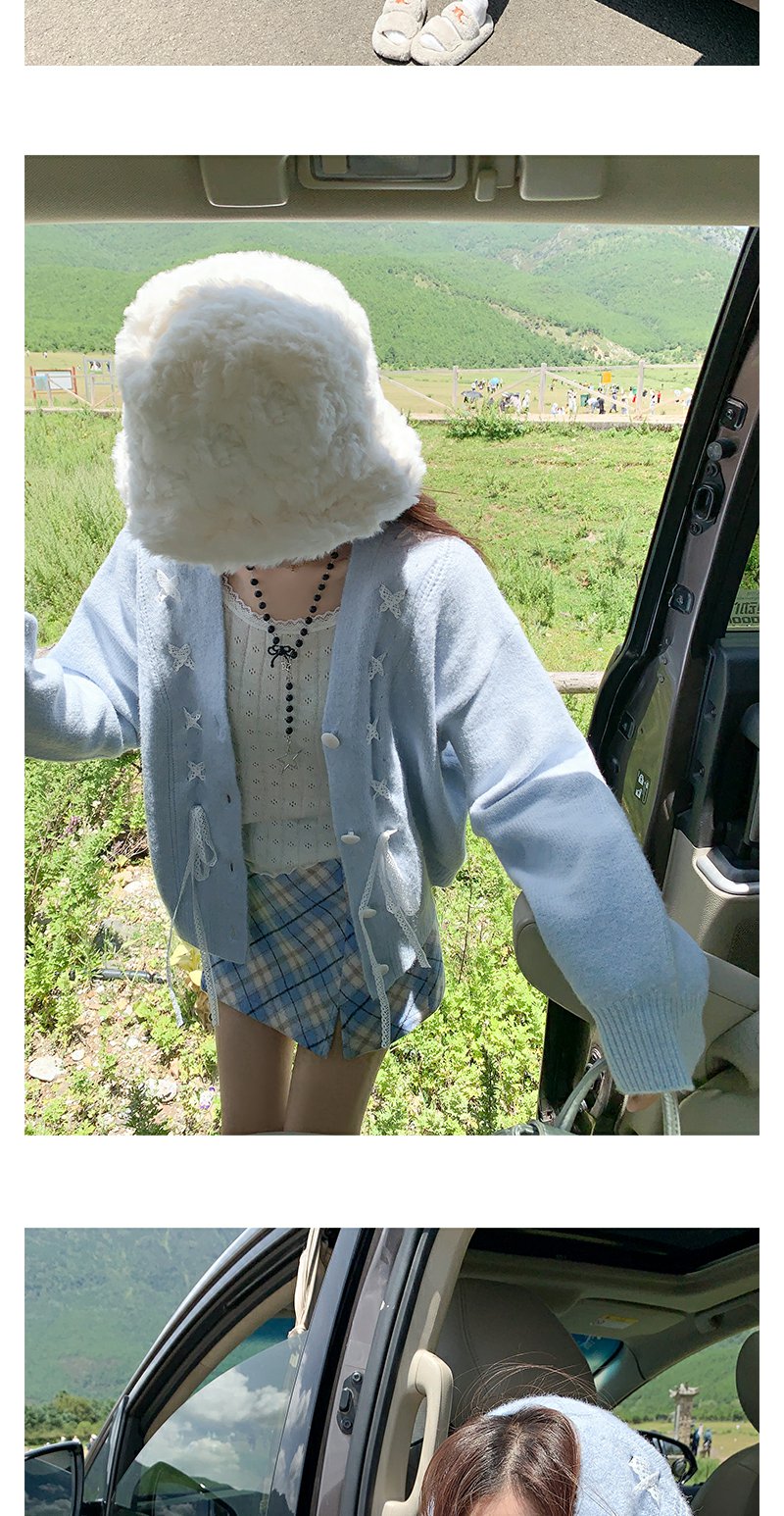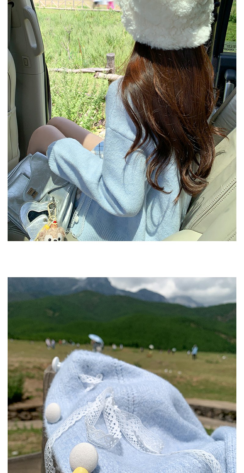 <曾小咸推荐>甜美温柔风丝带设计宽松毛衣开衫
