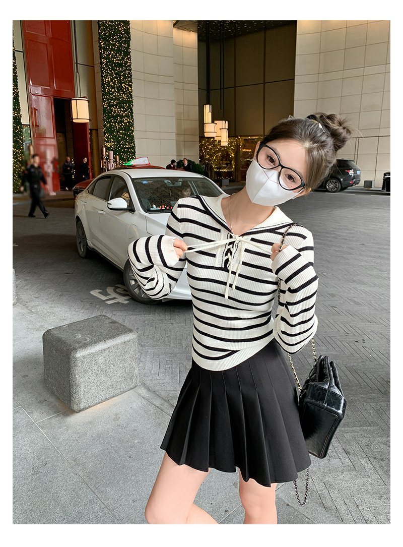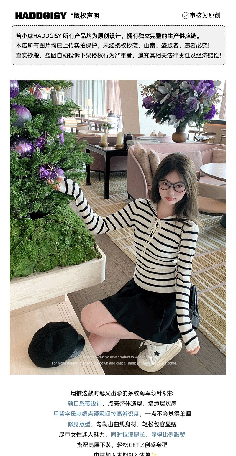 【129元任选2件】现货!海军领条纹针织衫