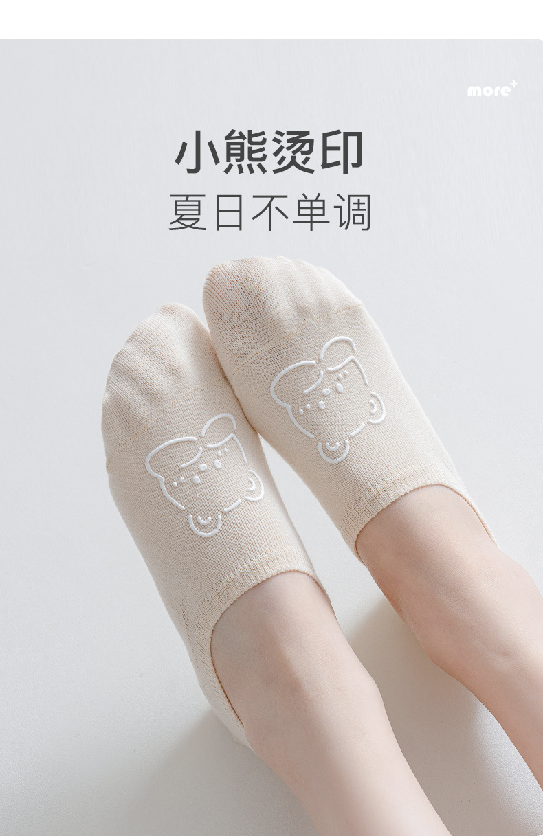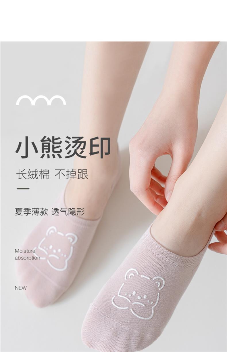 【6双装!纯棉工艺】精美小熊烫印,女船袜春夏季潮薄款,防滑浅口隐形短袜,不闷热不掉跟,轻松穿着自由活动。不易掉色,多种搭配任意穿,怎么穿都好看,时尚百搭必备!