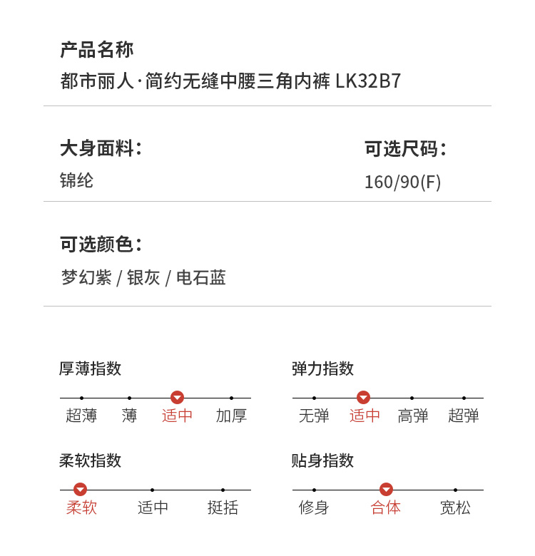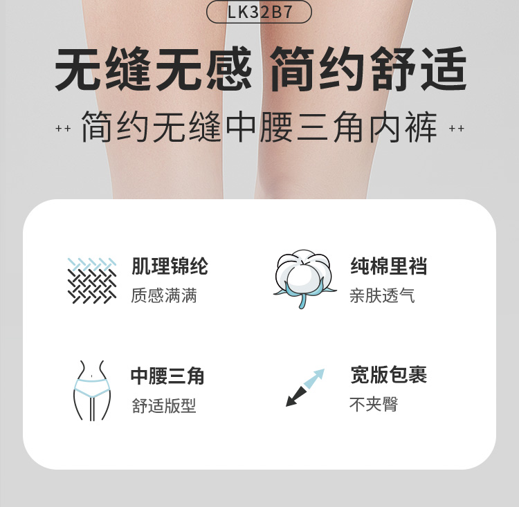 都市丽人基础系列无缝三角裤女士内裤中腰三角裤LK32B7