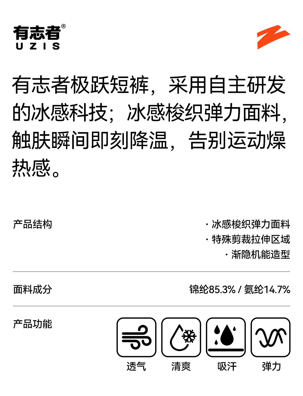 有志者UZIS极简科技极跃运动短裤男夏季冰感健身跑步篮球球裤悬浮