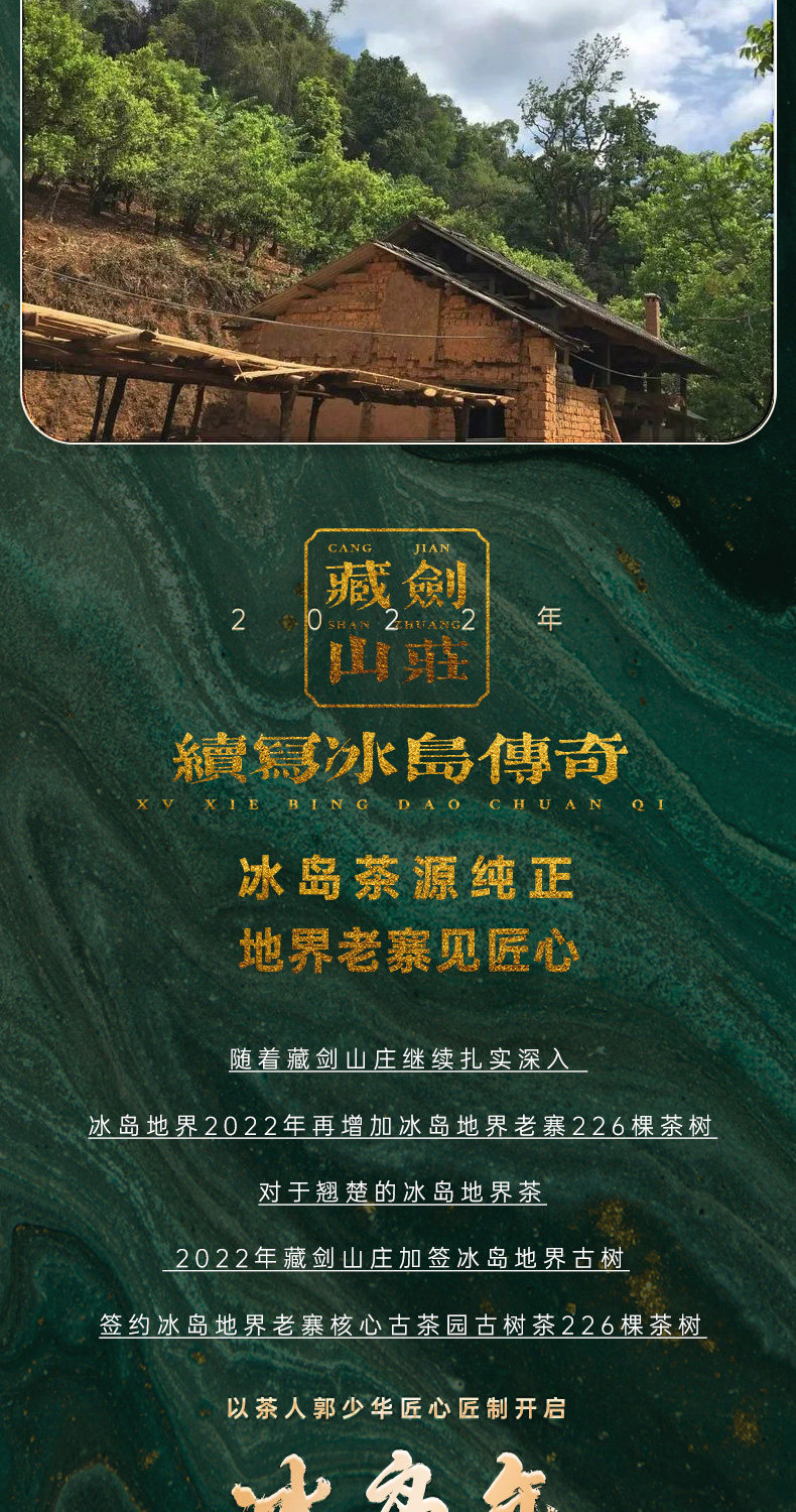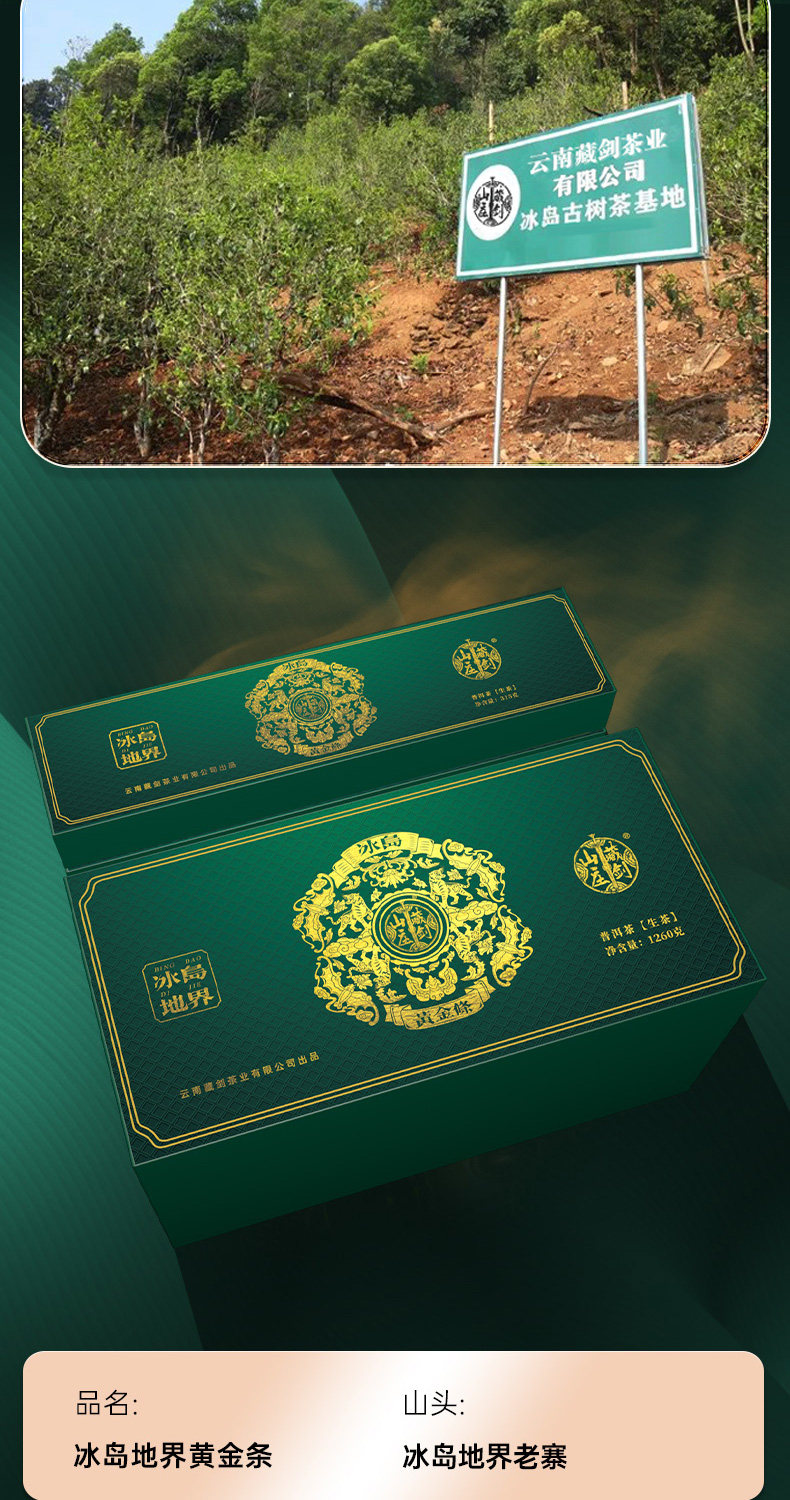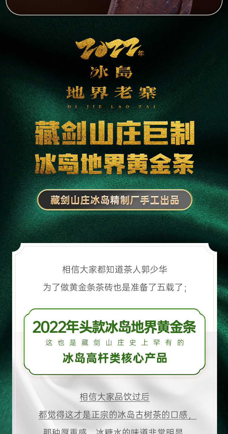 【藏剑山庄】2022年头春 冰岛地界黄金条 古树茶 315克/条 !4条一盒!一盒赠1条!