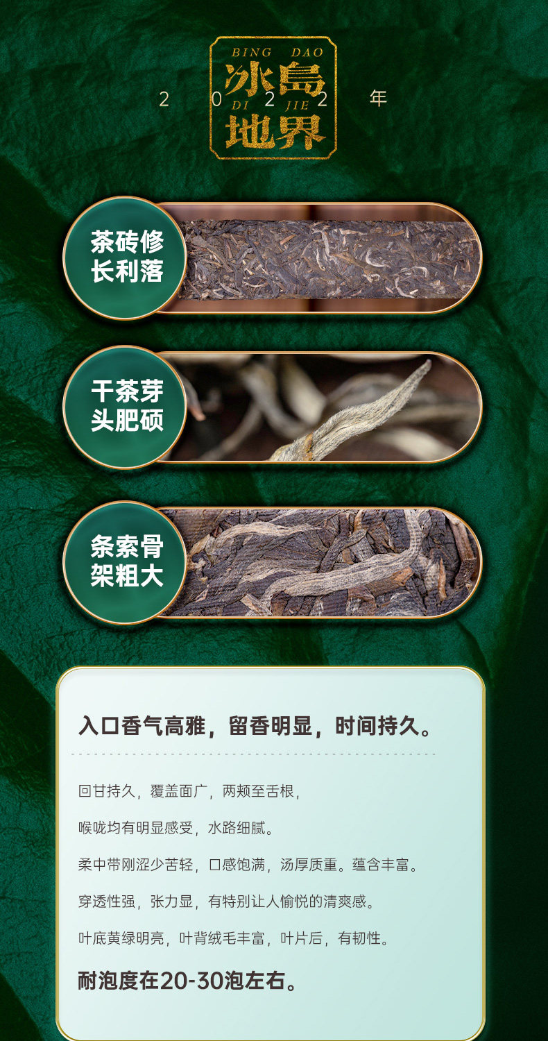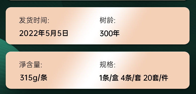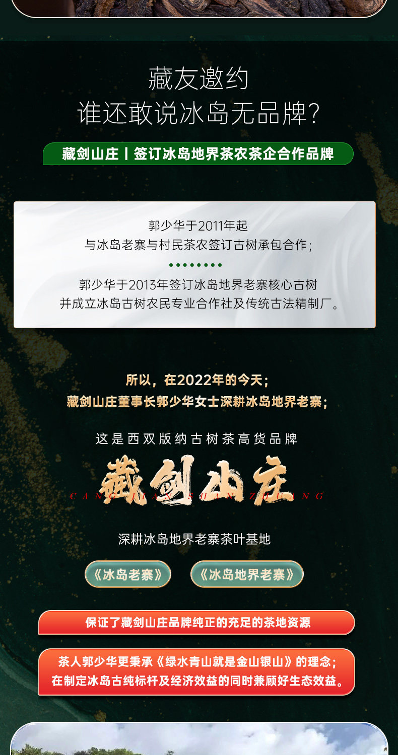 【藏剑山庄】2022年头春 冰岛地界黄金条 古树茶 315克/条 !4条一盒!一盒赠1条!