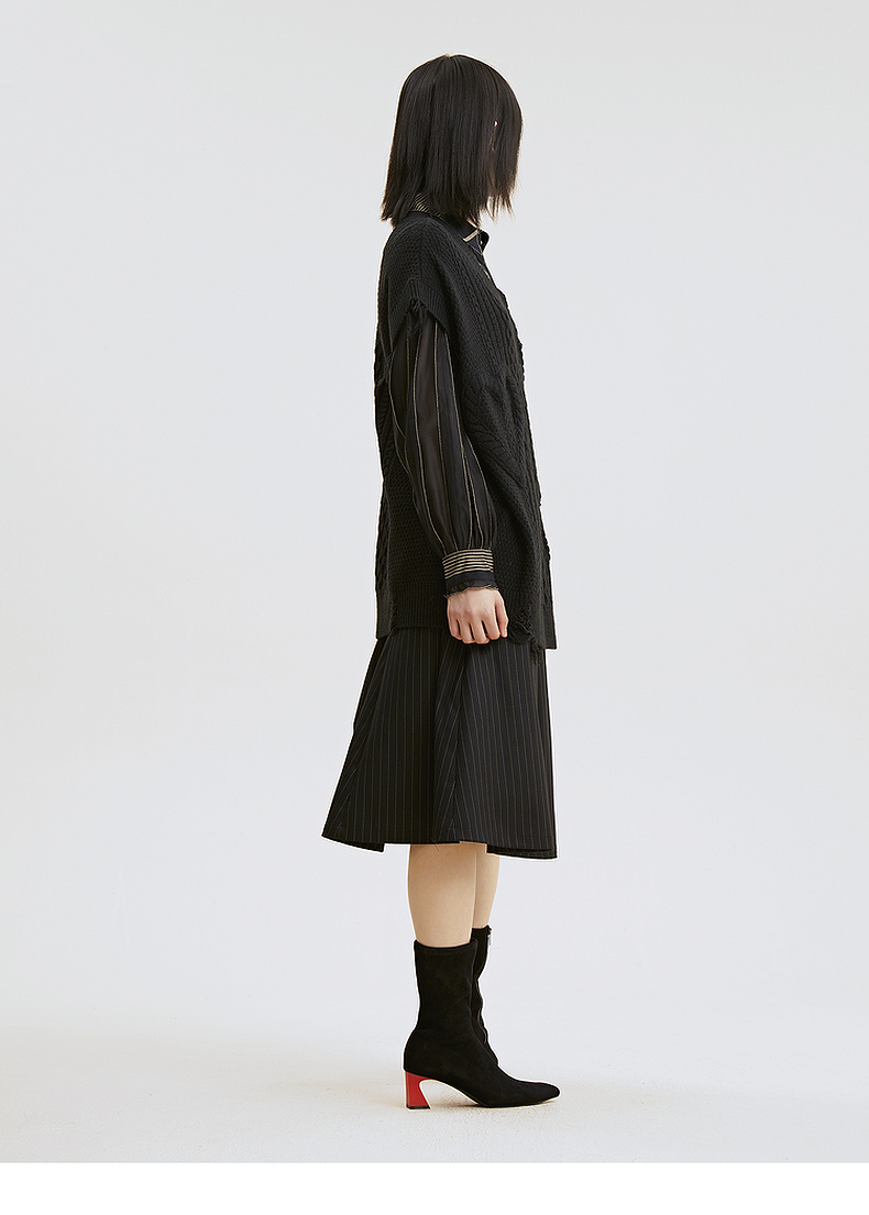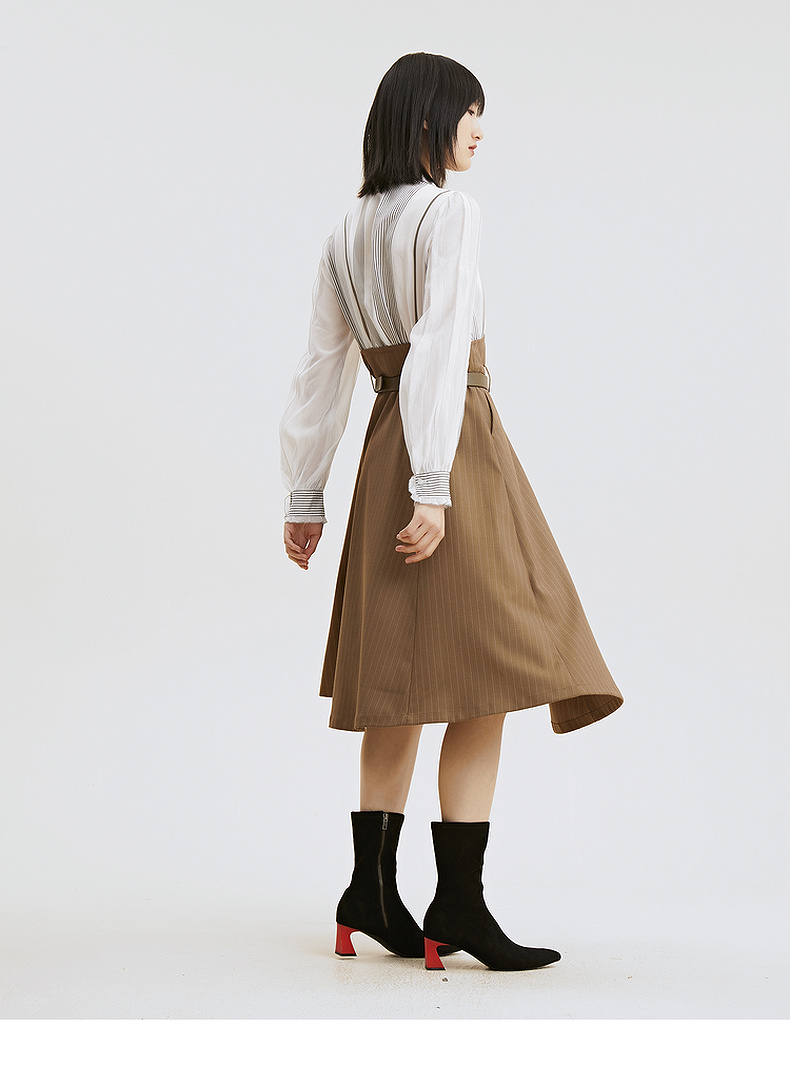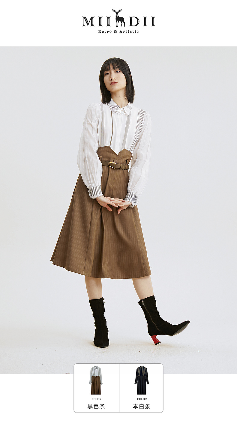谜底2022夏季新款复古浪漫假两件收腰灯笼袖连衣裙225ML6073