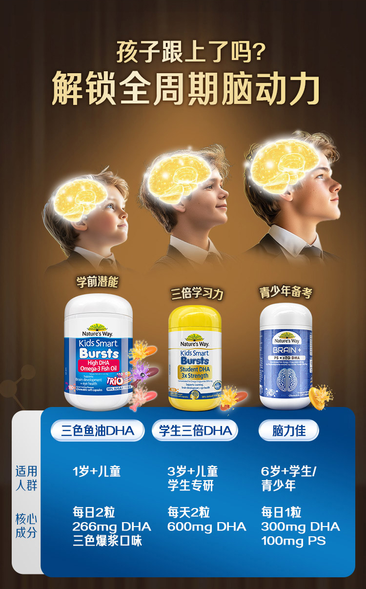 【儿童好物丨佳思敏 脑力佳爆浆丸DHA30粒/瓶】专研配方,高含量DHA,每天1粒,增强专注力,满足宝贝成长发育需求~
