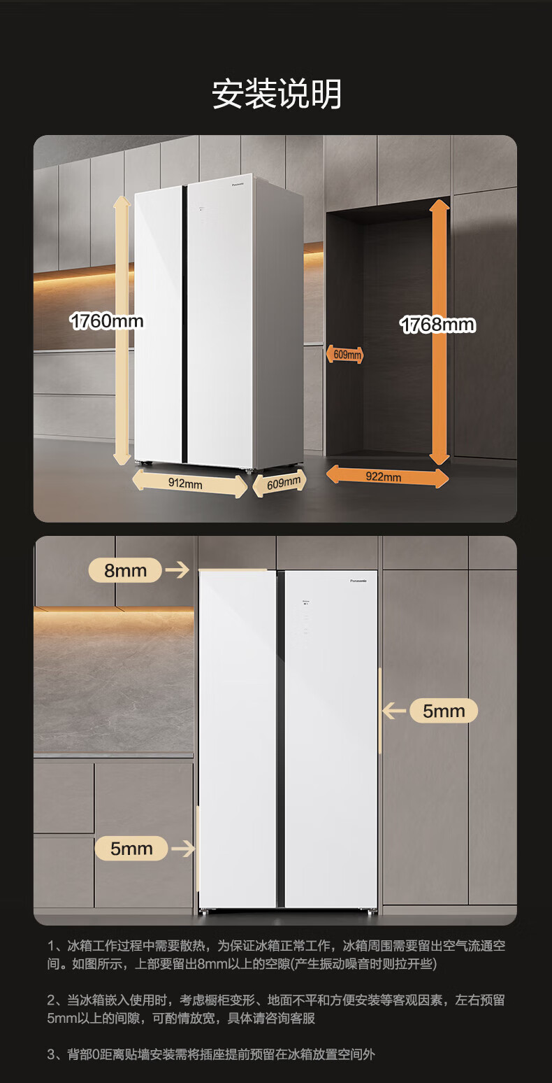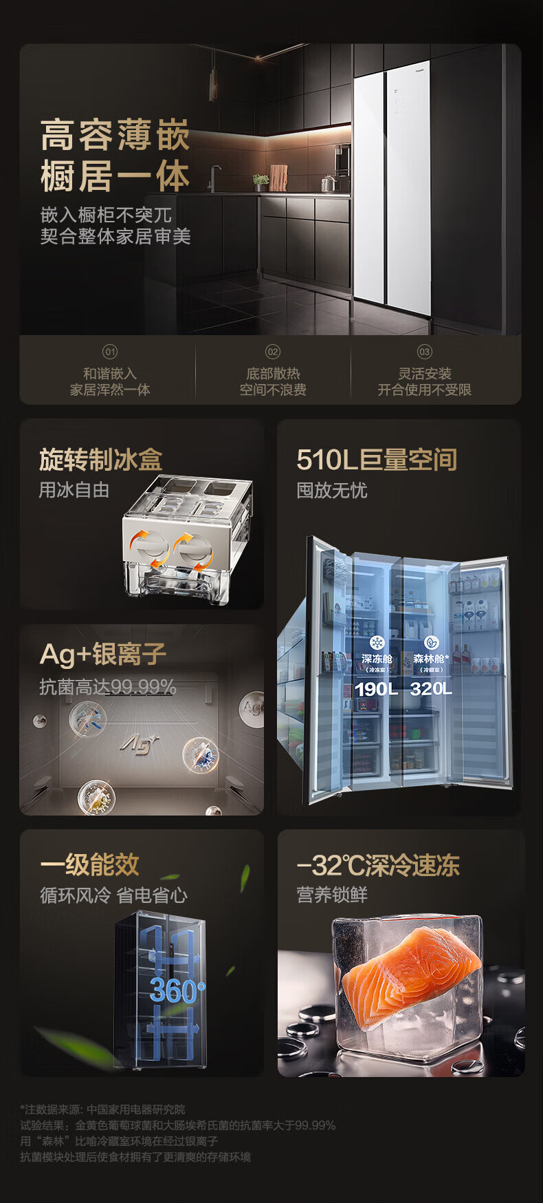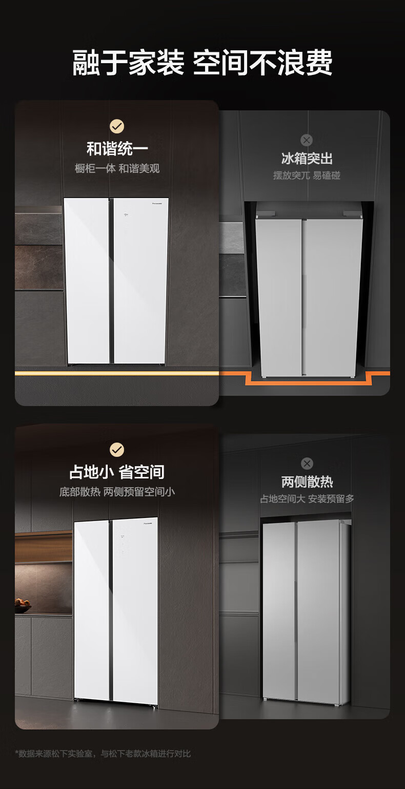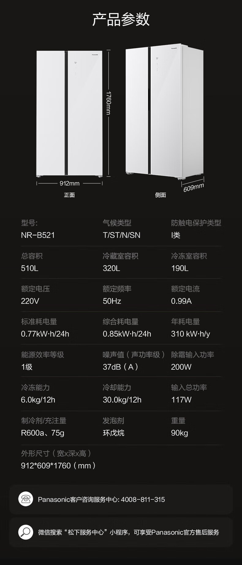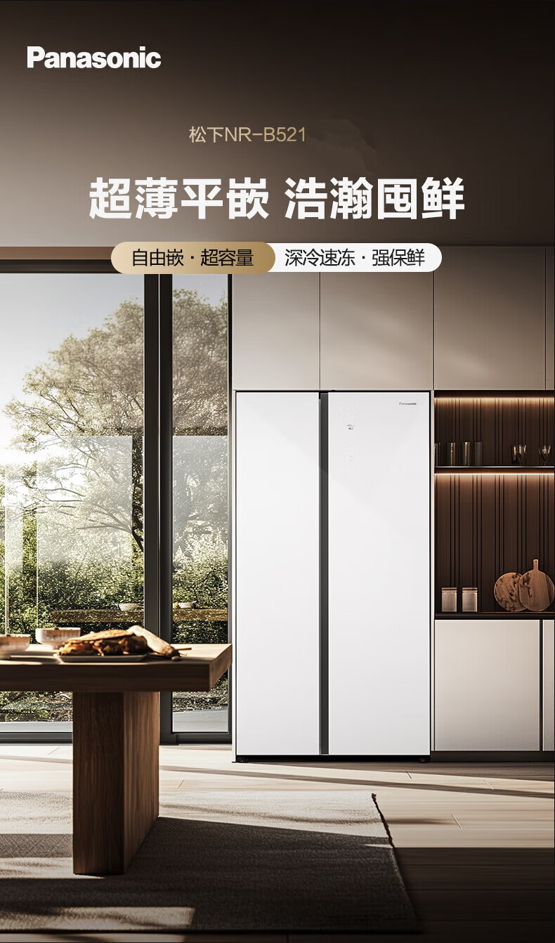 【国补15%】松下510LNR-B521PG-W白色钢化玻璃大容量超薄嵌入式对开门家用电冰箱 风冷无霜一级能效