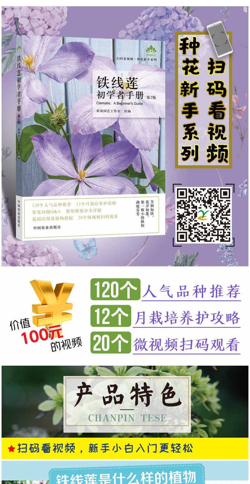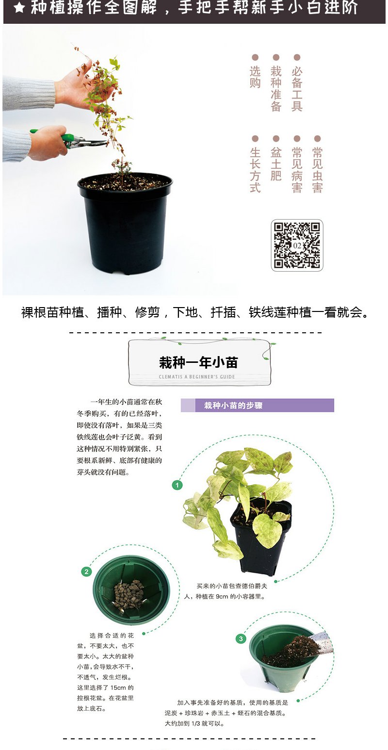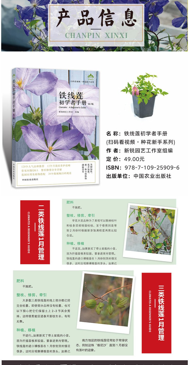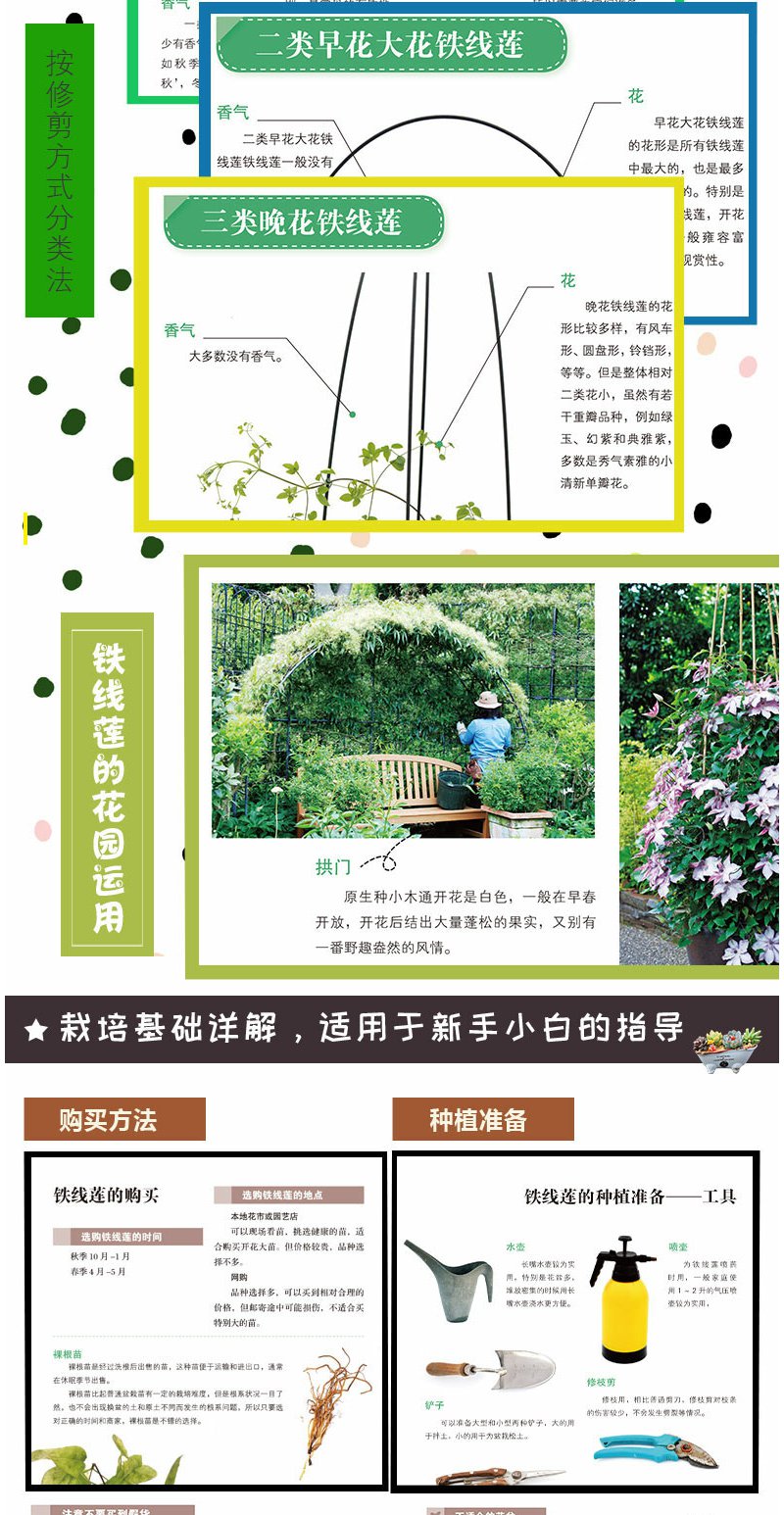 铁线莲 初学者手册{第2版) 零基础养铁线莲 铁线莲图解 铁线莲设计 铁线莲花艺 铁线莲畅销书 花园打造