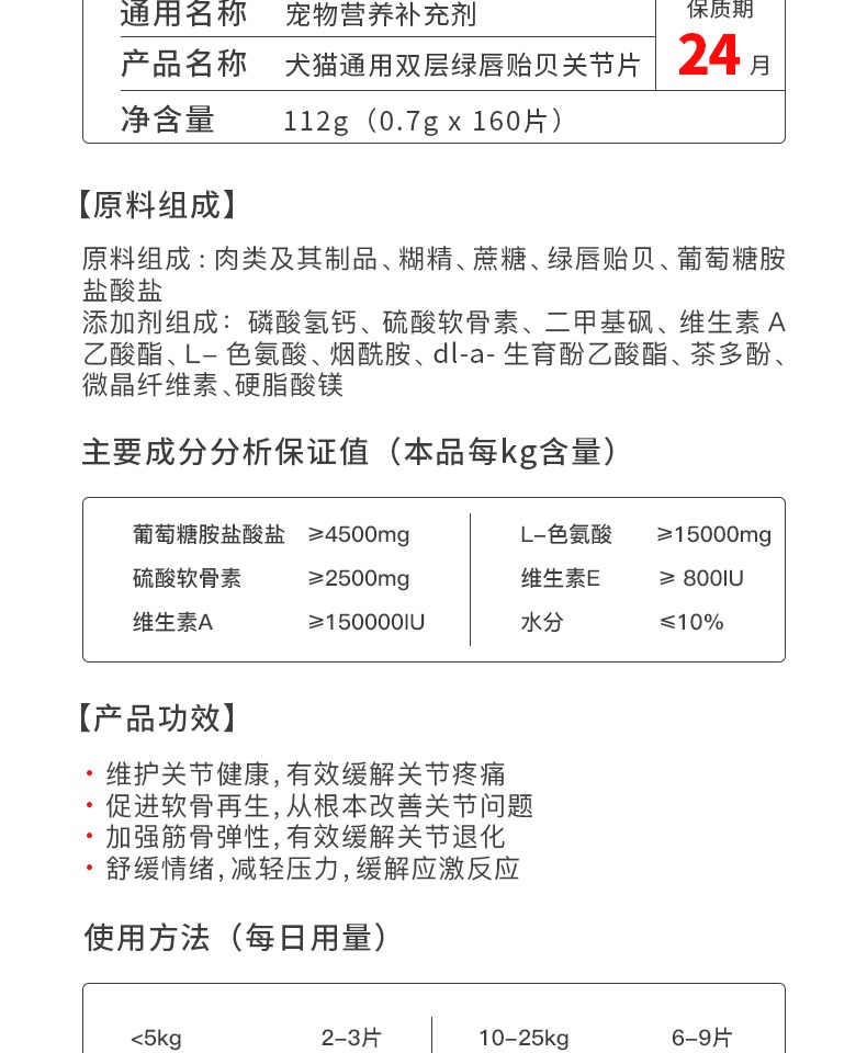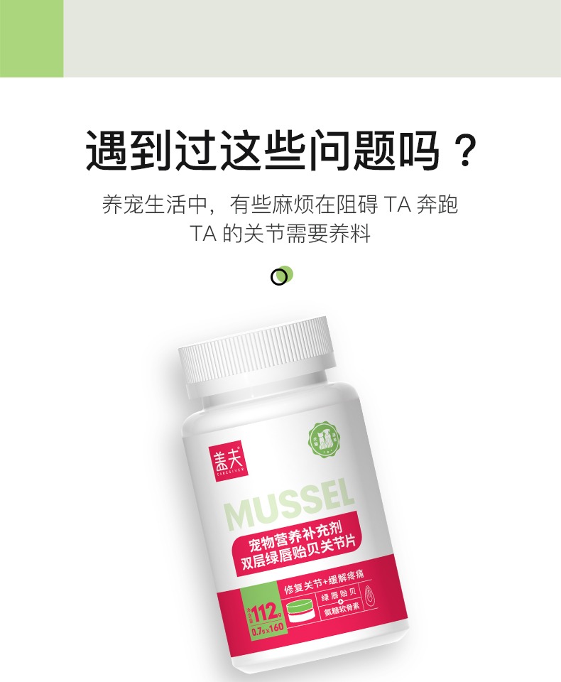 盖夫营养补充剂双层绿唇贻贝关节片犬猫用补充氨糖软骨素缓解疼痛