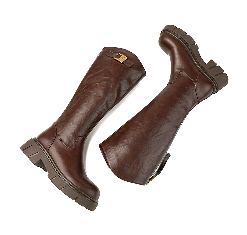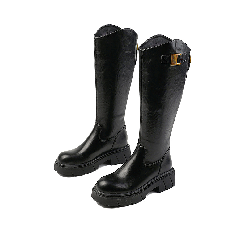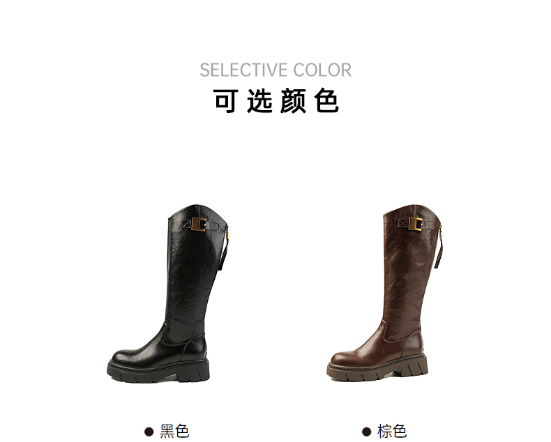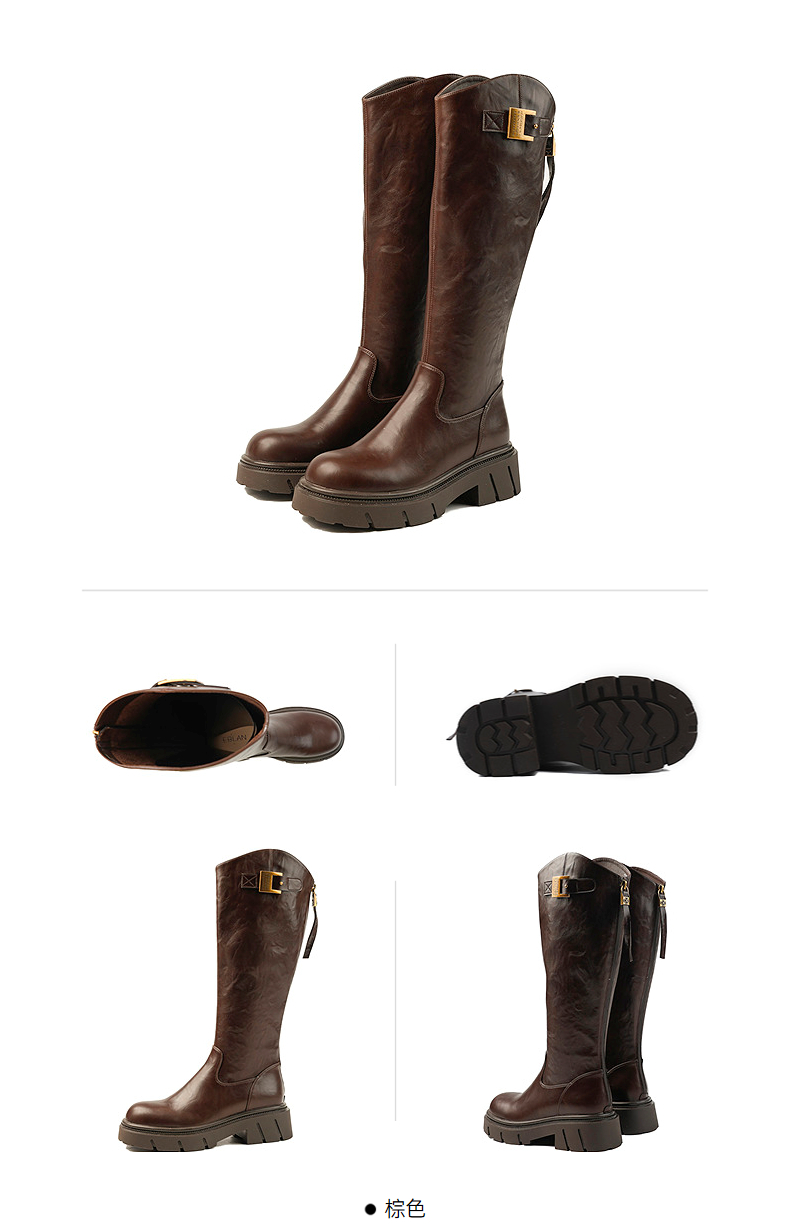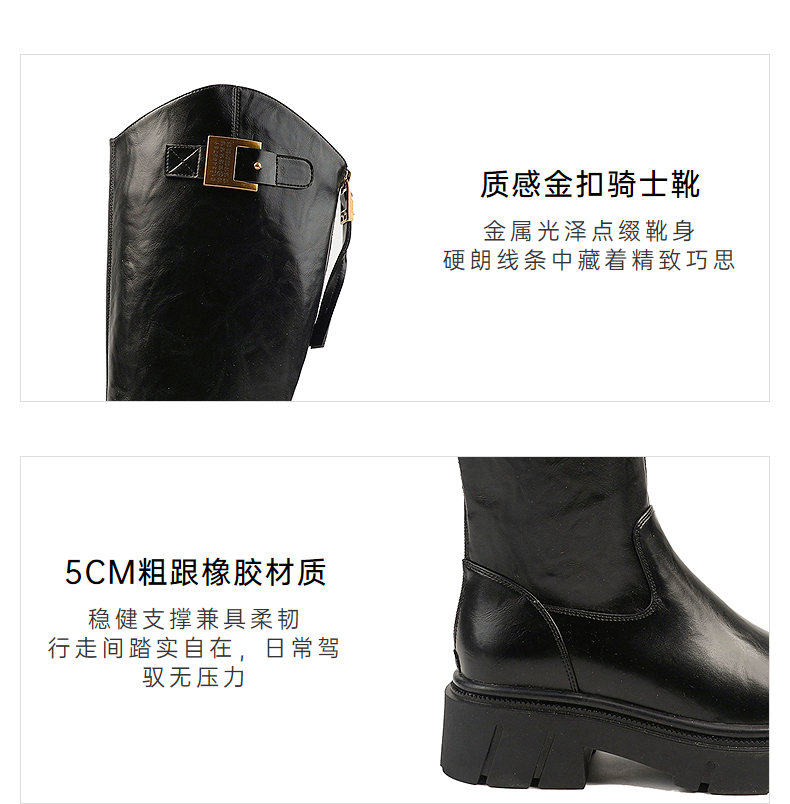 伊伴冬季质感金扣骑士靴经典百搭深色女鞋B25585703