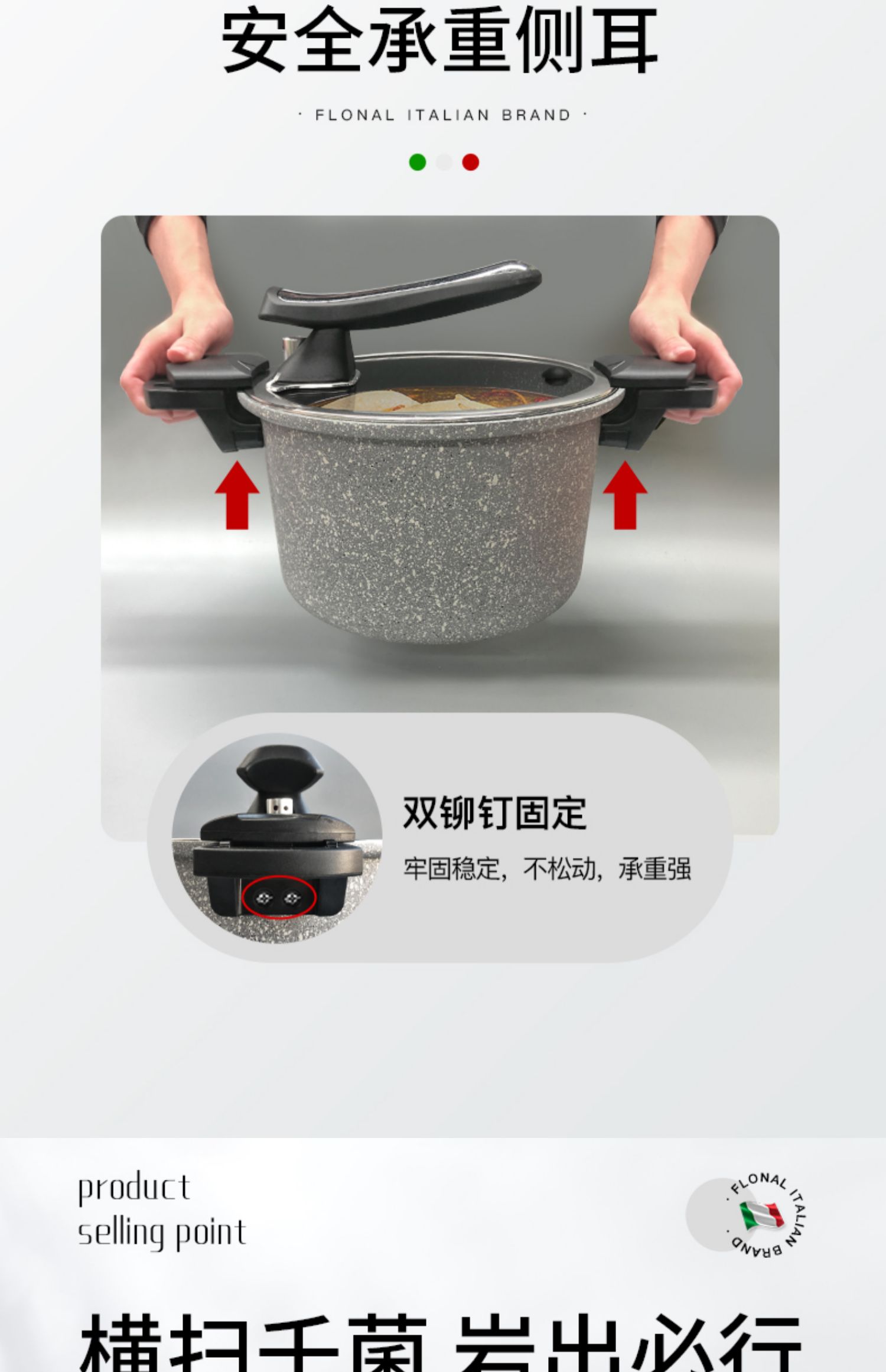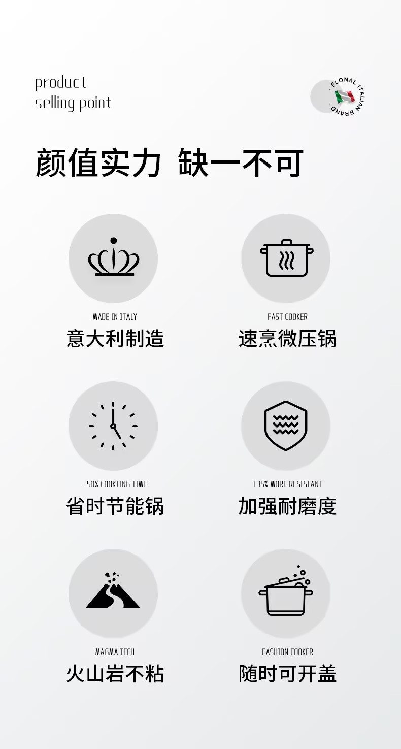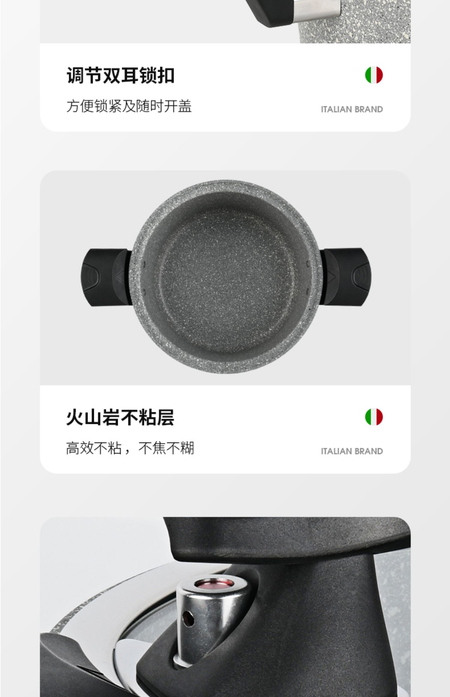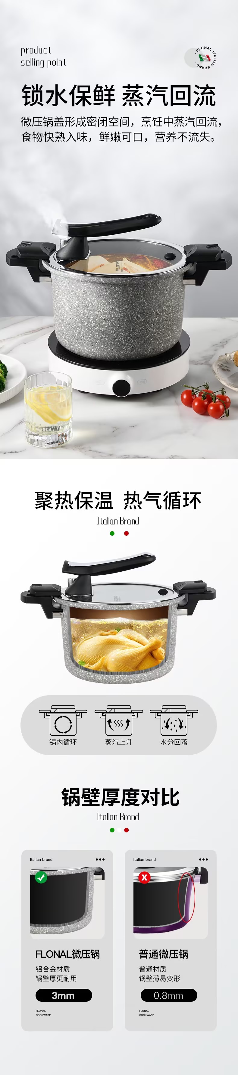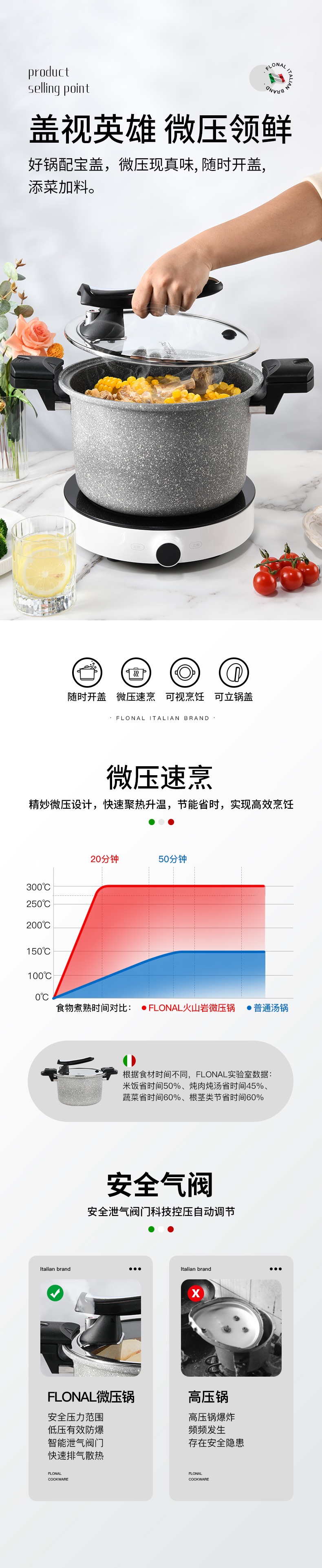 FLONAL意大利进口火山岩不粘锅微压锅家用煮汤锅炖锅电磁炉燃气灶压力锅6L