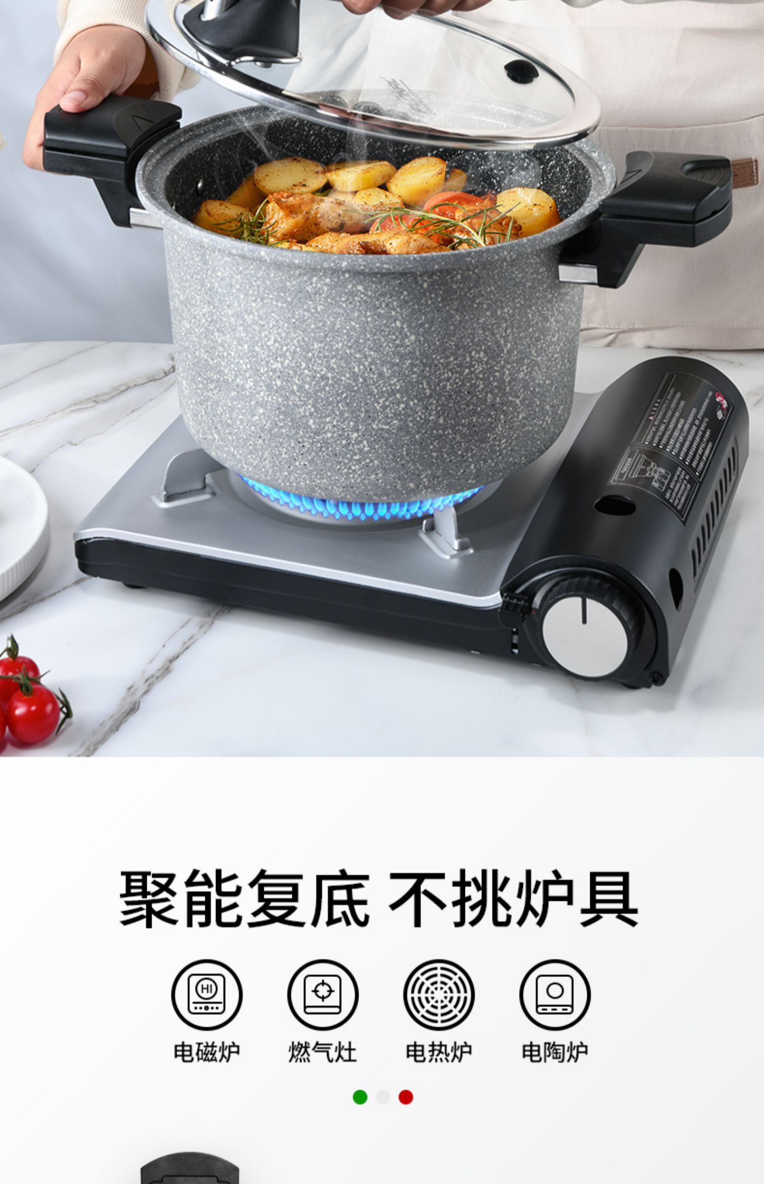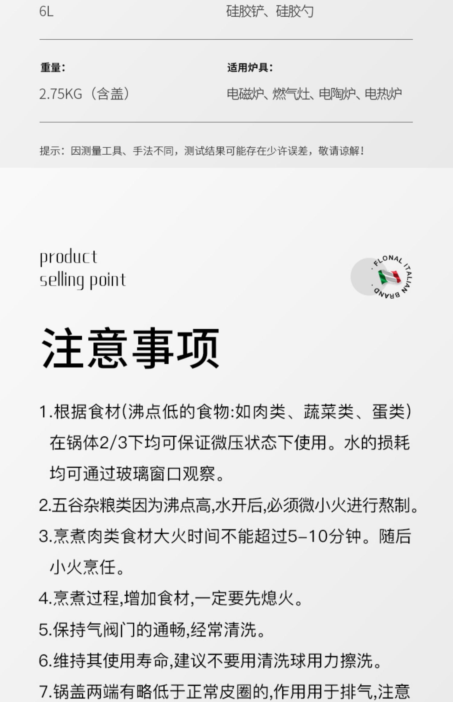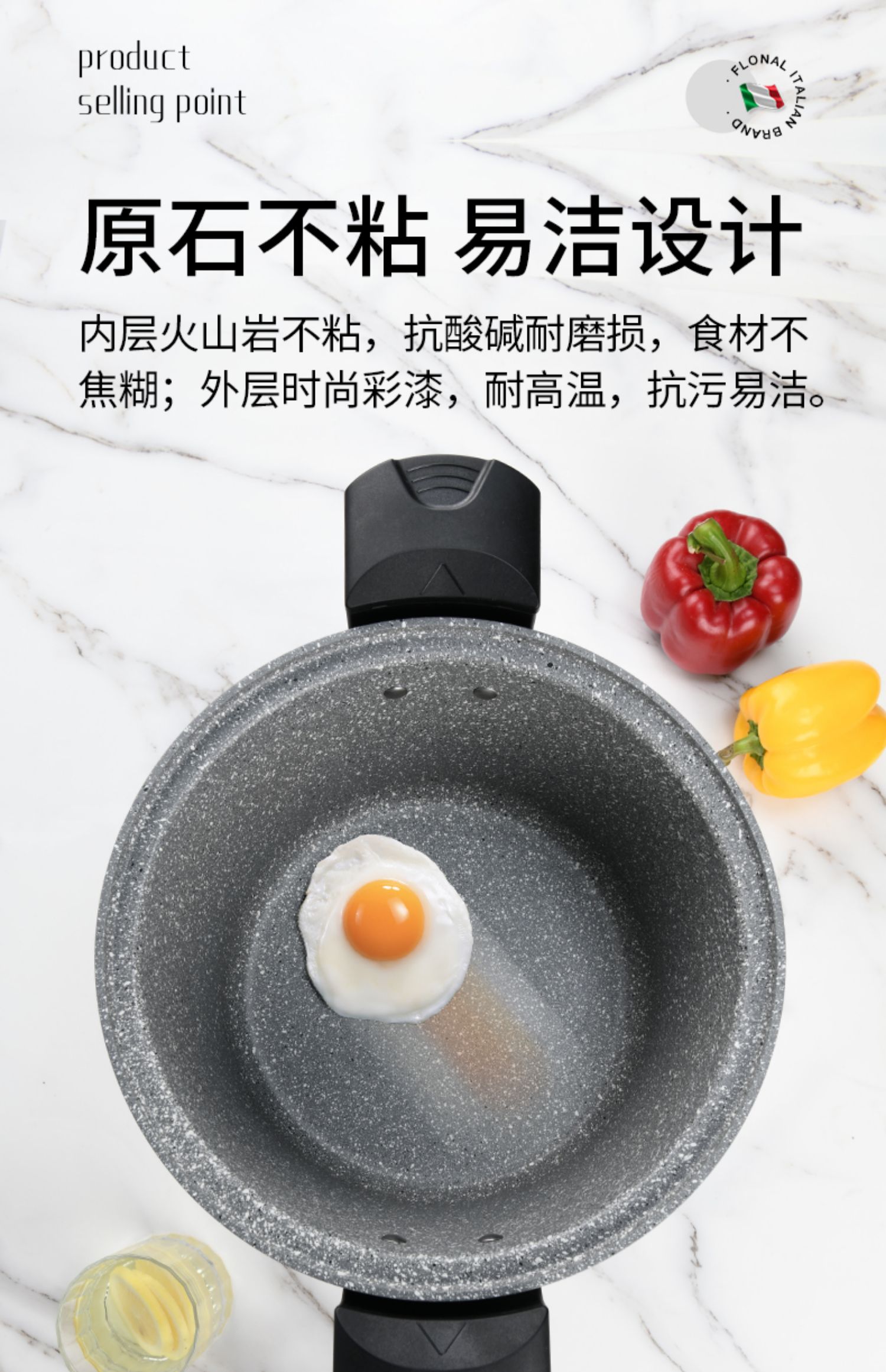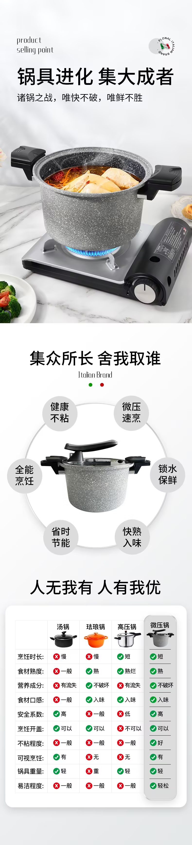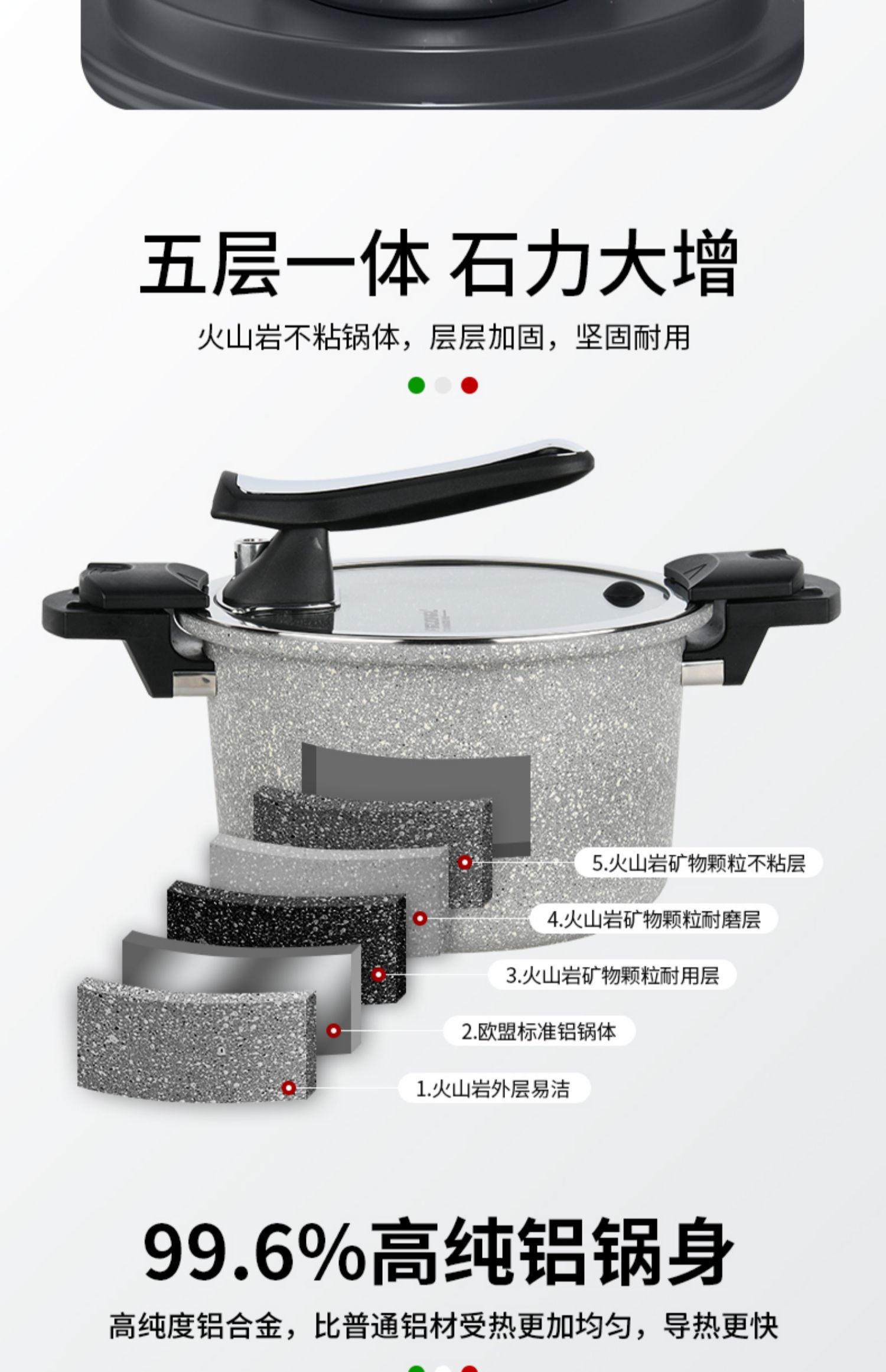 FLONAL意大利进口火山岩不粘锅微压锅家用煮汤锅炖锅电磁炉燃气灶压力锅6L