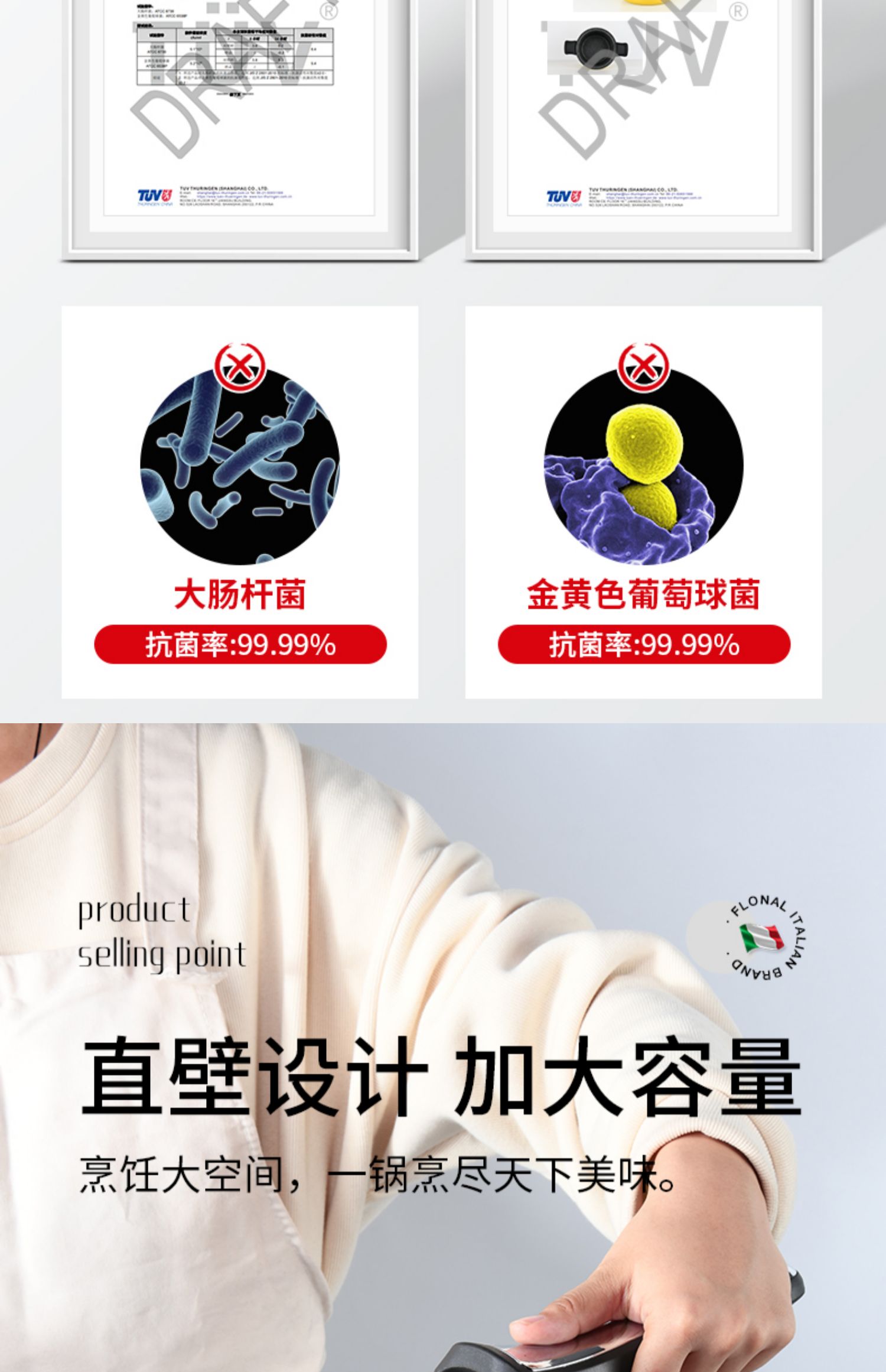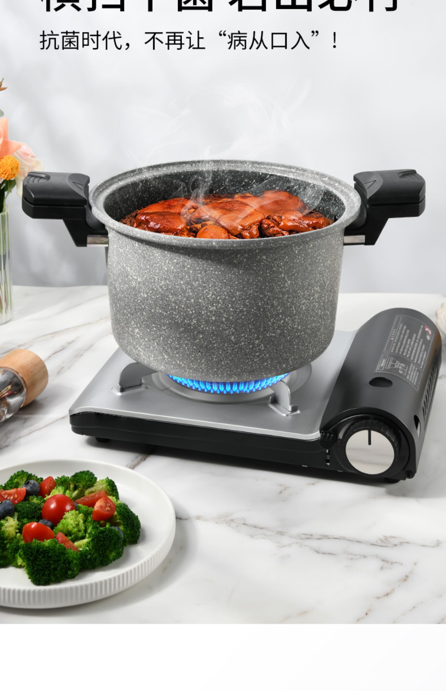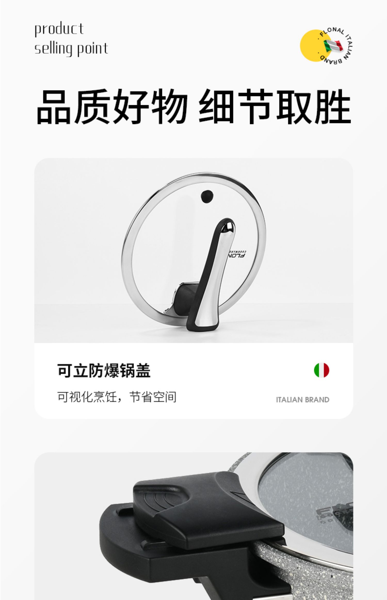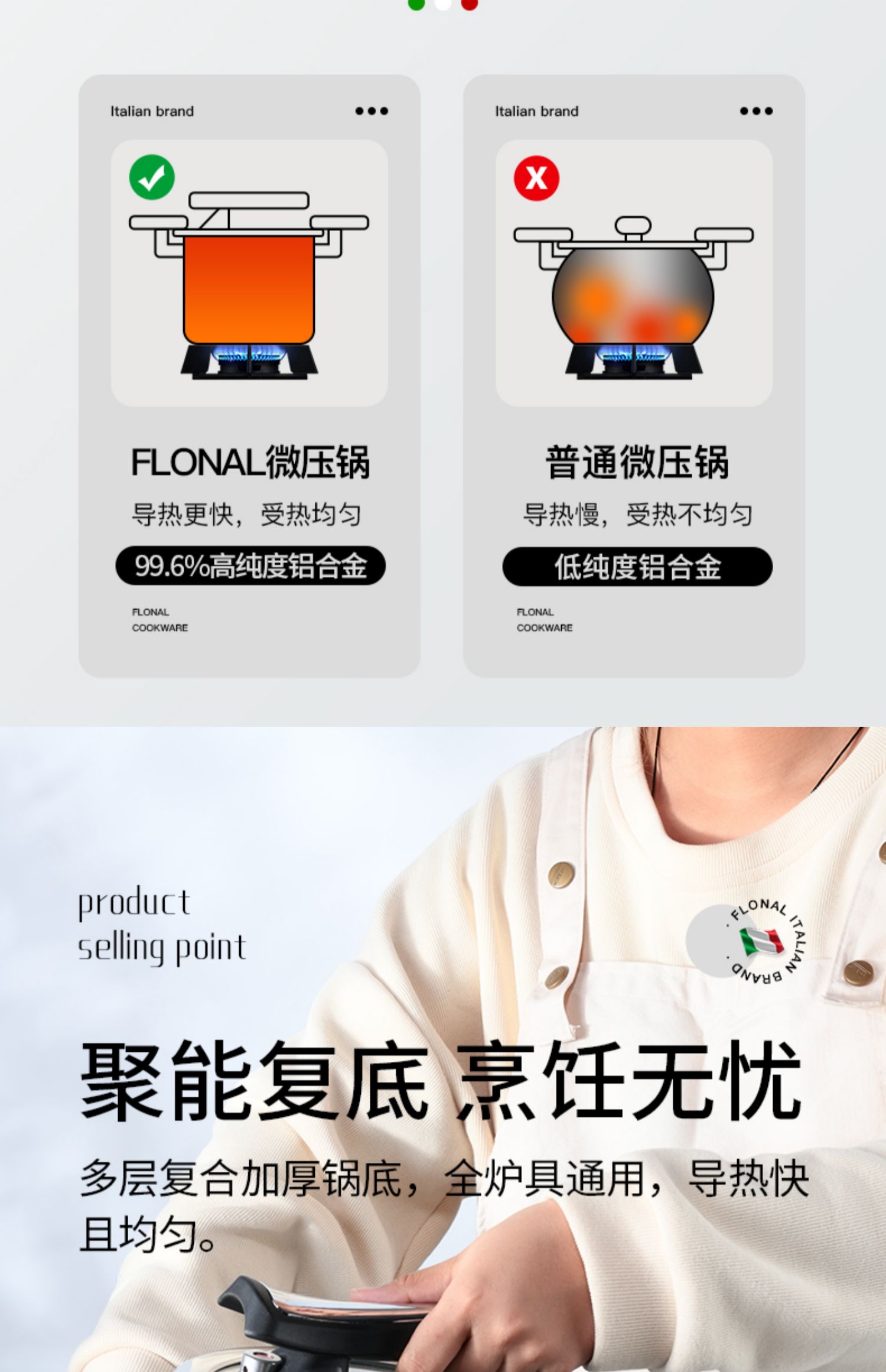 FLONAL意大利进口火山岩不粘锅微压锅家用煮汤锅炖锅电磁炉燃气灶压力锅6L