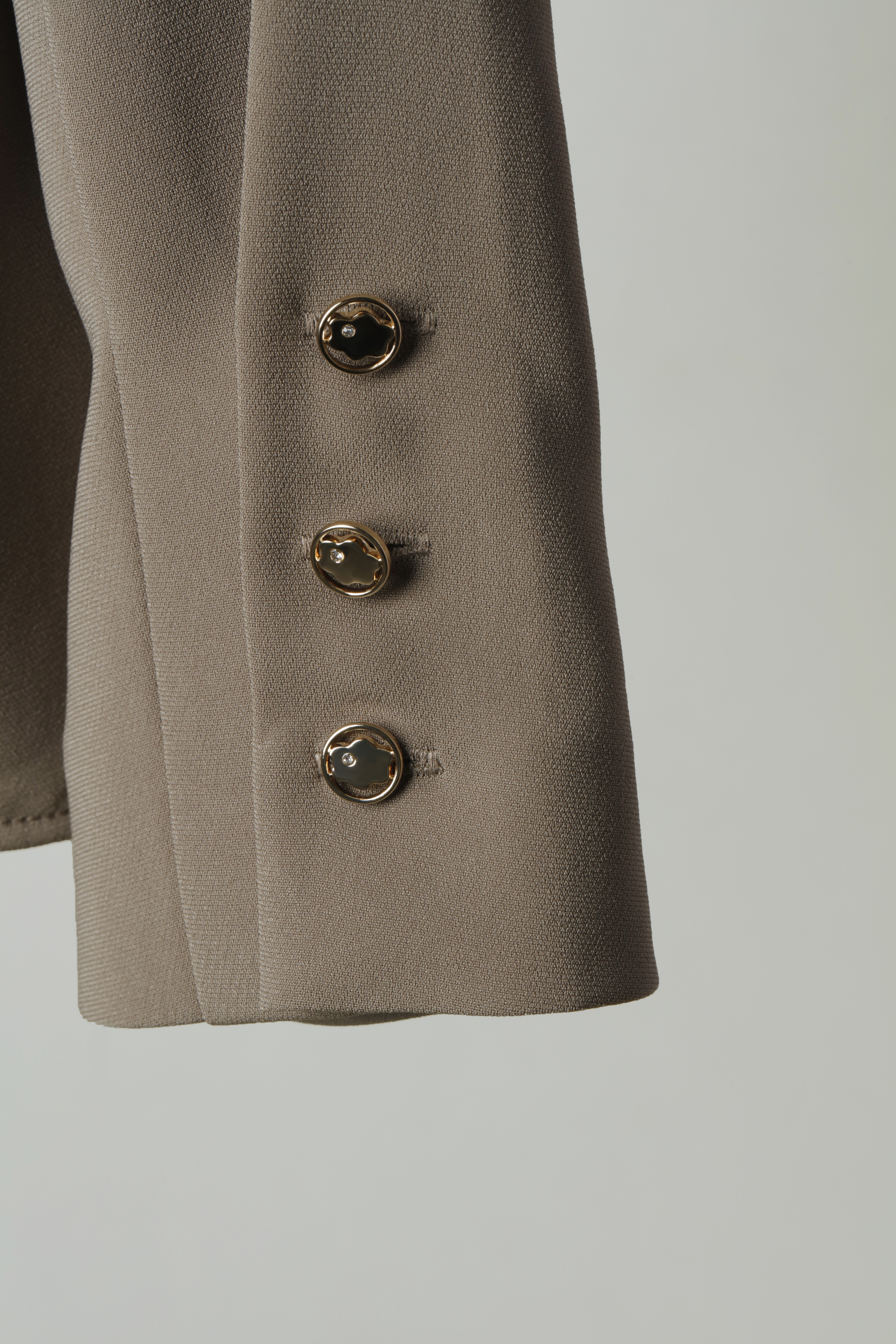 低饱和棕灰色调内敛高级,自带复古滤镜,适配各种肤色与场景。圆领设计柔和百搭,单侧抓褶工艺是点睛之笔,打破极简的单调,自然褶皱勾勒随性线条,藏起身材小瑕疵。